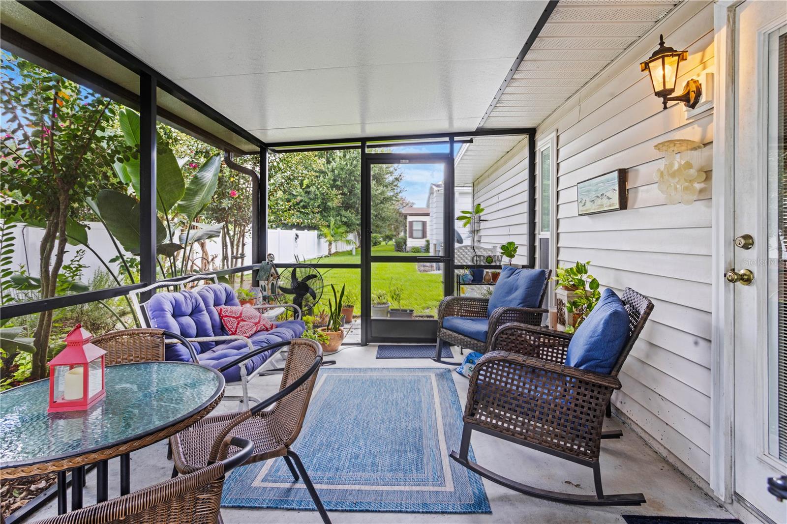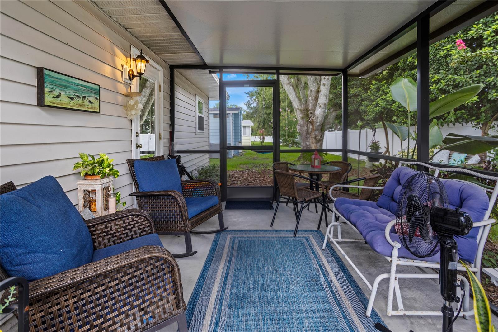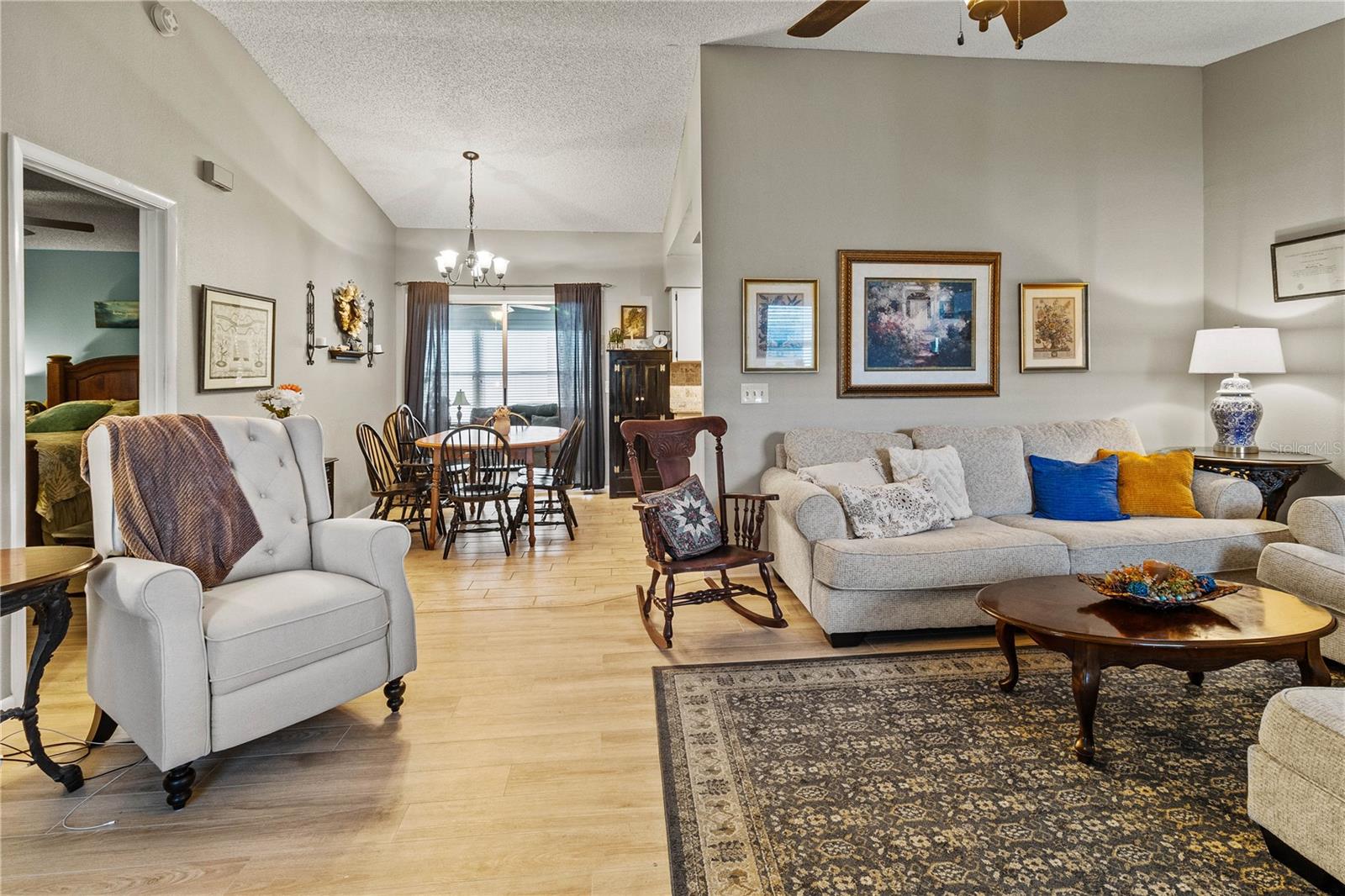 Extremely well-kept Greenbrier model located on an exterior lot in the desirable 55+ gated community of the Colonnades. This 2-bedroom, 2-bathroom home features updated tile in the kitchen and dining areas, along with vinyl plank flooring in the living room and bonus space. The roof, windows, and A/C have all been replaced within the past five years. Bright and spacious throughout, the home includes a private lanai off the primary bedroom that overlooks a lush, landscaped backyard. The Colonnades offers a low-maintenance lifestyle with fantastic amenities, including cable and internet, lawn care, and access to recreation areas such as a heated pool, Jacuzzi, sauna, fitness center, library, shuffleboard, fishing dock, billiards room, and more. Schedule your showing today and experience all this vibrant community has to offer!