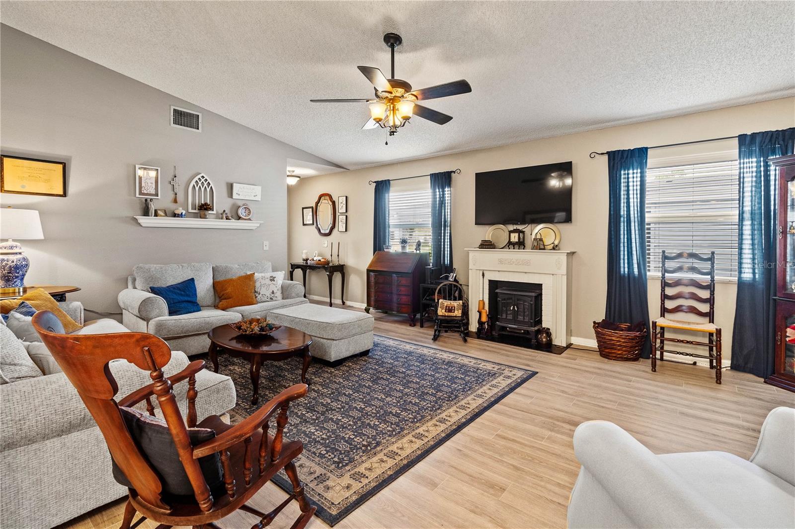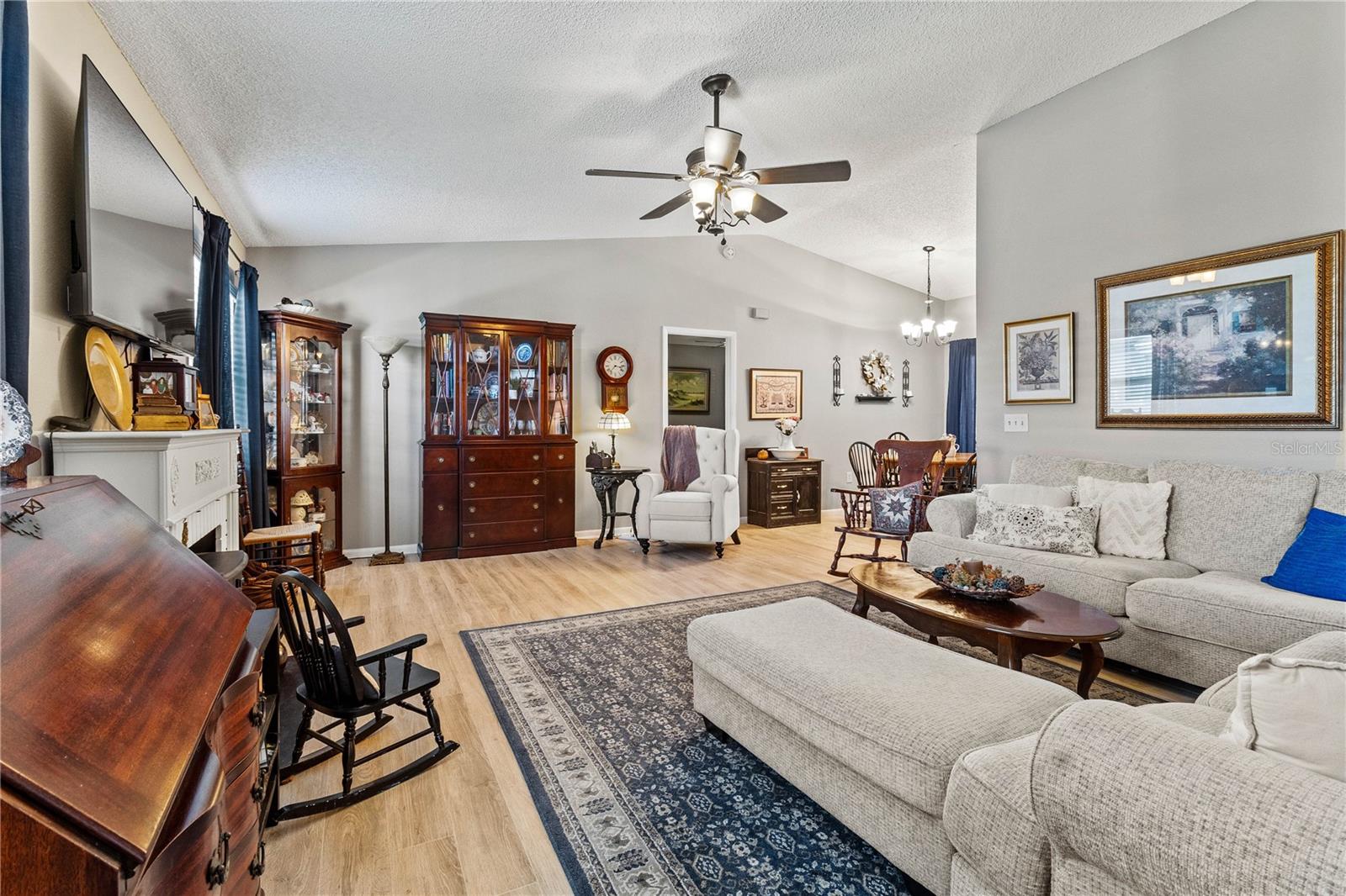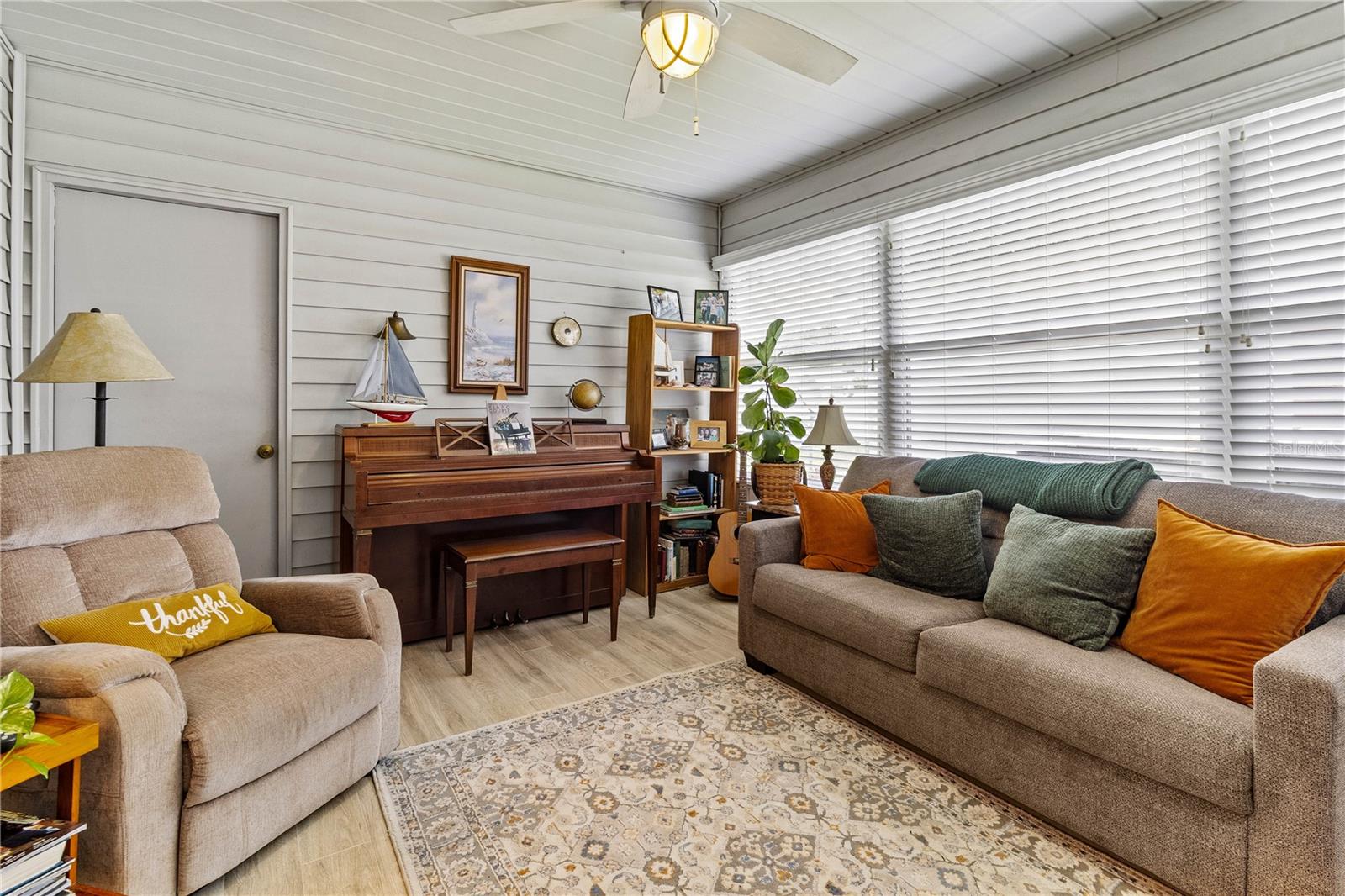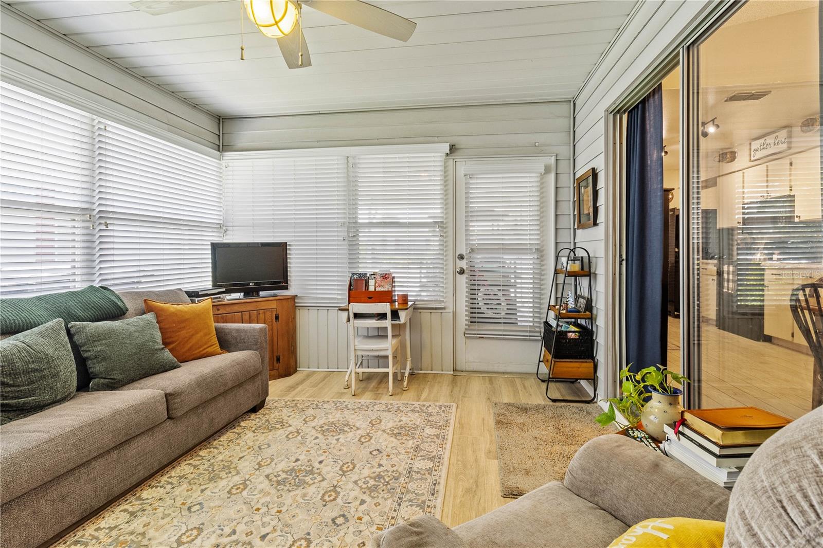 Extremely well-kept Greenbrier model located on an exterior lot in the desirable 55+ gated community of the Colonnades. This 2-bedroom, 2-bathroom home features updated tile in the kitchen and dining areas, along with vinyl plank flooring in the living room and bonus space. The roof, windows, and A/C have all been replaced within the past five years. Bright and spacious throughout, the home includes a private lanai off the primary bedroom that overlooks a lush, landscaped backyard. The Colonnades offers a low-maintenance lifestyle with fantastic amenities, including cable and internet, lawn care, and access to recreation areas such as a heated pool, Jacuzzi, sauna, fitness center, library, shuffleboard, fishing dock, billiards room, and more. Schedule your showing today and experience all this vibrant community has to offer!