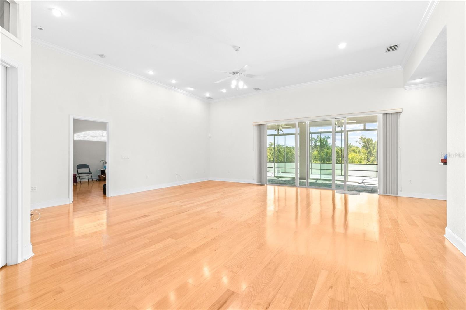 One or more photo(s) has been virtually staged. Welcome to your dream home! Nestled in a serene HOA community with direct golf course views, this 3-bedroom, 2.5-bathroom residence offers the perfect blend of comfort, elegance, and lifestyle. Beautiful and spacious home on 0.3 acres, oak floors throughout. Grand entryway and large living room with 12' ceilings, gorgeous kitchen with maple cabinets. Property Highlights: Spacious Living: Open-concept floor plan with abundant natural light.. Gourmet Kitchen: Granite countertops, modern appliances, and a breakfast bar—perfect for entertaining. Primary Suite Retreat: Generous bedroom with large walk-in closets, garden bath featuring dual sinks, soaking tub, and separate shower. Additional Bedrooms: Two well-appointed bedrooms with walk-in closets share a stylish full bath, plus a convenient half bath for guests. Outdoor Living: Private lanai overlooking the lush #5 fairway—ideal for relaxing with morning coffee or evening sunsets. Huntington Hills is beautiful and well maintained HOA community with over 395 homes, recreation center, pool, tennis/pickleball, memorial park. The community is built around the Huntington Hills Golf Club (separate entity) with both golf memberships and walk-up play available, bar/restaurant open to the public. This stunning home offers the best of resort-style living with the comfort of a private residence.