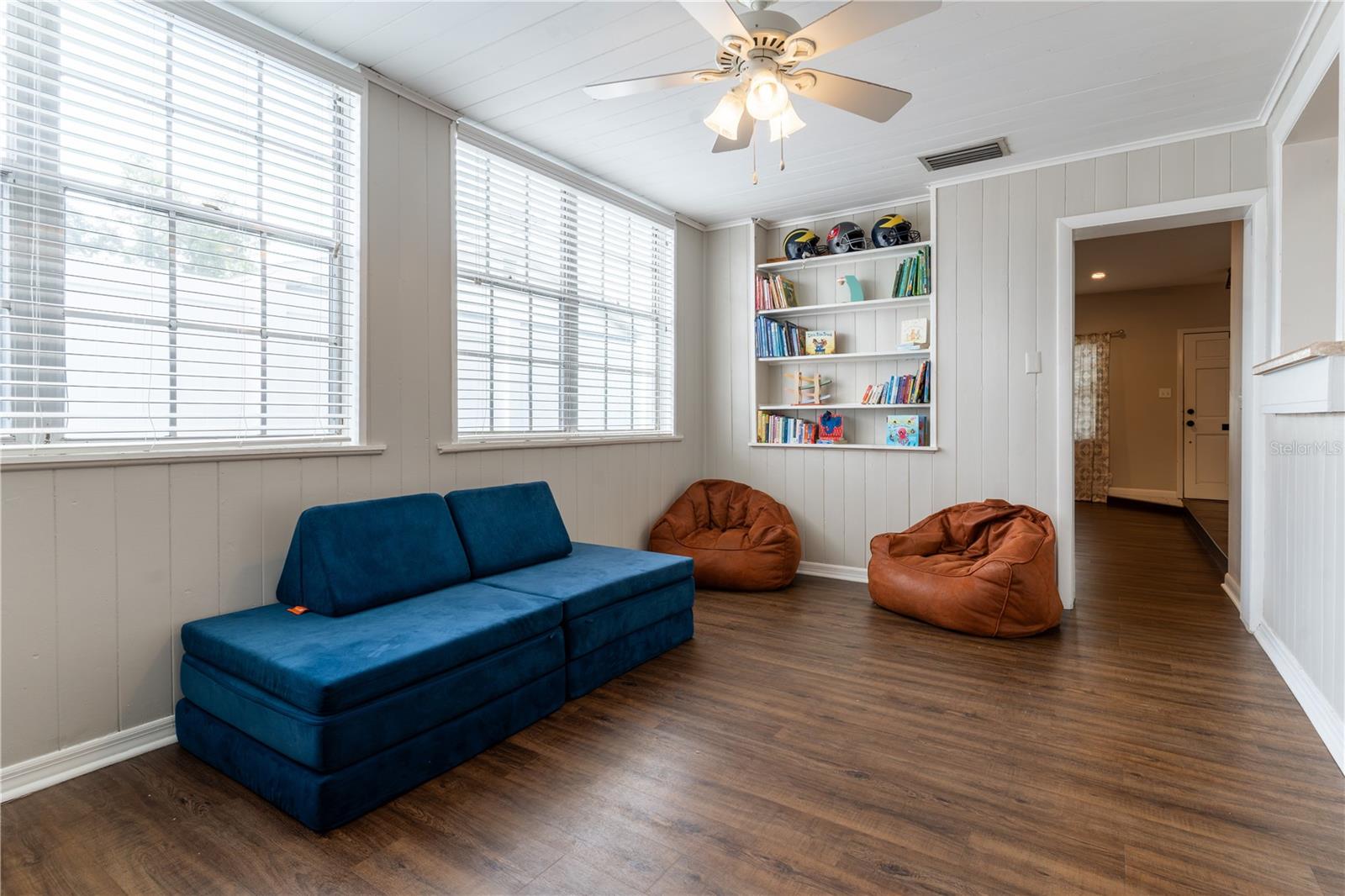 Welcome to Camphor Heights, one of Lakeland’s most loved neighborhoods and the perfect place to call home! This 3-bedroom, 2-bath charmer is packed with updates, character, and thoughtful details that make it truly stand out. From the moment you arrive, the long driveway and welcoming front patio set the tone for a home that feels inviting and warm. Step inside to find a light-filled living and dining combo that flows beautifully into the Florida room, where built-ins and big windows create the ideal space for relaxing, entertaining, or simply enjoying the view. The kitchen is designed to impress with wood cabinets, generous counter space, a double oven, and brand-new appliances—including the refrigerator and dishwasher. A pass-through window into the Florida room keeps the conversation flowing while you cook or host. The primary suite is a retreat of its own, featuring soaring ceilings with exposed beams, dual closets, and a bonus flex space perfect for a nursery, office, or cozy hideaway. The en suite bath adds convenience with double sinks and a walk-in shower, while two additional bedrooms share a stylish hall bath. A second family room—also accented with exposed beams—offers even more living space filled with charm. Step outside to your private, fenced backyard, complete with mature landscaping and a half-finished detached shed ready to become whatever you need it to be: home office, MIL suite, gym, studio, or a dream hangout spot. Recent updates include a new roof, fresh vinyl plank flooring, modern landscaping, and a bright interior laundry room with plenty of storage. Best of all, the location can’t be beat. You’ll be just minutes from Lake Hollingsworth, Downtown Lakeland, Dobbins Park, Common Ground, and Lakeside Village—close to everything yet tucked into the quiet, established community that makes Camphor Heights so special. This home is flexible, full of personality, and move-in ready. All that’s missing is you—schedule your tour today!