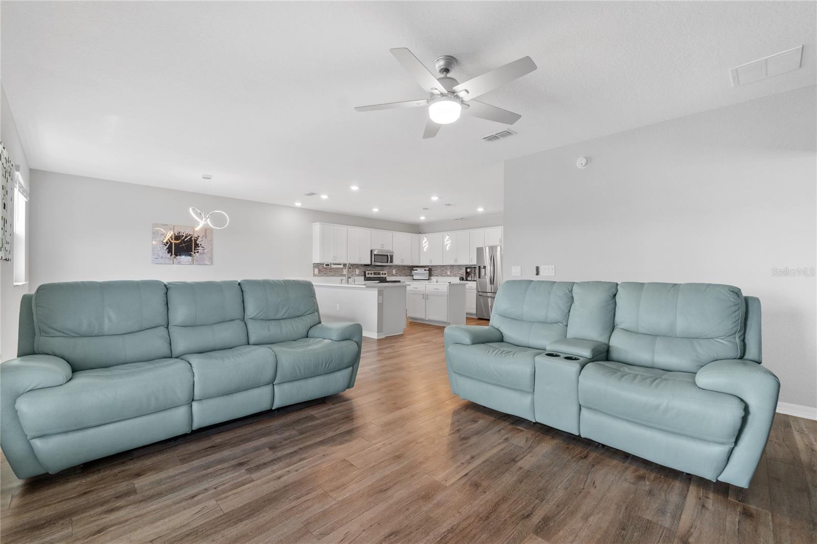 PRICED TO SELL!!! This exquisite 5-bedroom, 3.5-bath residence with a 2-car garage, built in 2020, has been thoughtfully designed and meticulously maintained—presenting itself as practically brand new with premium upgrades. -Community Amenities – 2 pools (including resort-style), clubhouse, playgrounds, outdoor fitness station, walking trail & dog park Perfectly located near Publix, Lakeside Village Mall, fine dining, boutique shopping, Lakeland Linder International Airport, flight schools, and academies. Enjoy easy access to the world-famous Sun ’n Fun Air Show and other premier local events. -Owner’s Retreat on Main Floor – spacious suite with custom walk-in closet, tiled shower, dual-sink vanity, linen closet & private water closet -Gourmet Kitchen – quartz countertops, stainless steel appliances, oversized pantry, double islands, breakfast bar, reverse osmosis system & upgraded fixtures -Whole-Home Water Filtration + discreet built-in outlets in bathroom cabinets -Modern Layout – luxury vinyl plank flooring, designer lighting, flex room (office/gathering), café/mudroom with custom shelving & upstairs 2 loft spaces, 4 spacious bedrooms upstairs with built-in closets -Stylish Living Room – tranquil pond view & electric fireplace (two TVs included) -Upstairs Laundry – premium Speed Queen washer/dryer & built-in baskets -Outdoor Oasis – screened lanai with sink, BBQ grill & dining set, fenced yard, outdoor shower, garden boxes, rain gutters & pond views -Garage – dedicated dog wash sink, extra washer hookup & Taexx Built-in Pest Control System -Furniture and décor available for purchase.