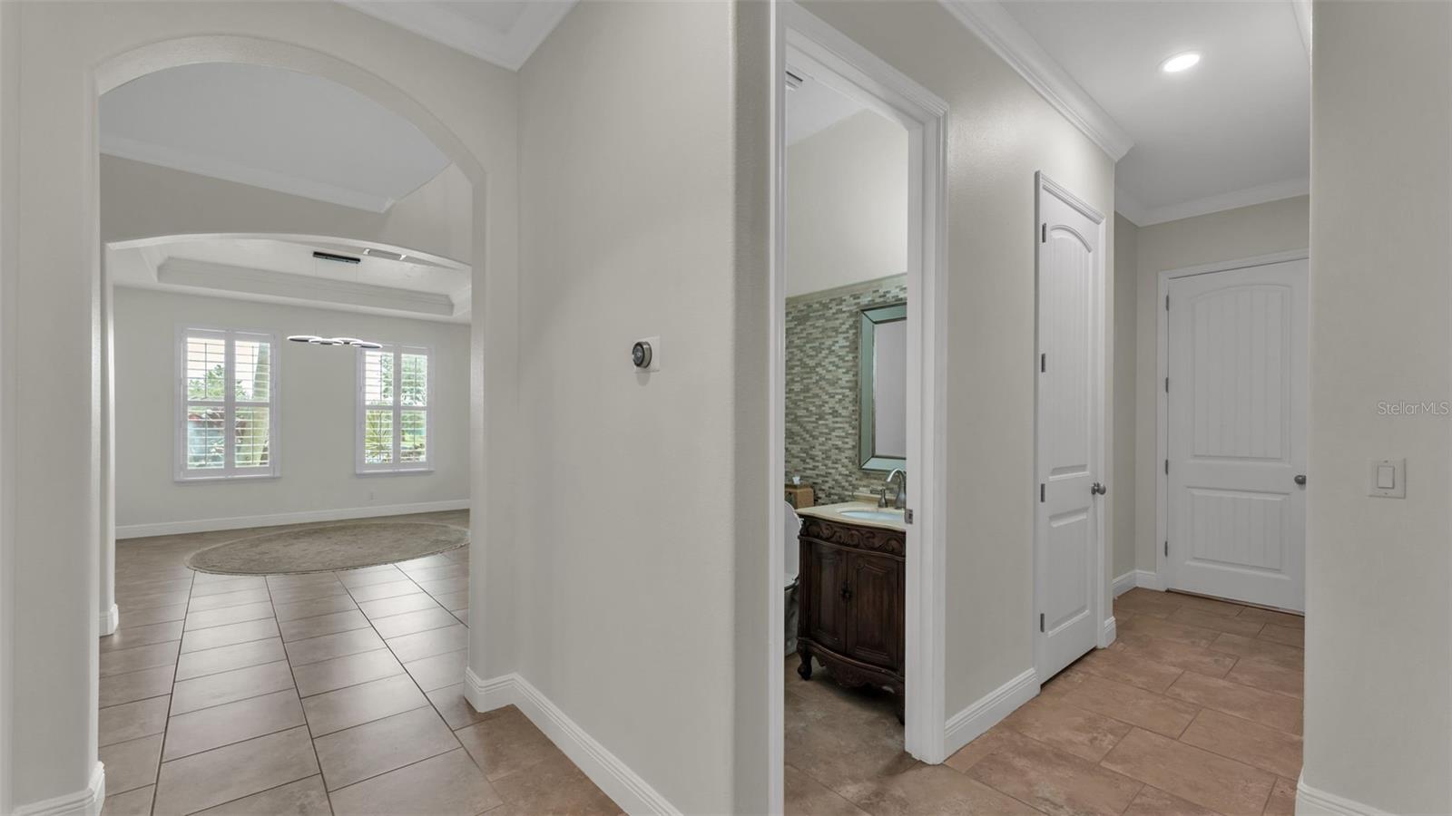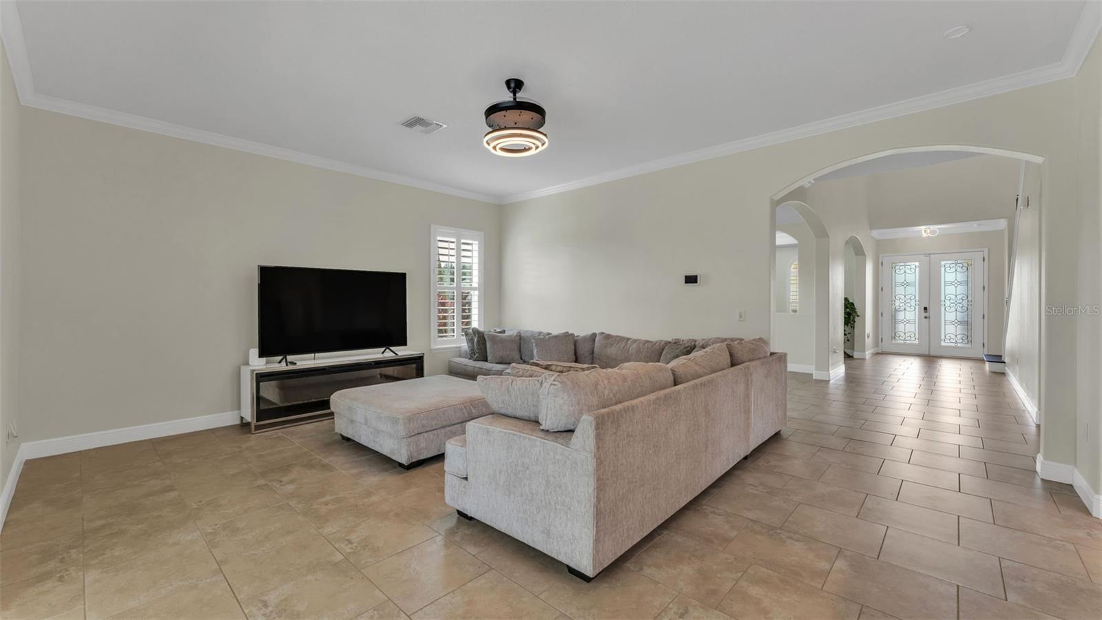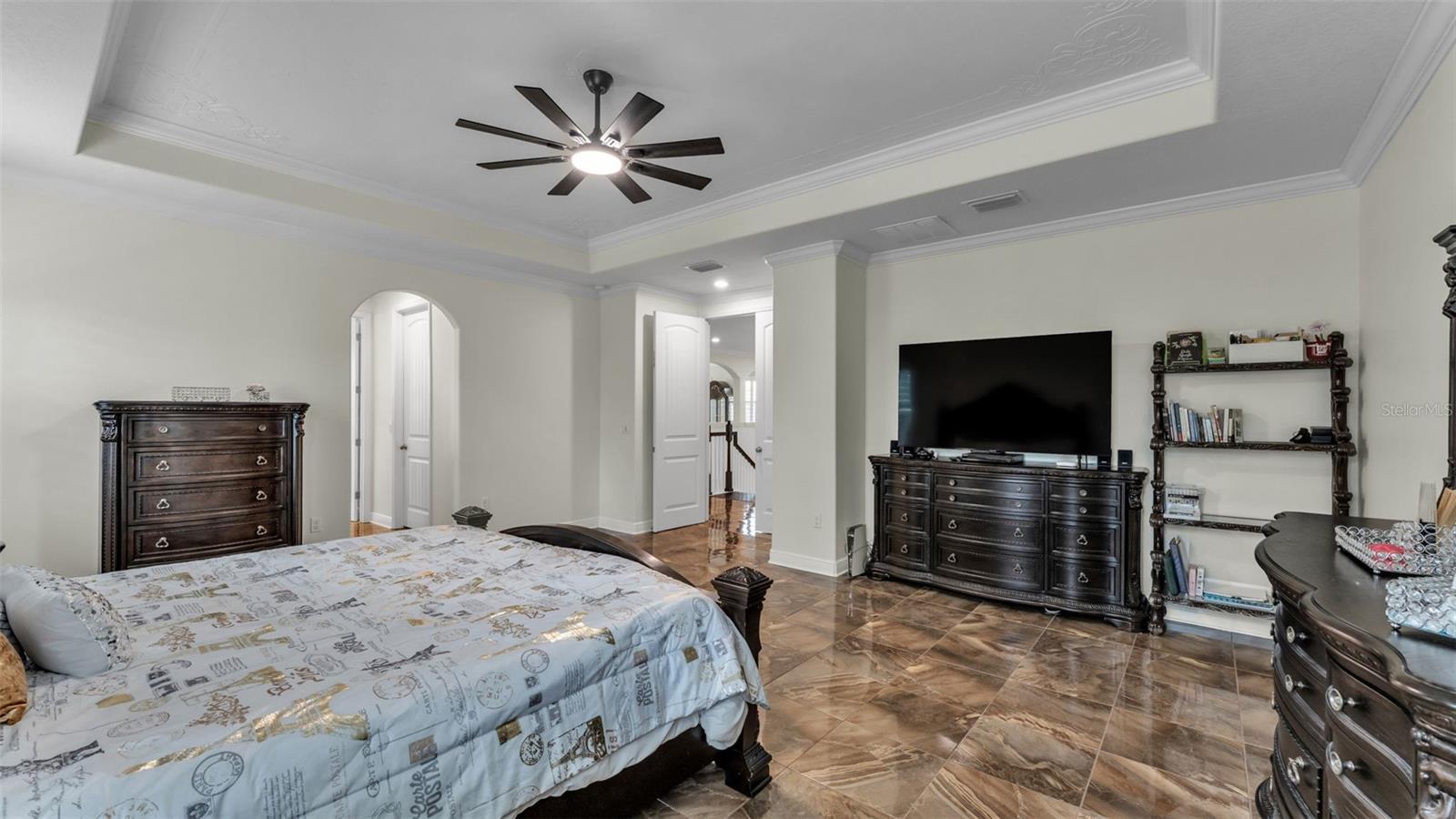 One or more photo(s) has been virtually staged. Discover the elegance of South Lakeland living in this beautifully maintained home within Eaglebrooke’s gated golf and country club community. Situated on a generous 0.38-acre corner lot, this residence offers 4,356 sqft of thoughtfully designed living space, including five bedrooms, four and a half bathrooms, and luxurious features throughout. From the moment you arrive, a dramatic entry with soaring 20-foot tray ceilings, crown molding, and freshly painted interiors set a sophisticated tone. The floor plan is exceptionally versatile with a primary suite on the main level and another upstairs, each with ensuite bathrooms, plus an additional three upstairs bedrooms and a convenient half bath on the ground floor. The kitchen is enhanced by a butler’s prep area, updated fixtures, tile flooring, elegant backsplash, plantation shutters, and seamless flow to outdoor living. Step outside to enjoy a heated saltwater pool, spacious lanai, and a full outdoor kitchen all under a barrel tile roof. The home exterior was repainted in 2023 and the interior just repainted in 2025, and the oversized three-car garage, complete with epoxy flooring and workshop space, received its update the same year. Home systems include dual A/C units installed in 2015, a gas stove and pool heater, and a security system underscoring both convenience and peace of mind. Beyond the home, the Eaglebrooke community offers an enviable lifestyle. As a 24/7 guarded, gated enclave, it features manicured grounds, mature oak canopies, and sparkling lakes. Membership at the Eaglebrooke Golf & Country Club grants access to a championship 18-hole golf course, clubhouse with dining, event venues with on-site catering, a Junior Olympic–size pool, tennis and pickleball courts, and numerous social gatherings throughout the year. The community includes sidewalks and walking trails, is golf-cart friendly, and enjoys convenient proximity to premier shopping, dining at Lakeside Village, and easy access to Lakeland, Tampa, Orlando area airports, and beaches. This home artfully blends refined interior features, resort-style outdoor amenities, functional upgrades, and a vibrant community lifestyle. If you're looking for a beautifully cared-for home and a gated golf community, this residence offers an inviting and luxury living experience.