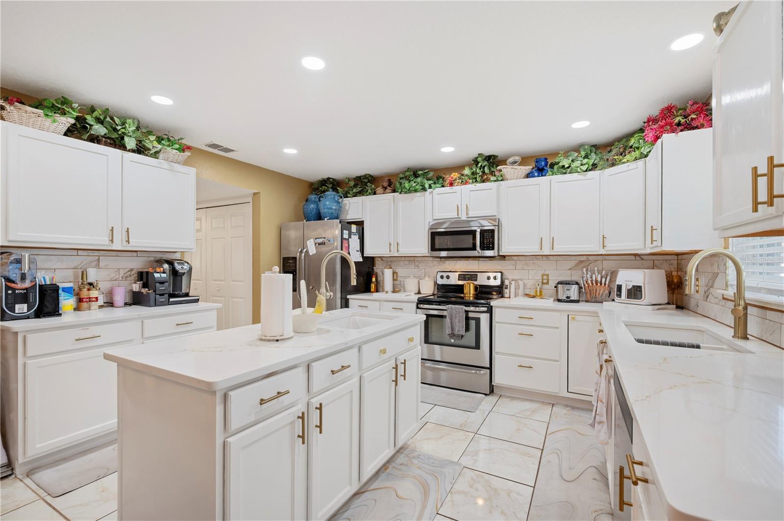 Discover this stunning 4-bedroom, 3.5-bath Spanish-style home in the heart of Lakeland, FL, perfectly blending charm and modern upgrades. Step inside to find newly installed tile flooring throughout the first floor, offering both durability and style. The second floor features beautiful laminate flooring, added in 2014, giving the home a warm and cohesive flow. The spacious kitchen was completely renovated in 2021, showcasing dual sinks, new cabinets, and gorgeous countertops—perfect for entertaining or preparing meals with ease. The second floor offers a versatile loft area, ideal for a home office, playroom, or relaxation space. The master suite is a true retreat, boasting a 2021 remodel with dual walk-in closets, dual sinks, and a luxurious walk-in shower. The half bath downstairs was also updated in 2021 for a modern touch. Enjoy outdoor living on the screened patio, added in 2014, overlooking a large backyard. The yard is fully fenced with low-maintenance PVC fencing and includes a shed and a relaxing jacuzzi. The home has been meticulously maintained with major system updates, including a new roof in 2022, two AC units (both floors, interior and exterior) replaced in 2017, and a water heater replaced in 2018. This home’s thoughtful upgrades, Spanish architectural charm, and prime Lakeland location make it a rare find.