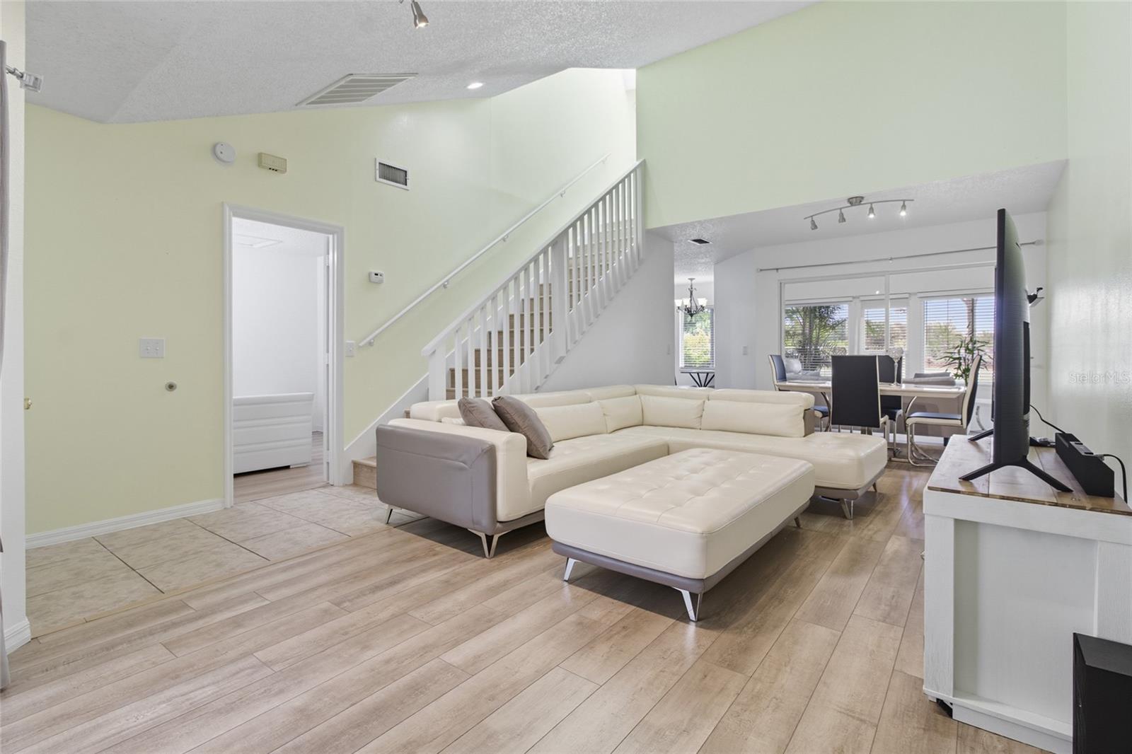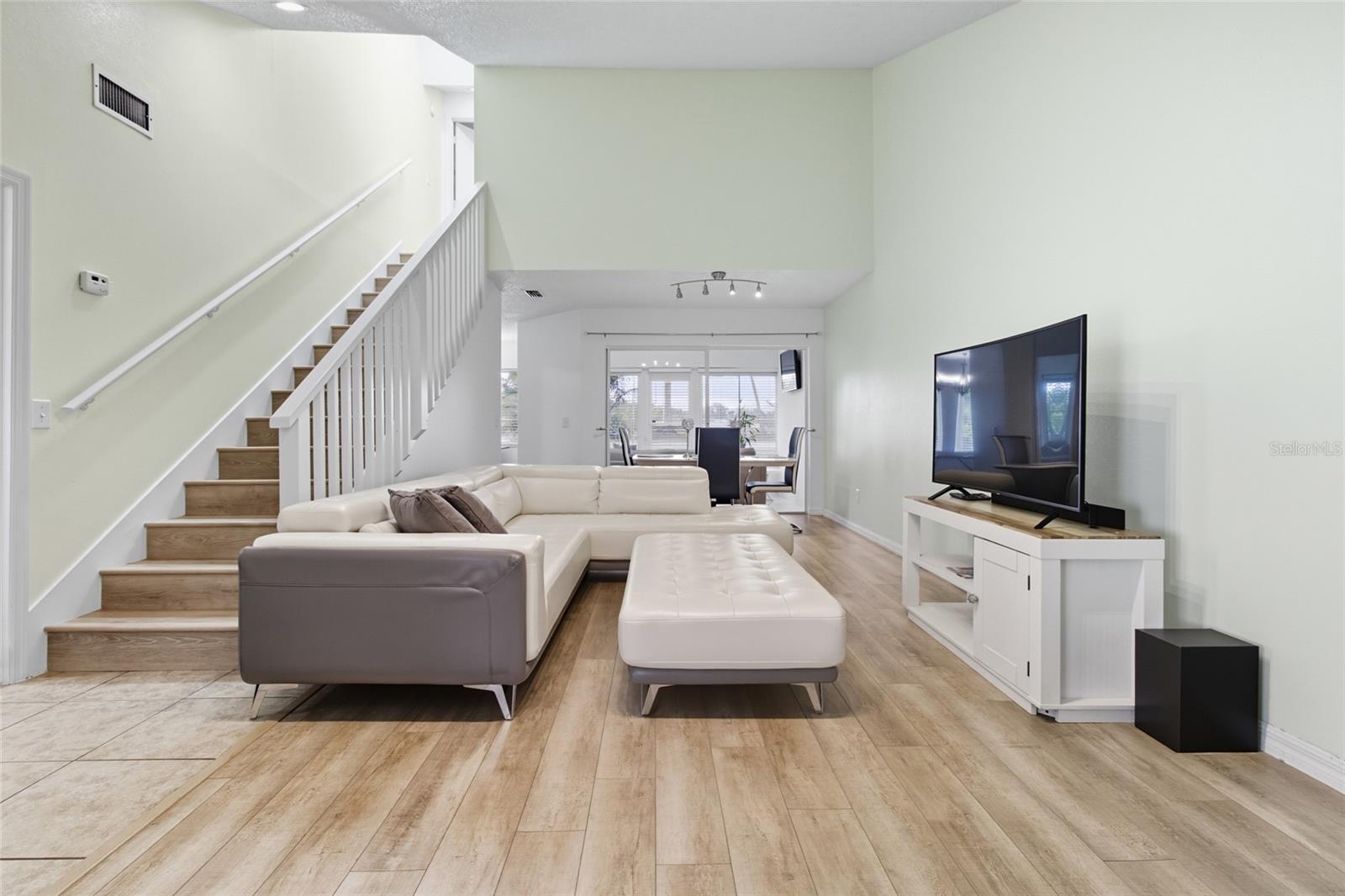 Motivated Seller! 2 Primary Suites, Private Courtyard & Move-In Ready Townhome. Welcome to this beautifully maintained 2-bedroom, 2.5-bathroom townhome designed for comfort and versatility. Featuring **two primary suites—one upstairs and one downstairs—**this home is ideal for multigenerational living, hosting guests, or enjoying added privacy. The open-concept main level offers a spacious living and dining area, perfect for entertaining or everyday living. The kitchen features an abundance of cabinetry & a quaint eat-in area. A convenient half bath downstairs is perfect for guests. A versatile bonus room is great for an office, den, craft room or library. The upstairs primary suite boasts a private full bath, large walk-in closet, and a balcony retreat (being replaced by HOA), while the downstairs primary suite provides accessibility and ease. Additional highlights include a one-car garage, HOA-maintained roof, and true low-maintenance living. Conveniently located just minutes from shopping, dining, and I-4 for an easy commute to Tampa or Orlando. Call today for your private tour!