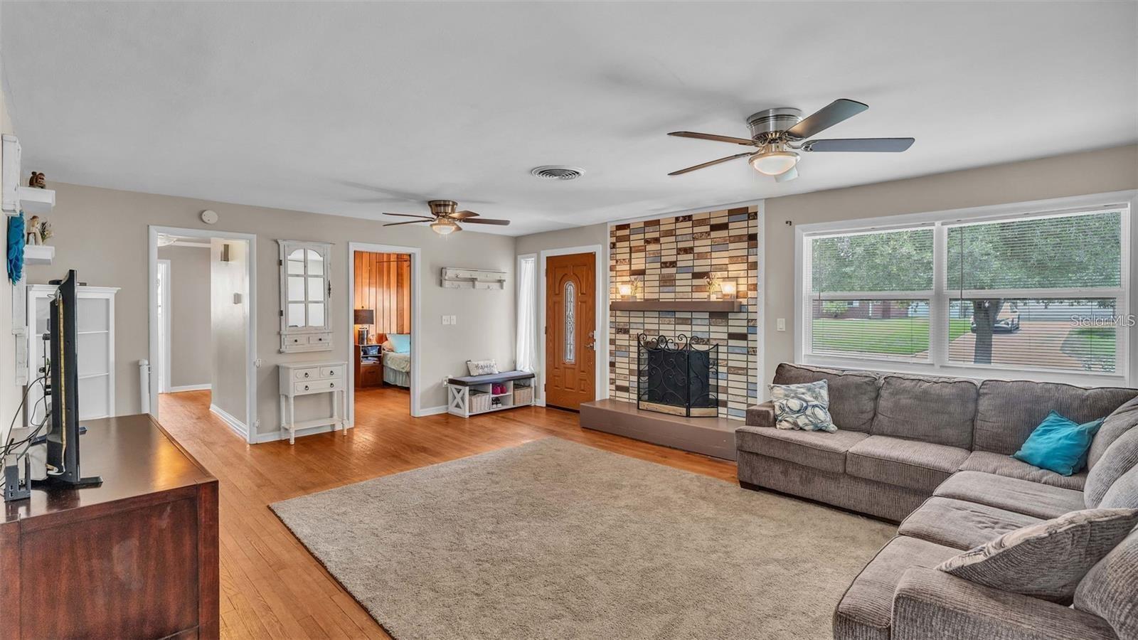 Your home is centrally located in a hidden gem community with one way in and one way out. Your back yard literally backs up to FLETCHER PARK which is directly across from LHS. FLETCHER PARK offers walking paths, sports fields, playgrounds, skate park, covered pavilions, dock to Lake Bonny, and home to the LHS Agriculture Building. Walk into your home and you’ll fall in love with all the living space! The home offers 2 separate living areas. The living room is incorporated with a gorgeous wood burning fireplace and beautiful hardwood flooring. The large family room offers bay windows. Your kitchen is a chef’s dream offering tons of countertop space for preparing, serving & entertaining. You’ll love the large island with electric, seating area, beautiful granite countertops, multiple pantries, tons of cabinets, soft close drawers, recessed and globe lighting, tile backsplash, 3 windows and your door to your back patio area w/ a window giving lots of natural lighting. The Hall Bathroom offers a tub & tiled shower combo. The main bedroom/BATHROOM offers a beautifully tiled shower stall with sliding doors, a pedestal sink and wainscoting coating decorative wall. The main bedroom has recessed lighting, and a walk-in closet w/ built in shelving. You have a nice dining room offering decorative crown molding and sliding glass doors taking you to the open/paved back patio area perfect for entertaining, enjoying the outdoors, BBQ’s and more. Enjoy the front porch sipping coffee on your built-in cozy/covered bench seating area. This beautiful home boosts tons of windows for natural lighting, ceiling fans & window treatments throughout. NO carpet in the home! Bedroom 4 would make a great office or craft room with the character of the paneling & wood flooring. You have multiple closets with shelving perfect for storage & linens in your home. This home has so much character with the original hardwood flooring you have got to see it for yourself! NO HOA! All of this is within 1 mile to Lake Hollingworth & Florida Southern College. Just 2.7 miles from Southeastern University. Within 2.8 miles of Cleveland Heights Golf Course. Back yard only needs one side of fencing to be fully fenced-in and offers a storage shed. Be sure to check out the virtual tour link. You do not want to miss this adorable 4/2 home and all its charm! WIFI thermostat, A/C replaced 8/2021, New Rheem Hot Water Heater 2022, Updated electrical panel 2013, Windows: many newer double pane windows replaced 6-7 yrs ago. Inside utility area. Make this your home today. Welcome Home!