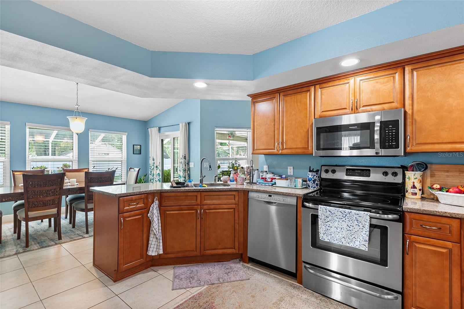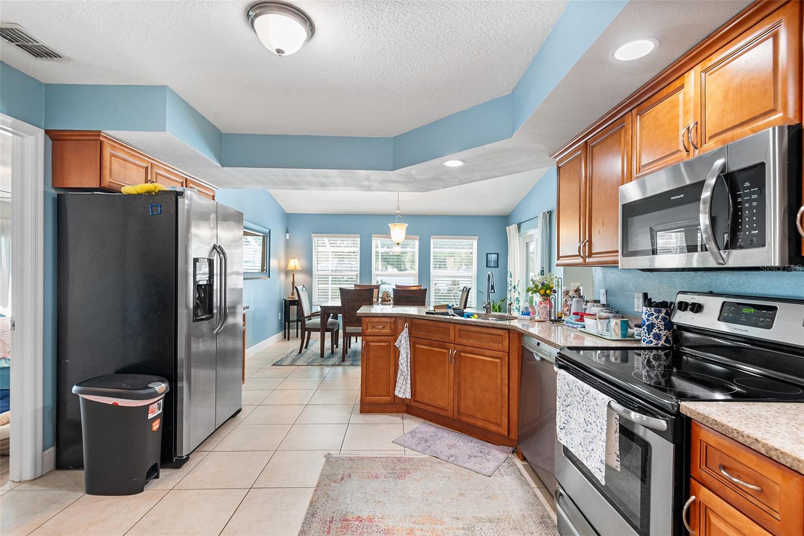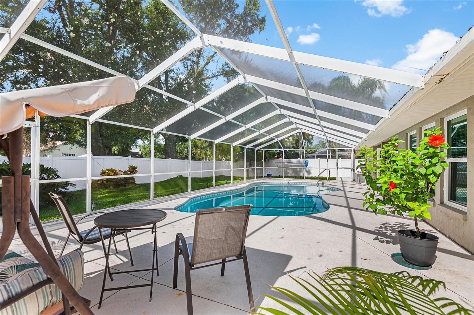 Welcome to this 4-bedroom, 2-bath pool home in a desirable North Lakeland location ! It's unique layout includes a main living area plus a private 3-bedroom and Studio living space equipped with a kitchenette and access to the pool — perfect as an in-law suite, guest quarters, or easily converted back into one spacious single-family home. Inside, soaring ceilings and an open floor plan create a bright, airy atmosphere ideal for family gatherings or hosting guests. All living spaces have new glass sliders with access to the Pool and back yard. Recent upgrades make this home both energy-efficient and move-in ready: all-new 5-layer hurricane-rated windows with a polymer core, an additional 6 inches of attic insulation, and a new pool heater. You’ll also appreciate the brand-new rain gutters with leaf guards, a full exterior security camera system, and a newly installed dishwasher in the stainless-steel kitchen. New A/C 2021 - Roof 2018 - Water Heater 2018 - New Salt-water Pool System - Interior paint 2025 Step outside to the screened lanai and fenced backyard to your private retreat to enjoy Florida sunshine, lounge by the pool, or entertain in style. Don’t miss the opportunity to make this stunning home yours—schedule a private showing today!