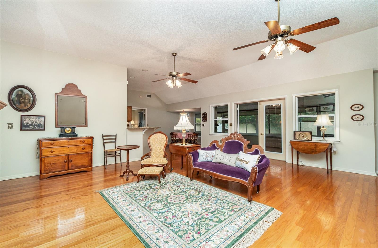 Set on an elevated corner lot with mature landscaping and a side-entry two-car garage, this Lakeland home has that immediate “this feels right” curb appeal. Inside, the layout is open but not empty—every space has a purpose, and the flow makes sense from the moment you walk in. The see-through fireplace sits right at the center, connecting the living and dining areas and giving the home a warm anchor point. Oak hardwood floors in soft, natural tones carry through the main living areas and lead straight into the kitchen. The kitchen setup is simple but functional, with bar-style seating and a roll-out cabinet that works perfectly as a coffee bar or extra appliance storage. A casual dining nook sits just off the kitchen, while the formal dining room feels defined without being shut off, helped by a partial wall and those bright bay windows the seller absolutely loves. French doors from the living room open to a screened lanai, making indoor-outdoor living an easy part of everyday life. Morning coffee, evening quiet time, or weekend get-togethers—this space works year-round and adds another comfortable place to unwind. The primary suite keeps that connection to the lanai with its own set of French doors. A walk-in closet, garden tub, and glass-enclosed shower round out the suite. The split-bedroom design places the two secondary bedrooms and the full bath on the opposite side of the home, giving everyone a bit more privacy. There’s also a flexible room with its own half bath—great for guests, a home office, or hobby space. Practical details add to the ease of living here: an indoor laundry room, fenced backyard, irrigation system, and leaf guards for low-maintenance upkeep. From the curb appeal to the flexible spaces to the everyday comfort of the floor plan, this is a home that’s easy to settle into and easy to enjoy.