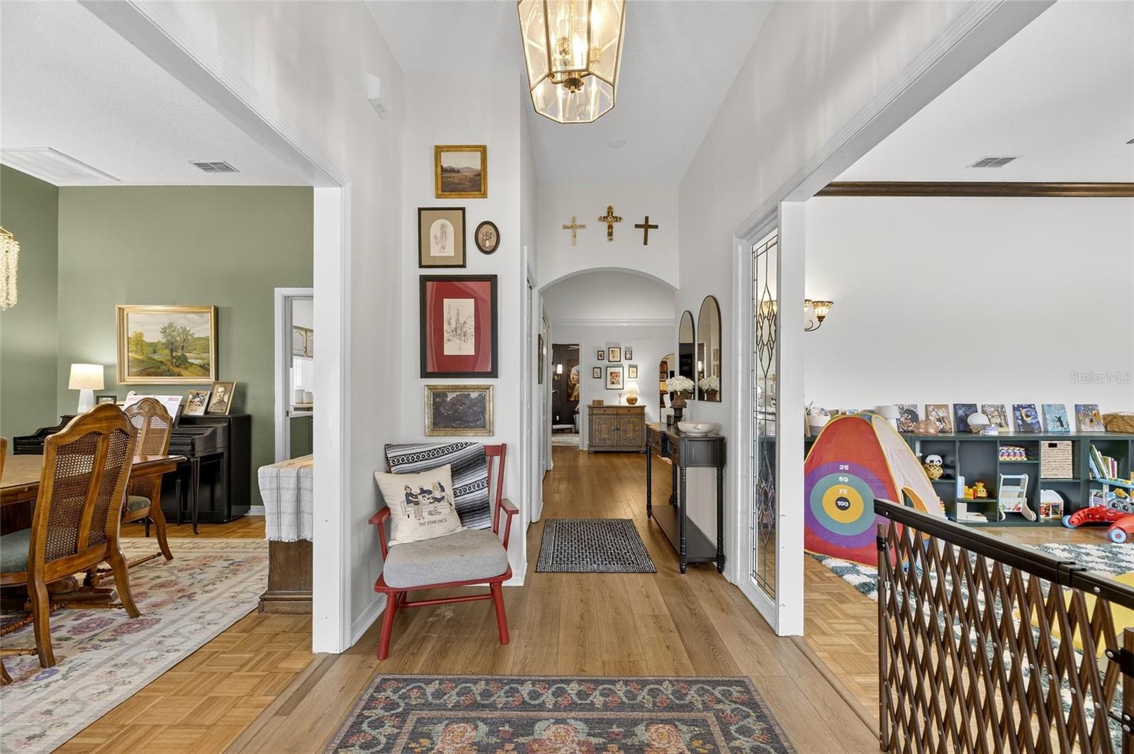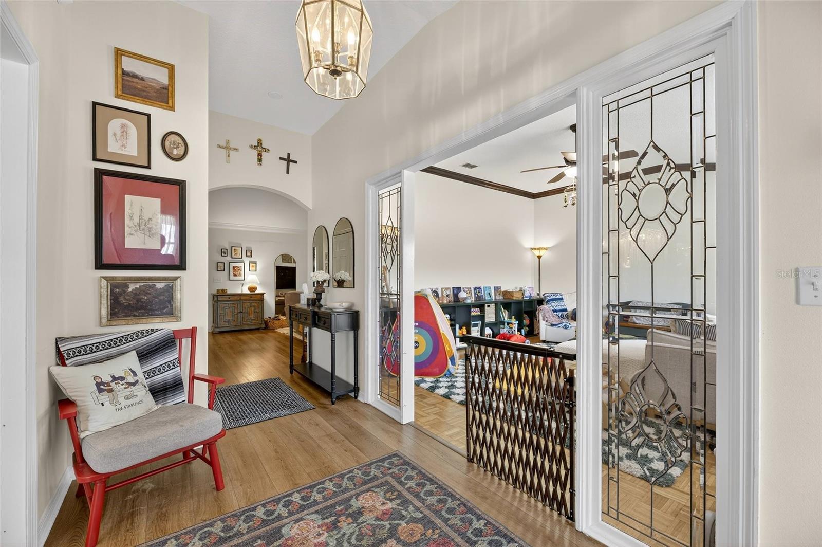 Welcome to 627 Jessanda Circle in the desirable gated community of Scott Lake West in South Lakeland. This beautifully updated brick home offers over 2400 square feet with 3 bedrooms, 2 bathrooms, a formal dining room, formal living room that could convert to a 4th bedroom or office, a large family room, plus a cozy den with fireplace. The spacious renovated kitchen features quartz countertops, soft-close cabinets, stainless steel appliances, an island with seating, and an eat-in area. The primary suite has dual closets and a luxury bathroom with a new spa tub and showers surrounded by beautiful tile and double sink vanity. Enjoy vaulted ceilings, updated flooring, a large laundry room with sink, and a 2-car garage. The backyard is pool-ready and perfect for creating your outdoor oasis. Located in a quiet gated neighborhood with low HOA, near George Jenkins High School, Publix, Target, dining, and Polk Parkway access. Schedule your private tour today.