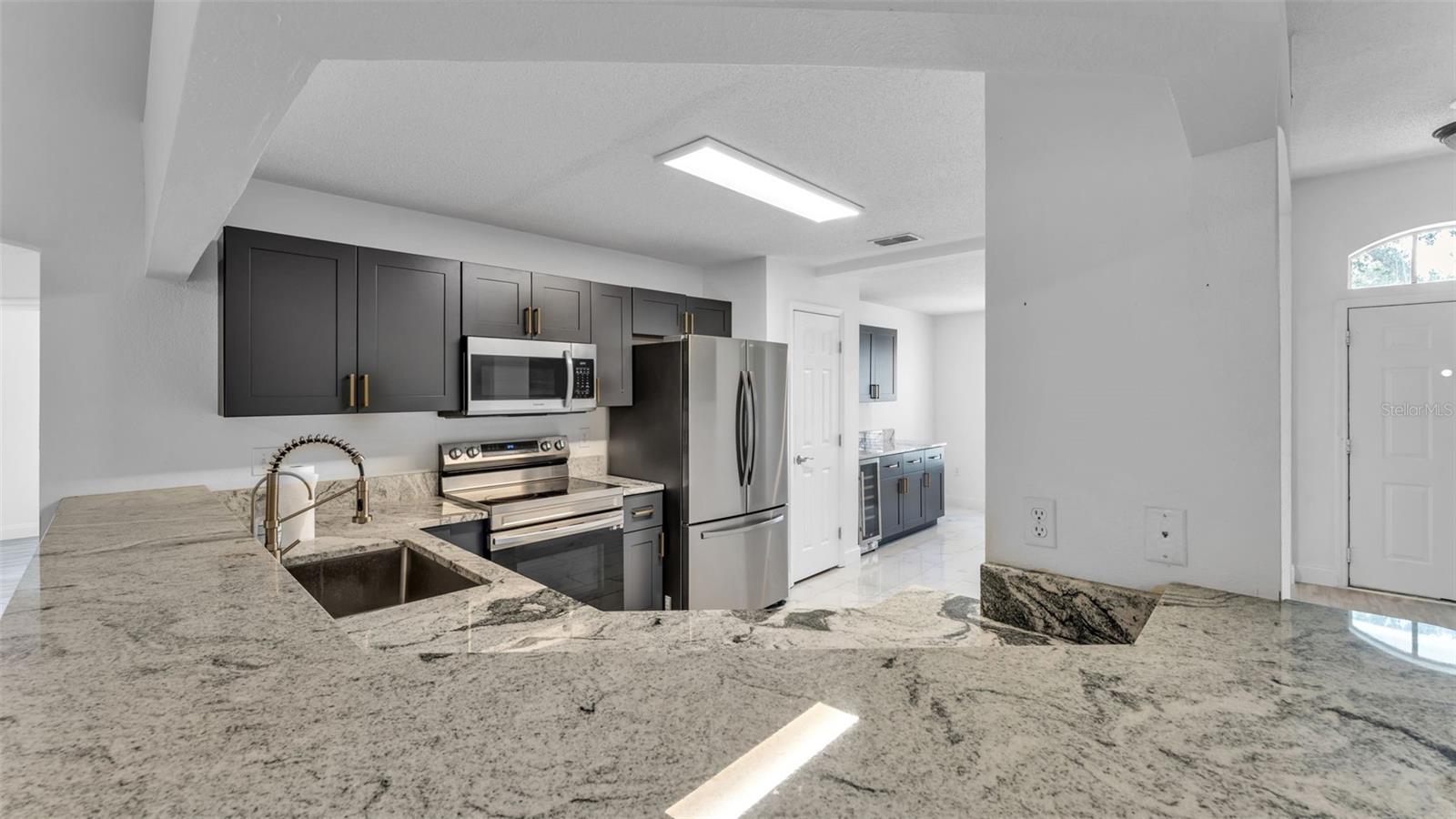 Welcome home to 3174 Valley Vista Circle — a beautifully updated 3-bedroom, 2-bath residence tucked within a quiet and desirable South Lakeland neighborhood. Step through the front door into an airy, open floor plan featuring vaulted ceilings, new luxury flooring throughout, and a spacious flex room to the left of the entry — ideal as a home office, formal living room, or playroom. The fully remodeled kitchen was thoughtfully redesigned with stainless steel appliances (installed June 2023), ample cabinetry, and generous counter space perfect for everyday living and entertaining. The primary suite includes a large walk-in closet and private bath, while the split-bedroom layout provides comfort and privacy for family or guests. Enjoy peaceful afternoons on the screened-in lanai overlooking the expansive fenced backyard, offering plenty of room for pets, play, or future outdoor enhancements. The home also features a two-car garage with openers, a 2-year-old roof, regularly maintained systems, and attractive Alabaster and Iron Ore paint tones both inside and out — giving the home a crisp, modern look. Located close to 540A, the Polk Parkway, excellent schools, and shopping, this home blends comfort, convenience, and style in one exceptional South Lakeland location. Move-in ready and beautifully maintained — schedule your private showing today!