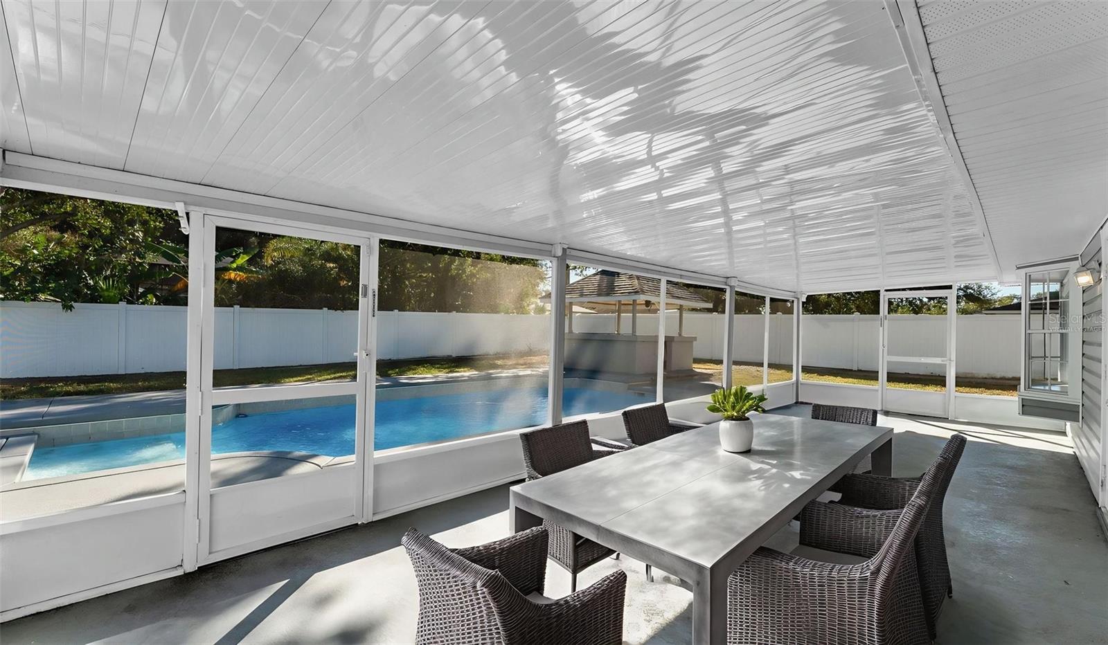 Welcome to 6116 Scott Lake Rd, a beautifully maintained home located in the desirable Scott Lake Estates with no HOA. This spacious 4-bedroom, 2-bathroom residence also features an office and a flex room, offering plenty of space for work and play within its 1,955 square feet of living area. The converted garage provides an additional bonus or game room for even more versatile living space. Enjoy outdoor living at its finest with a completely fenced-in yard, vinyl privacy fencing, and an inground chlorine swimming pool complete with a brand-new pool pump. Relax in the screened-in patio overlooking the pool and backyard or entertain guests at the outdoor bar area. There’s also a shed for extra storage and an extra parking pad with gate access—perfect for a boat or RV. Inside, the home features tile flooring throughout the main areas and cozy carpet in the bedrooms. The updated kitchen offers recessed lighting, upgraded cabinets, stainless steel appliances, and a convenient eating space. The primary suite includes its own ensuite bathroom with a beautifully tiled standing shower. Additional features include a new roof installed in 2025, gutters, updated plumbing, new insulation, and a recently added attic ventilation system for energy efficiency. The AC was replaced in 2023, ensuring comfort year-round. The property’s landscaping includes attractive rock accents and a private front entryway with a sidewalk framed by privacy fencing on each side. French doors from the living room open to the lanai, creating a seamless flow between indoor and outdoor living spaces. Conveniently located just off Scott Lake Rd, this move-in-ready home is close to top-rated South Lakeland schools including Scott Lake Elementary, Valley View Elementary, and Highlands Grove Elementary, as well as Lakeland Highlands Middle. You’ll also enjoy easy access to the new Lake Miriam Publix, shopping, and numerous dining options nearby. Schedule your showing today and see all that this South Lakeland gem has to offer.