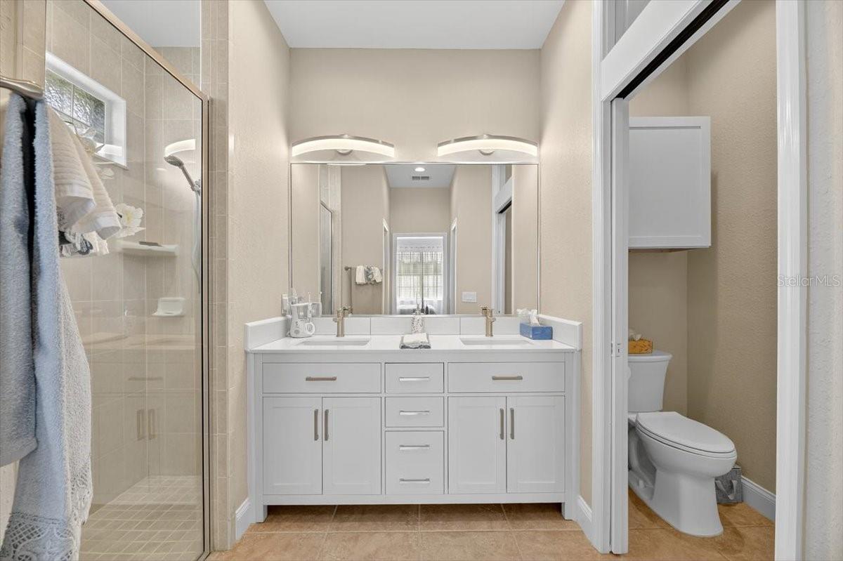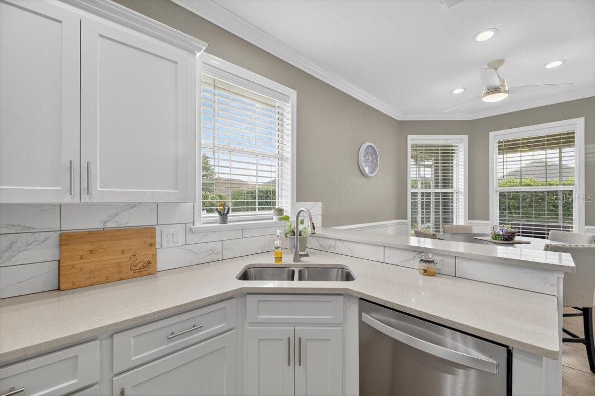 Welcome to this beautifully updated 2BR/2BA home in the desirable 55+ gated community of Lake James. Sitting on a large cul-de-sac lot, every inch of this home has been thoughtfully refreshed for comfort and peace of mind. Recent updates include a new roof, new A/C, new hot water heater, and garage door opener (2024), plus new LED lighting, fans, blinds, switches, and hardware (2021). The kitchen was renovated in 2021 with refaced cabinets, quartz countertops, new sink and backsplash, and updated appliances including dishwasher and refrigerator. Both bathrooms feature new vanities and toilets (2021). Plush new carpet adds warmth to the living and bedroom spaces. The master suite includes double walk-in closets, an ensuite with a walk-in shower, double vanity and a separate water closet. The convenient laundry room provides storage cabinets, a pantry and a utility sink. Enjoy outdoor living with a re-screened lanai and new front screen enclosure (2023). Lake James offers a tranquil lake, walking trails, a community pool, and clubhouse — all close to shopping, dining, and medical care. Move-in ready and lovingly maintained, this home offers worry-free living in one of the area’s most welcoming active adult communities!