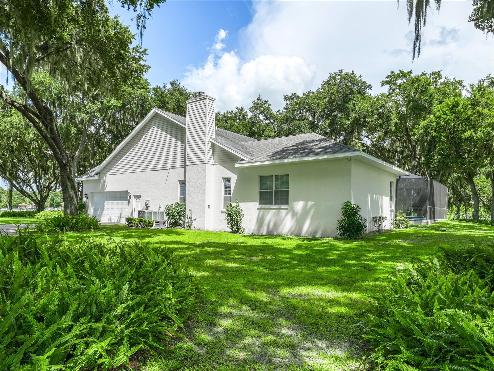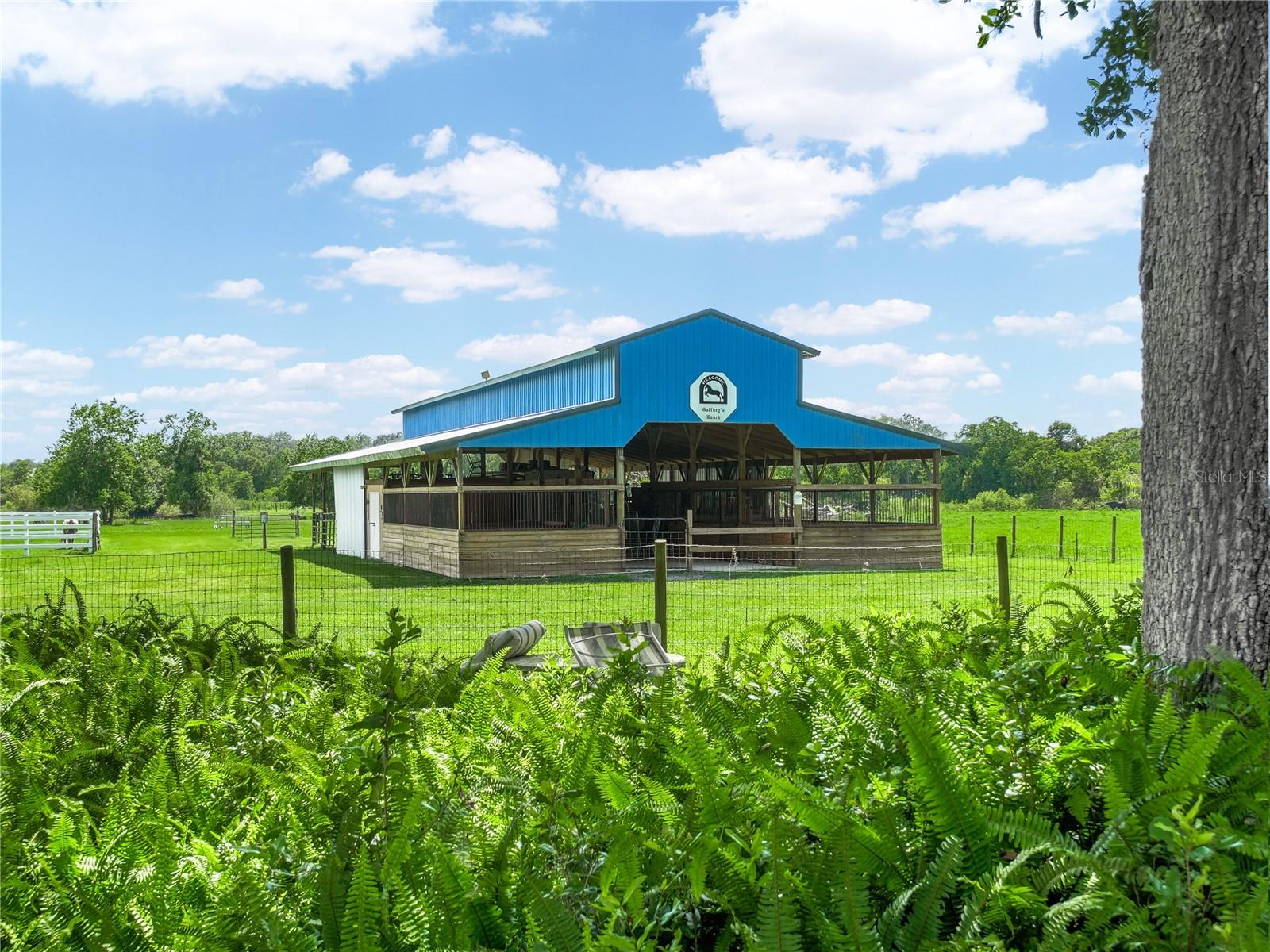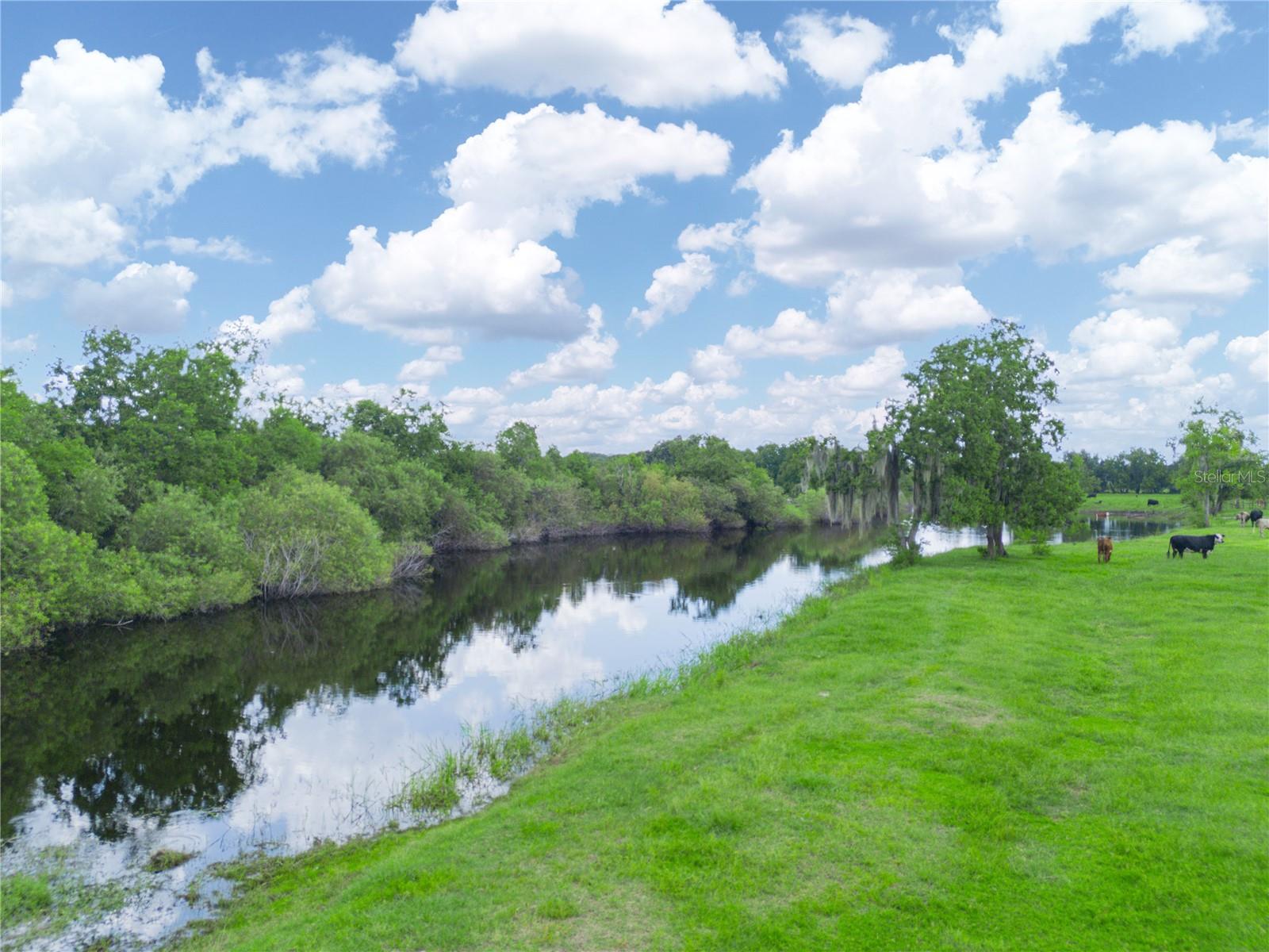 Nestled on a sprawling approximately 14.49-acre plot, this captivating house offers a peaceful and private retreat. The home features four bedrooms and three bathrooms, encompassing approximately 2,901 square feet of thoughtfully designed living space. BRAND NEW ROOF 4/2025. The majestic oaks lining the entrance create a charming and inviting atmosphere. Carefully designed with 6 courses of block and block foam filled walls. The window and sliding glass doors are double paned, the garage door insulated. Inside, the home boasts a double foyer that opens to the formal dining room and living room, featuring soaring ceilings, decorative niches, and crown molding. The private office, with its large window, provides an ideal setting for a home workspace. The kitchen showcases Kraftmaid cabinetry, black galaxy granite countertops, and brand-new appliances. The separate dinette area offers a private entry to the lanai through French doors, creating a serene and inviting space. The expansive family room, with its wood-burning fireplace, provides ample room for family gatherings and relaxation. The primary bedroom, a generously sized suite, features a private sitting area and French doors leading to a private entry to the pool area.The primary bathroom boasts a decorative tile shower, luxury vinyl plank floors, a soaking tub, double sinks, double walk-in closets, and a separate water closet. The inviting lanai overlooks the lush pasture, offering a calming environment. The property also boasts an impressive 1,300 feet of creek, 600' walk from creek with teeming with fish, and a 50-by-95-foot, 6-horse stall barn, equipped with automatic water and 100-amp service, allowing for future loft expansion and 12 x 12 tack/tool room. Horse lovers will love white vinyl fenced riding arena with round pen. The property also features an oversized 2.5-car side-entry garage and ample parking on the long concrete driveway.