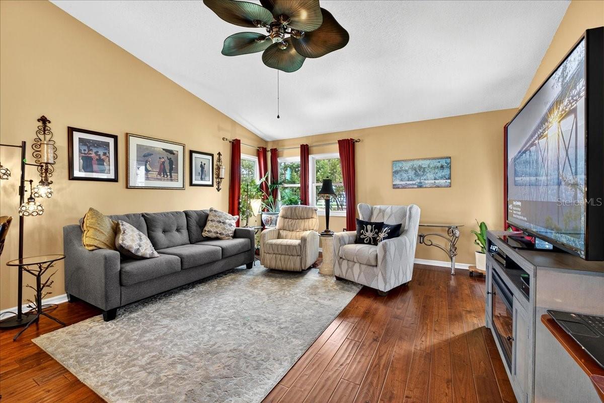 Sandpiper Golf and Country Club, Lakeland's premier 55+ community, is where all the cool kids live because we've got it going on. Buying this gorgeous move-in ready villa will get you in without breaking the bank! This home has an enormous kitchen full of new appliances from 2024, space for a dining area and a moveable island, and there’s an adorable window seat too. There’s real wood flooring consistently throughout the whole house (except in the tiled kitchen, baths and lanai) which gives a smooth flow to the open concept. The giant walk-in closet in the luxurious owner's suite will let you relax knowing you have space for everything. And from that expansive comforting owner's suite, you can waltz right out to the tiled lanai and enjoy the mosquito-free peace and quiet. The owner’s shower already has convenient safe grab bars in the lovely tiled shower. There's a surprisingly large one-car garage with space for whatever kind of washer and dryer you bring. And some of the furniture may stay/convey with the home if you like, as well. Your HOA dues at this villa are quarterly, and they cover the roof, the exterior painting, the water and electricity for the common area sprinkler system, internet, cable tv with up to three boxes, and lawn service too. And, let's not forget the amaaaaayzing amenities and happenings here at Sandpiper. We have a club for every card game you can think of and some you might never have heard of, even. There are two pools, two hot tubs, a sauna, pickleball, tennis, cornhole, shuffleboard (there's actually a really competitive team here, BTW), billiards, gas grills and picnic table area with pavers, Community Clubhouse, Recreation Center, gym, crafting club, bowling club, travel club, regular dances and gatherings, annual men's lunch, annual women's lunch, weekly Bingo, pancake breakfast events, puzzle room, yoga, strength training, Pilates, stretch class, water volleyball, water aerobics, you name it. Oh, we DO have fun! Come join us, we'd love to have you as our new neighbor! VIDEO WALKTHROUGH AVAILABLE