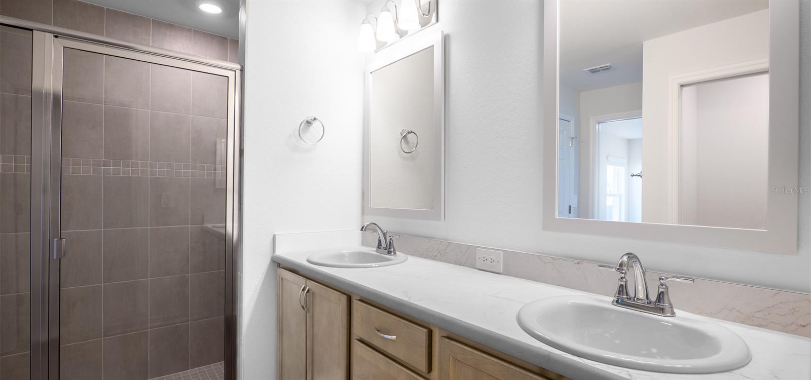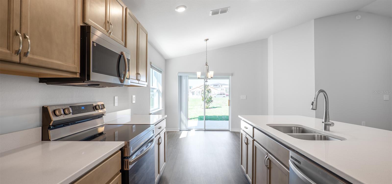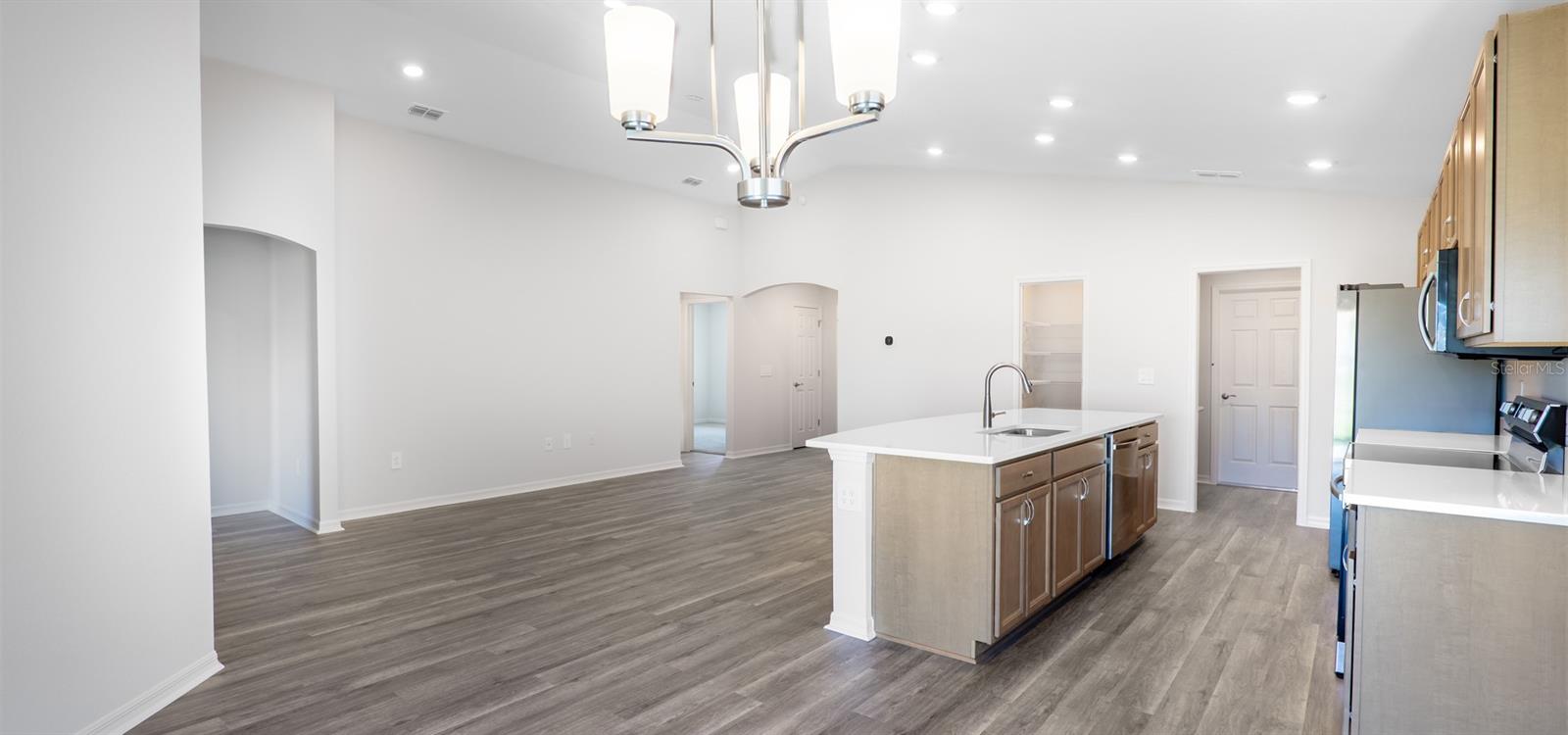New construction home with 1,545 square feet on one-story including 3 bedrooms, 2 baths, and an open living area. Enjoy an open kitchen with granite countertops, Samsung stainless steel appliances, a walk-in pantry, and a spacious island, fully open to the dining café and gathering room. The living area, laundry room, and baths include luxury wood vinyl plank flooring, with stain-resistant carpet in the bedrooms. Your owner's suite is complete with a walk-in wardrobe and a private en-suite bath with dual vanities, a tiled shower, and a closeted toilet. Plus, enjoy a covered lanai, 2-car garage, custom-fit window blinds, architectural shingles, energy-efficient insulation and windows, and a full builder warranty. "Please note, virtual tour/photos showcases the home layout; colors and design options in actual home for sale may differ. Furnishings and décor do not convey.”