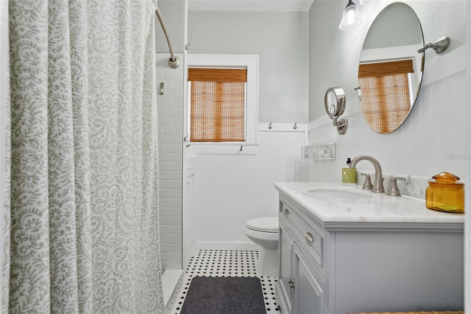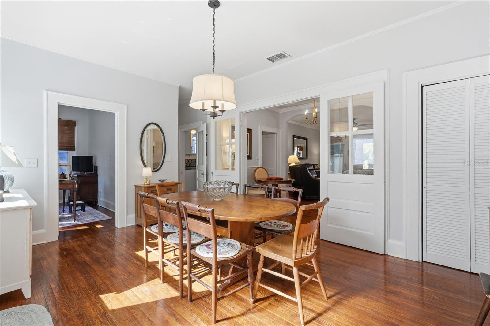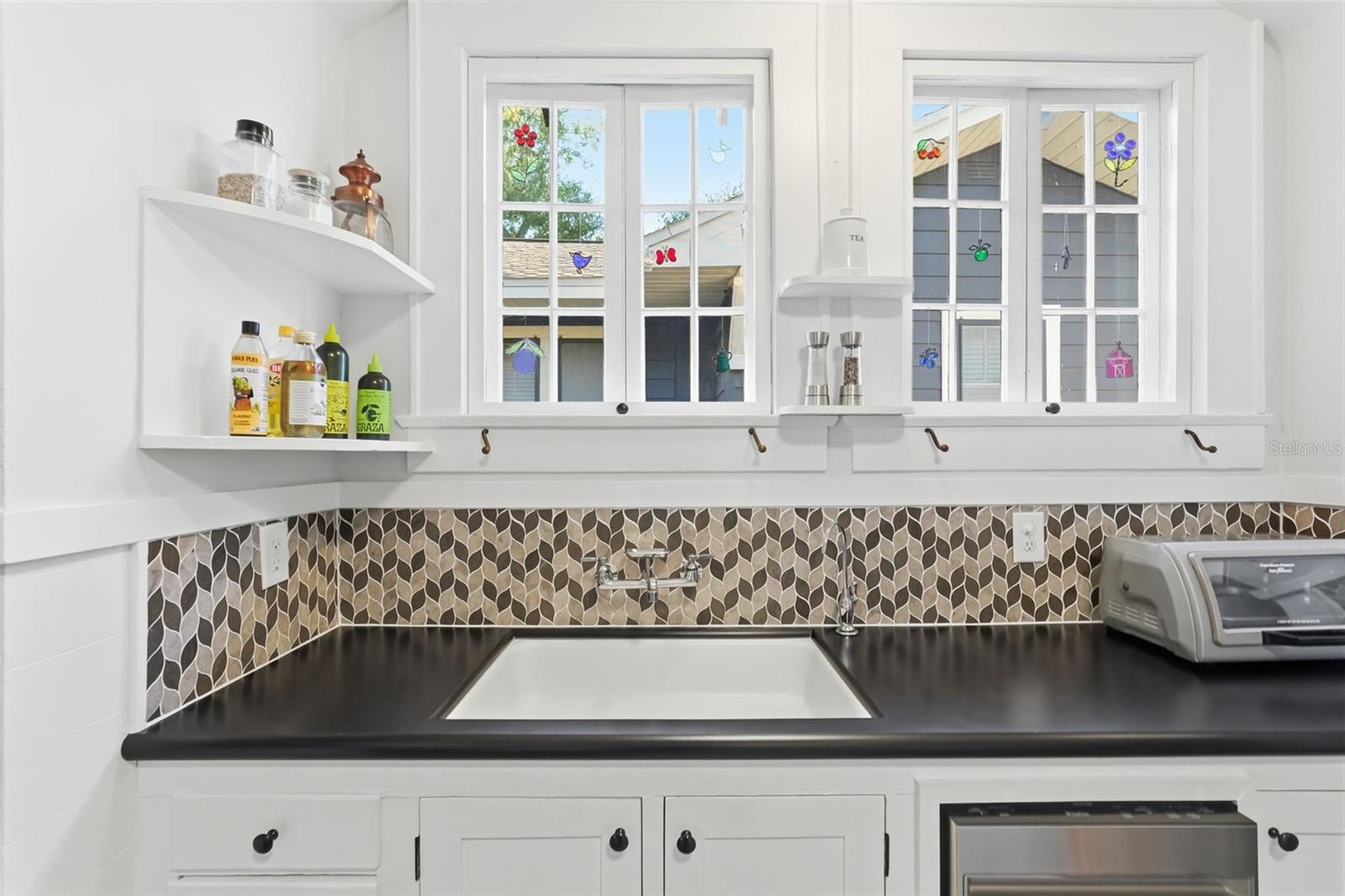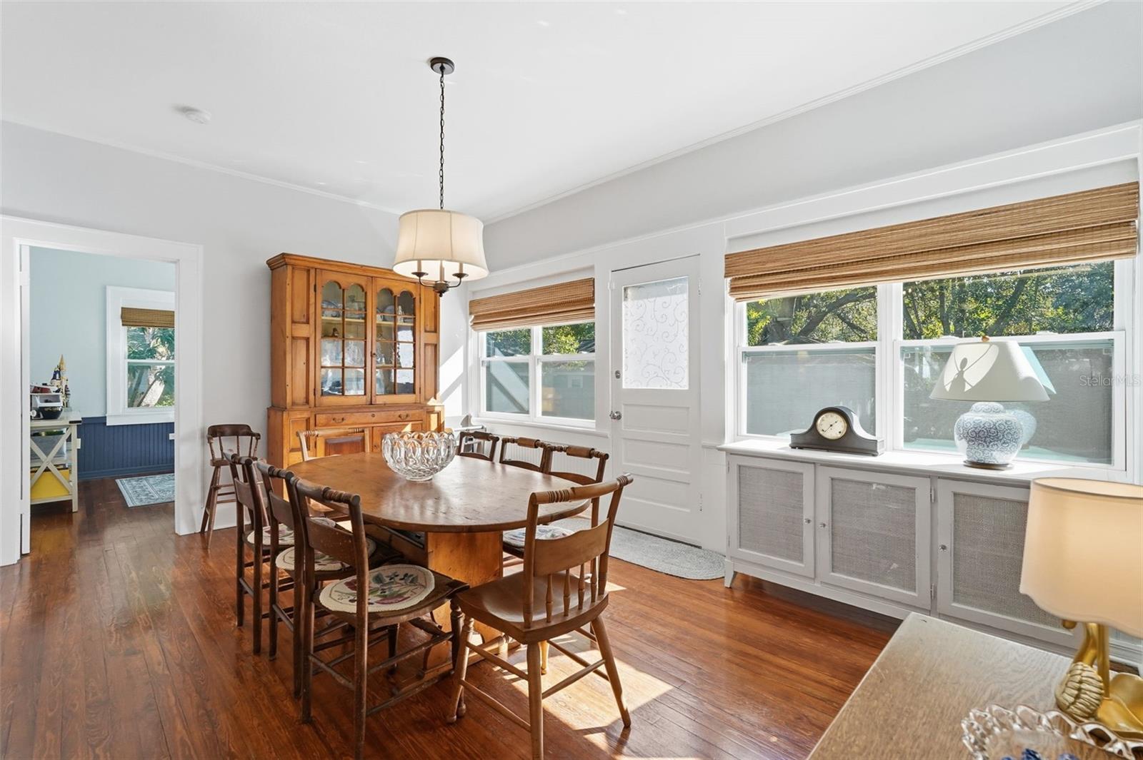 One or more photo(s) has been virtually staged. A true 1925 Craftsman bungalow — now celebrating 100 years — located in the heart of the East Lake Morton Historic District. This meticulously maintained home blends authentic historic charm with modern convenience, preserving original architectural details while offering thoughtful updates throughout. Inside, you'll find beautiful original hardwood floors, wood casement windows with period hardware, arched room transitions, and extensive crown molding. The screened front porch with beadboard ceiling and a ceiling fan, is perfect for enjoying mornings or relaxing evenings. The kitchen has been intelligently redesigned to maximize space, featuring custom inset cabinetry with a built-in microwave enclosure and dedicated pet nook, gas cooking, mosaic tile backsplash, and stainless appliances. Both bathrooms have been fully remodeled in a style that honors the home’s era — with classic tile floors, updated fixtures, and original built-in cabinetry retained. Major systems like HVAC and roof have been routinely serviced and maintained with a newer gas water heater. Additional upgrades include a whole-home water softener and filtration system with reverse osmosis, newer irrigation system, exterior landscape lighting, and an expanded backyard paver patio ideal for entertaining. The front yard was recently re-sodded with St. Augustine grass, adding lush curb appeal. The home’s 4-bedroom layout offers a dedicated office/flex room, formal living and dining areas, casual dining space off the kitchen, and a bright rear family room that overlooks the backyard. Storage is abundant with original built-ins, attic space accessed through the attached one-car garage, and a detached garage/workshop with alley access for additional storage or projects. The fenced backyard provides privacy, shade, and flexible outdoor living space for pets, gardening, or gatherings. Just blocks from Lake Morton, Florida Southern College, and Downtown Lakeland — this is historic district living at its finest. A rare opportunity to own a move-in-ready 100-year-old home with character, craftsmanship, and modern practicality.