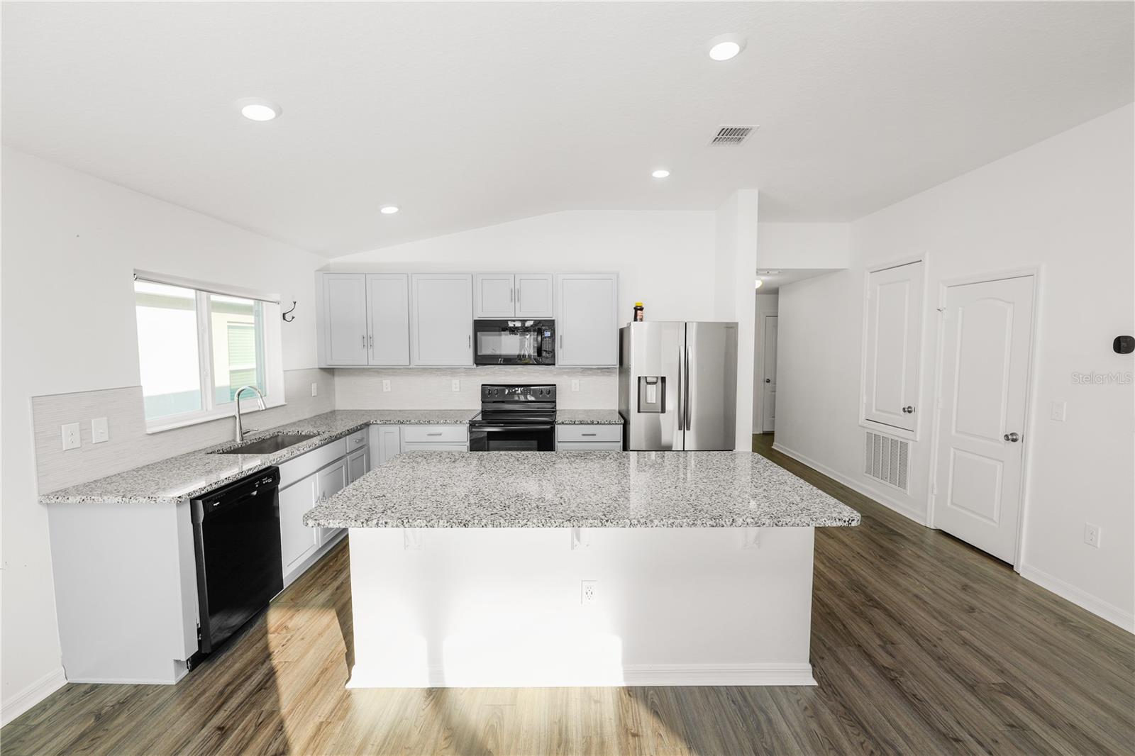 Welcome to your 4 bedroom, 2 bathroom home with a FULLY fenced in backyard located in a quiet community with easy access to dining, shopping, and major roadways! Arriving at the home, you’ll find a landscaped yard and stone accents on the front of the home. Entering the home, you’ll find LVP flooring and a bright and open living area with plenty of natural light and a feature wall in the living room. The spacious open kitchen features a large island, granite countertops, and plenty of cabinet and countertop space. The primary bedroom, located at the back of the home for additional privacy, is generously sized with carpeted flooring and features an en-suite bathroom with a dual sink vanity, walk-in shower with tile surround and a spacious walk-in closet. The remaining bedrooms offer plenty of space and share the main hall bathroom with a single sink vanity with a large countertop space, a tub/shower combo, and a linen closet. The home also features an indoor laundry room. Stepping through your sliding doors you’ll find a covered patio and a fully fenced in yard with plenty of space for entertaining. This home is move in ready, schedule your private showing today!