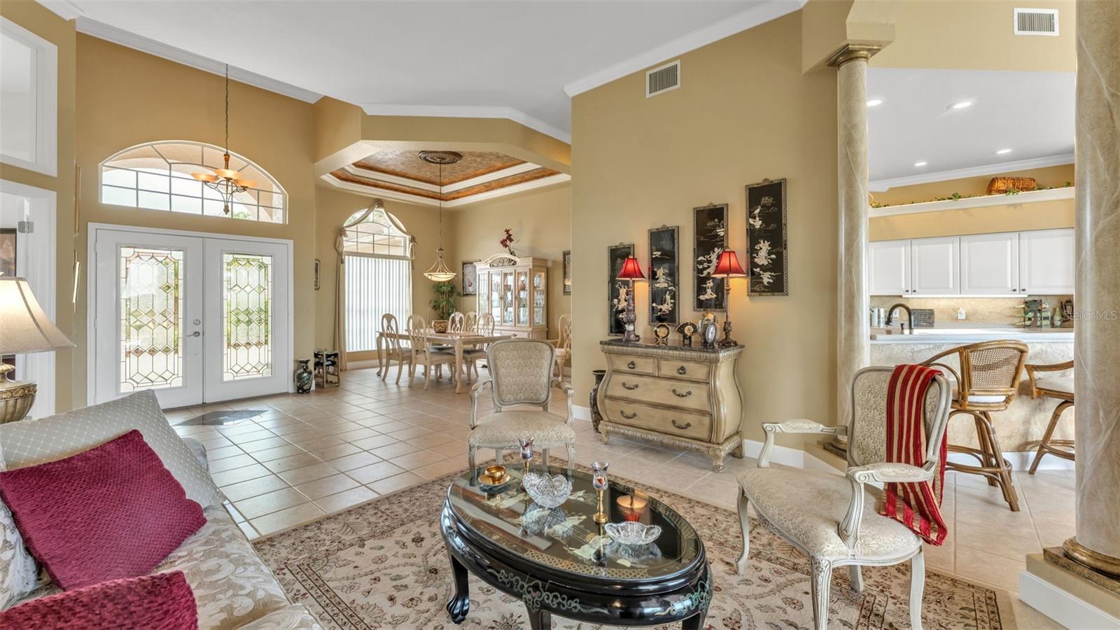Looking for a 3-bed single family in Lakeland with a pool, space to spread out, and a golf community vibe? This Huntington Hills home has it all. Set at the end of a quiet cul-de-sac in gated, golf-cart-friendly Huntington Hills, this 3-bedroom, 3-bath home provides just the right blend of comfort and character. A circular driveway leads to a side-entry 3-car garage with workshop space and an oversized golf cart bay, perfect for hobbies or extra storage. Inside, the open layout feels welcoming right away, with crown molding, tray and vaulted ceilings, tile and carpet flooring, and marbleized columns that add a touch of classic style. To the front, French doors open to a sunny den, ideal as a home office, guest space, or reading room. The living and dining areas flow easily into a bright kitchen featuring Corian countertops, wood cabinetry, stainless steel appliances, a pantry, and plenty of prep space. The breakfast nook is wrapped in natural light, and the family room invites you to relax with built-ins, a gas fireplace, and wide windows looking out over the pool. The primary suite is spacious and serene with its own lounge area, pool access, two walk-in closets, and an ensuite bath featuring a column-framed soaking tub, frosted glass window, walk-in shower, separate vanities, and a private water closet. Guest bedrooms are set apart for privacy, with a guest bathroom nearby. The third full bath connects directly to the pool patio, great for outdoor days. Outside, the screened lanai provides a private retreat with a pool, Jenn- Air grill, covered seating, and views of the golf course. The roof is just a few years old, and the water heater was replaced within the last decade for peace of mind. Community amenities include a pool, tennis courts, fitness center, boat ramp, and water access. Located near grocery stores, shops, and restaurants, this home makes Lakeland living easy.