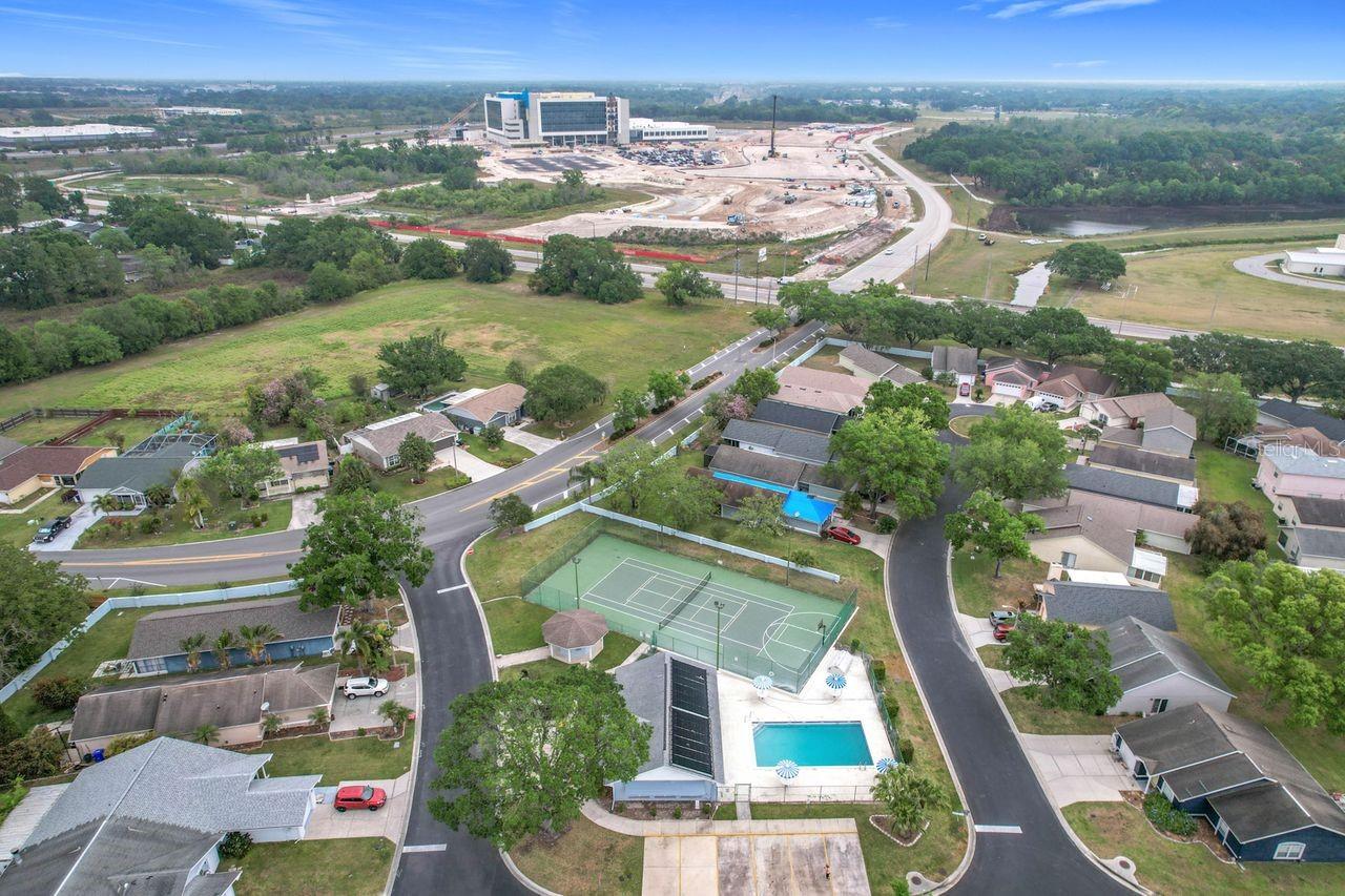One or more photo(s) has been virtually staged. You can't beat the location of this 2 Bedroom, 2 Bathroom Single Family home located off Lakeland Highlands Road in South Lakeland. This home has a loft that could be used as a 3RD BEDROOM or additional living space, vaulted ceilings, tile and new carpeted flooring, quartz countertops, updated bathrooms, a built in desk with shiplap wall, a single car garage with cabinetry, lawn sprinkler system and a BRAND NEW ROOF installed December 2025. Just off the Polk Parkway, across from the soon-to-be opened Orlando Health Hospital complex. You won't find a lower monthly HOA anywhere ( $111.83) and it includes gated POOL with clubhouse, courts for tennis, pickleball or basketball, pond with a private fishing dock AND BASIC LAWN CARE!! Conveniently close to shopping, dining, and traveling throughout Lakeland is a breeze with easy access to the Parkway and I-4. Excellent school districts.