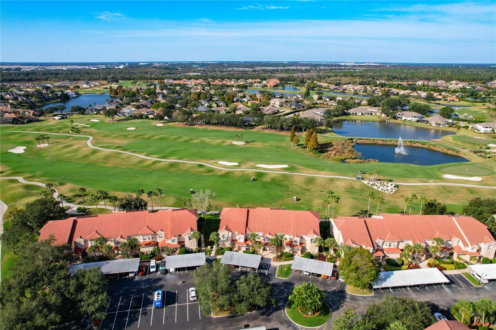 This absolutely stunning, maintenance-free end-unit condo in the gated Enclave at Grasslands has been well maintained and offers breathtaking golf course views. Featuring 3 bedrooms, 2 bathrooms, and under 1,600 square feet of beautifully updated living space, this home showcases hardwood stairs and premium hardwood flooring throughout, with tile in the kitchen, bathrooms, entry foyer, and lanai. The kitchen is equipped with brand-new Whirlpool appliances and granite countertops, which extend into both bathrooms along with upgraded cabinetry. Vaulted cathedral ceilings enhance the living room, dining area, and primary bedroom, while plantation shutters adorn every window. The spacious primary suite includes a walk-in shower and separate his-and-hers walk-in closets. As an end unit, the home offers additional windows for natural light and a screened lanai overlooking the golf course. Additional features include a Maytag washer and dryer (2023), inside utility room, tile roof and exterior maintenance covered by the HOA, and free Spectrum cable included in the HOA fee. Ideally located near downtown Lakeland, Lakeside Village, Oakbridge shopping, Publix, Target, and with quick access to the Polk Parkway.
