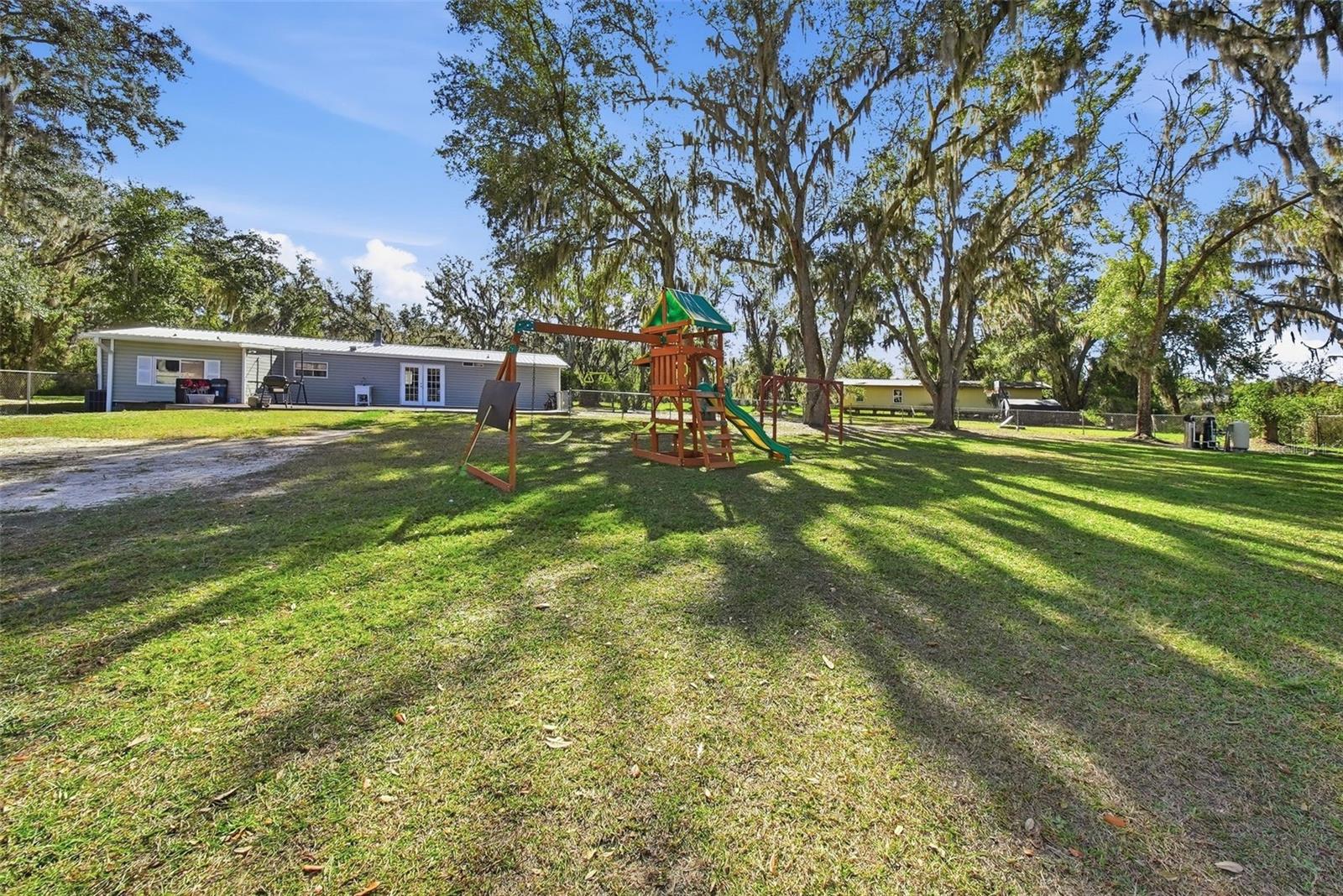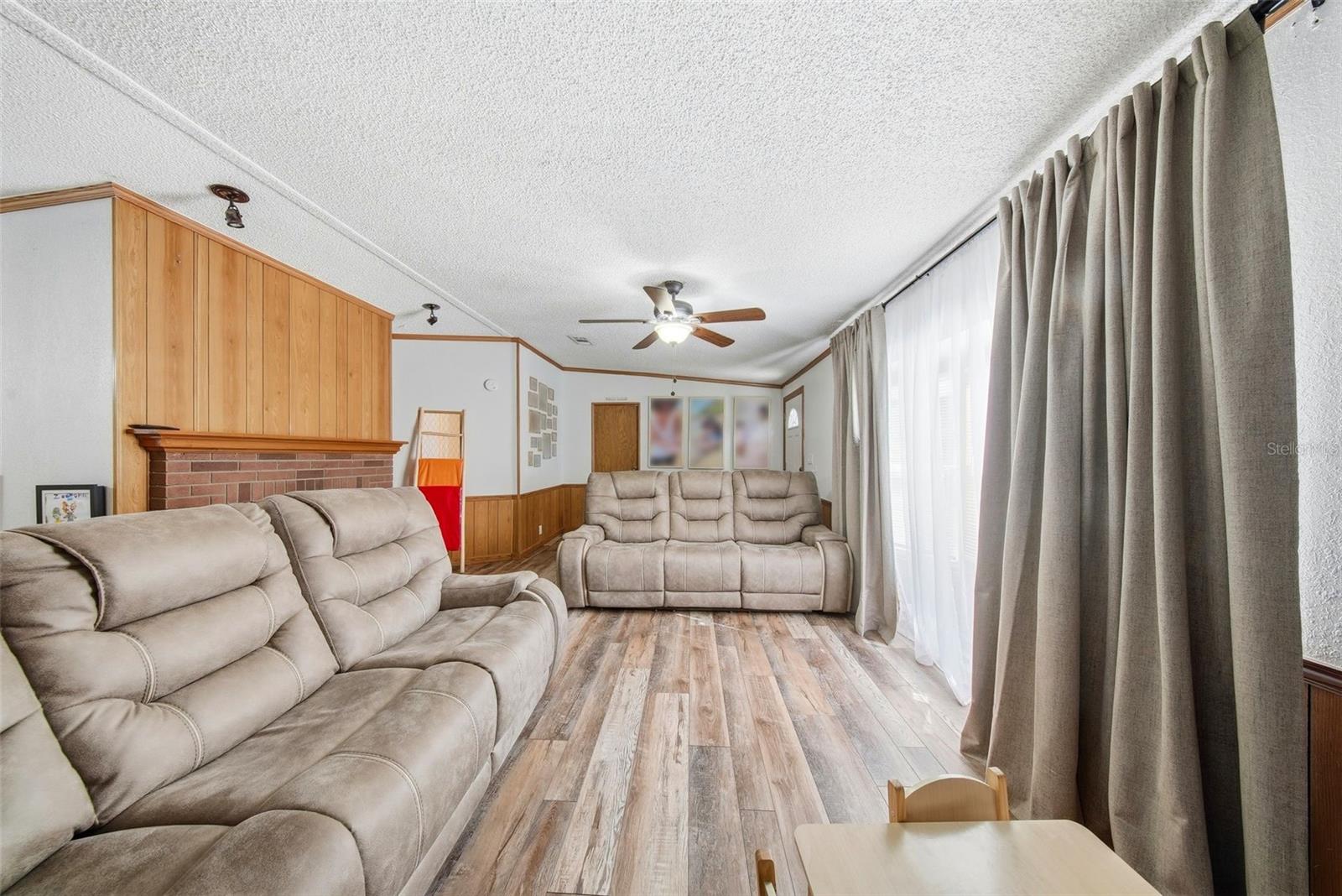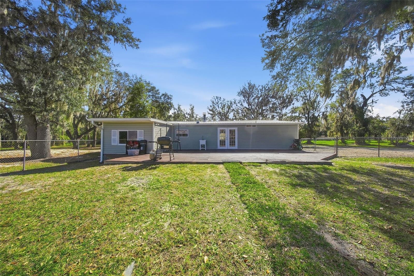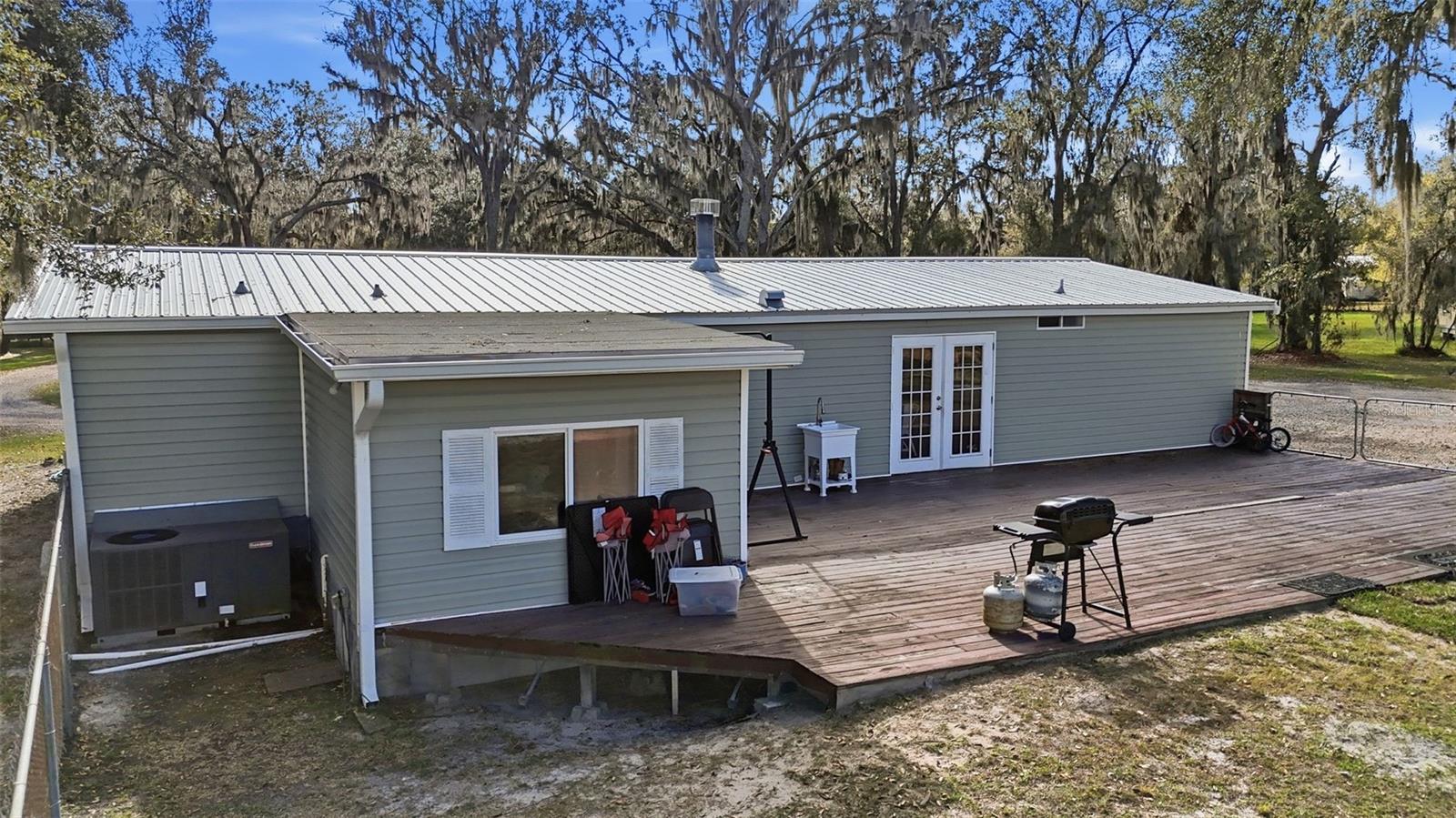 Welcome to this beautifully upgraded and move-in-ready 4-bedroom, 2-bath home situated on a generous 1.7-acre lot in Lakeland. This spacious property offers the perfect balance of modern interior updates, critical system improvements, and private outdoor living with no HOA. From the inviting front porch to the wide-open yard framed by mature oak trees, this home delivers charm, comfort, and peace of mind. Inside, enjoy durable wood-look flooring throughout, two spacious living areas, and a central brick fireplace that adds warmth and character. The open dining area connects to a large wooden deck through French doors—ideal for entertaining or relaxing in the Florida breeze. The kitchen is fully updated with granite countertops, stainless steel appliances, and white cabinetry installed just one year ago. A separate laundry room provides added convenience with upper storage and direct access from the kitchen. The split floor plan offers a private primary suite with generous space, dual closets, and a full en-suite bath featuring a soaking tub, separate walk-in shower, and double vanity. Three additional bedrooms are thoughtfully designed with accent walls, natural light, and flexible space for family, guests, or a home office. Major upgrades include a new metal roof with gutters and downspouts (1 year old), a new septic tank and drain field with lift station (2 years old), and a newly installed water pump with full filtration system (2 years old). The crawl space beneath the home was professionally inspected, cleaned, sealed, insulated, and fitted with three pumps to prevent moisture—completed just 2 years ago. A newly purchased shed in the backyard provides additional storage, and all major systems come with warranties for added peace of mind. This home is a rare opportunity to own a move-in-ready property with extensive improvements, spacious indoor and outdoor areas, and room to grow—schedule your private showing today.