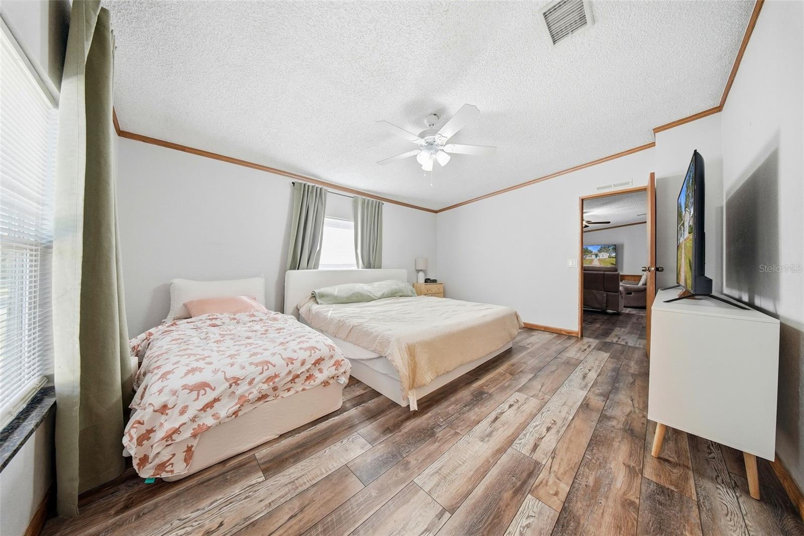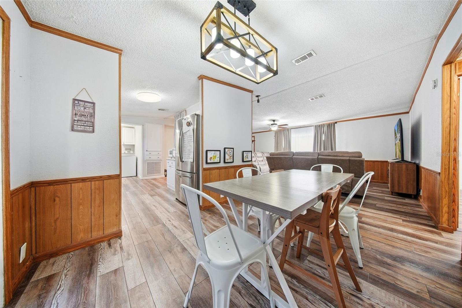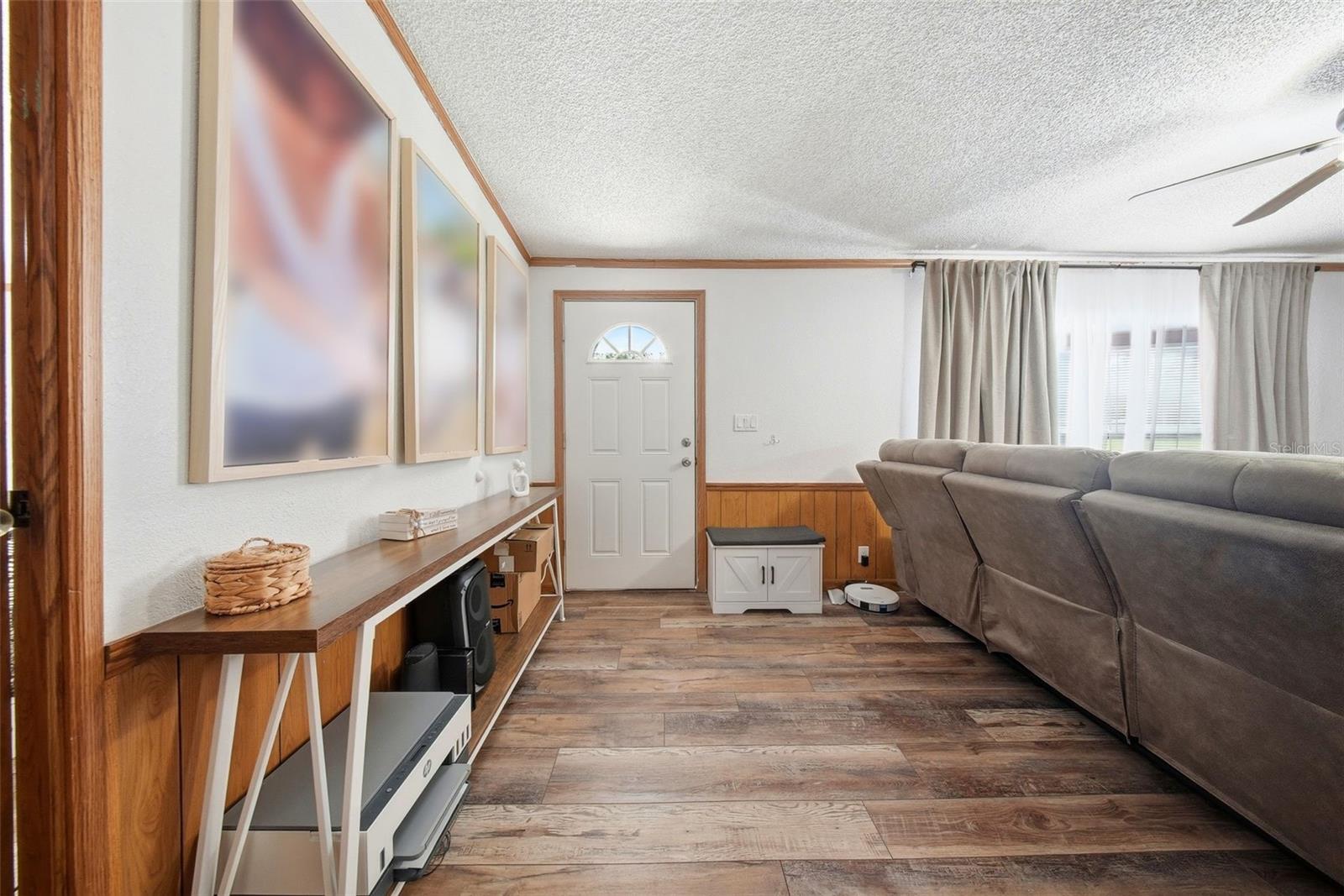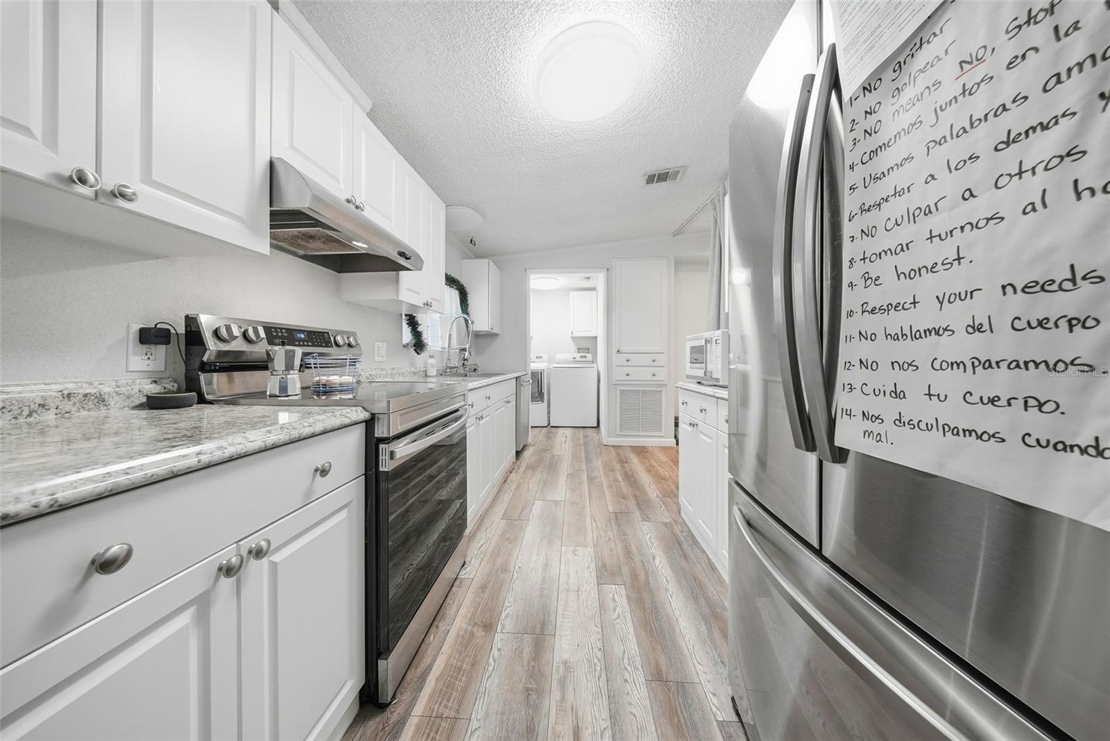 Welcome to this beautifully upgraded and move-in-ready 4-bedroom, 2-bath home situated on a generous 1.7-acre lot in Lakeland. This spacious property offers the perfect balance of modern interior updates, critical system improvements, and private outdoor living with no HOA. From the inviting front porch to the wide-open yard framed by mature oak trees, this home delivers charm, comfort, and peace of mind. Inside, enjoy durable wood-look flooring throughout, two spacious living areas, and a central brick fireplace that adds warmth and character. The open dining area connects to a large wooden deck through French doors—ideal for entertaining or relaxing in the Florida breeze. The kitchen is fully updated with granite countertops, stainless steel appliances, and white cabinetry installed just one year ago. A separate laundry room provides added convenience with upper storage and direct access from the kitchen. The split floor plan offers a private primary suite with generous space, dual closets, and a full en-suite bath featuring a soaking tub, separate walk-in shower, and double vanity. Three additional bedrooms are thoughtfully designed with accent walls, natural light, and flexible space for family, guests, or a home office. Major upgrades include a new metal roof with gutters and downspouts (1 year old), a new septic tank and drain field with lift station (2 years old), and a newly installed water pump with full filtration system (2 years old). The crawl space beneath the home was professionally inspected, cleaned, sealed, insulated, and fitted with three pumps to prevent moisture—completed just 2 years ago. A newly purchased shed in the backyard provides additional storage, and all major systems come with warranties for added peace of mind. This home is a rare opportunity to own a move-in-ready property with extensive improvements, spacious indoor and outdoor areas, and room to grow—schedule your private showing today.