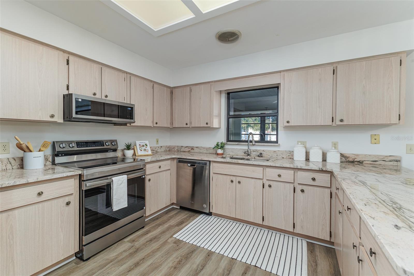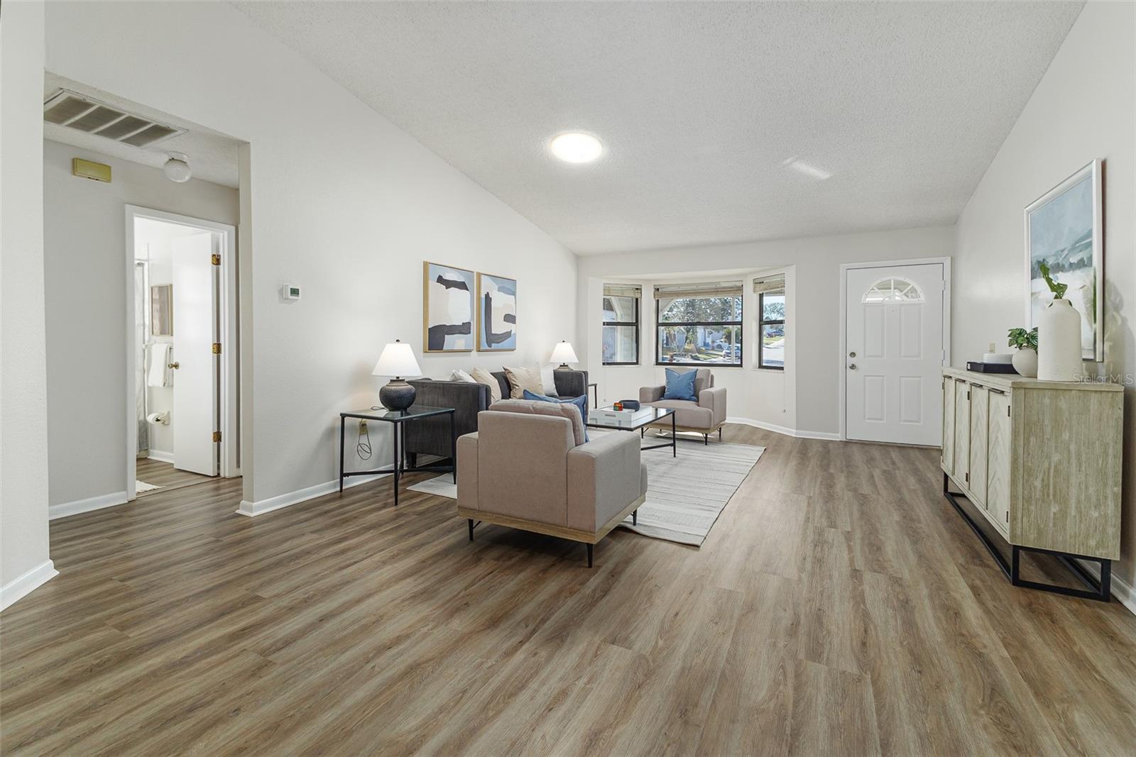 Perfect Florida Retreat in Highland Fairways! Welcome home to this beautifully updated 2-bedroom, 2-bath residence located in the highly desirable 55+ community of Highland Fairways. Move-in ready and thoughtfully refreshed, this home offers an open floor plan with cathedral ceilings that create a bright, spacious feel throughout. You’ll love the brand-new luxury vinyl plank flooring, professional fresh interior paint, new light fixtures and a stylishly updated kitchen featuring stunning granite countertops, a new stove, and a built-in microwave, along with a cozy breakfast nook. The spacious primary suite includes an ensuite bath with dual (split) vanities, a walk-in shower, and a walk-in closet. Major systems have already been taken care of—including the roof, and A/C, —offering peace of mind for years to come. Maintenance is included, covering lawn care, high-speed internet, and cable TV, all with low HOA dues. Enjoy the added privacy of no rear neighbors, plus a convenient location close to shopping, dining, and easy access to I-4. Come see for yourself and discover whether this inviting home—and active lifestyle community—is the perfect fit for you!