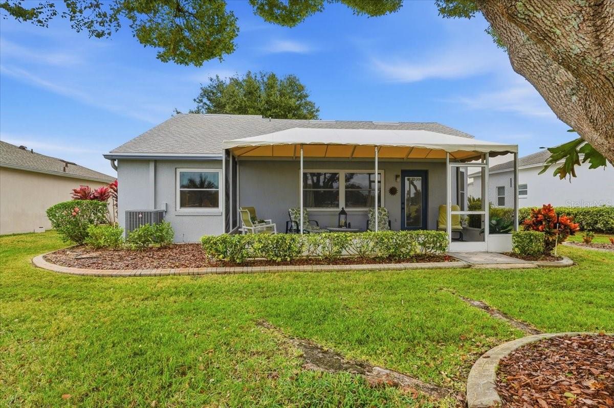 Welcome Home! This stunning 2 bedroom, 2 bath residence located in Sandpiper Golf and Country Club. This home offers the rare combination of both golf course and water views. This beautifully updated home features a spacious eat in kitchen with granite countertops, custom wood cabinetry, island, breakfast bar, and built in pantry, perfect for everyday living and entertaining. A large inside laundry room provides exceptional storage and convenience. The inviting living room flows seamlessly into the dining area and is filled with natural light while showcasing picturesque golf course views. A cozy den offers a comfortable space for watching TV, reading, or simply relaxing. The expansive primary suite features serene water views, a large walk in closet, and a remodeled private bath with double sinks and a walk in shower. The desirable split floor plan includes a generously sized second bedroom and guest bath, creating privacy for visitors. Step out onto the screened lanai and enjoy peaceful mornings or evenings while taking in the breathtaking golf course and water views. This light filled home boasts gleaming wood floors throughout, beautifully maintained landscaping, and a pavered driveway with illumination for added curb appeal. Tastefully updated and professionally interior decorated, the home is truly move in ready with all furniture included for effortless Florida living. Enjoy a low HOA that includes cable, internet, lawn care, and all amenities. Sandpiper Golf and Country Club is an active 55+ community featuring community pools, tennis courts, pickleball, fitness center, billiards room, clubhouse, and an on site restaurant with pro shop. Ideally located near I4, medical facilities, shopping, and dining, this home offers both comfort and convenience in a vibrant golf course community.