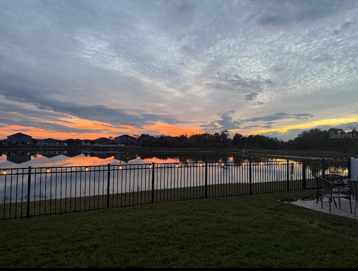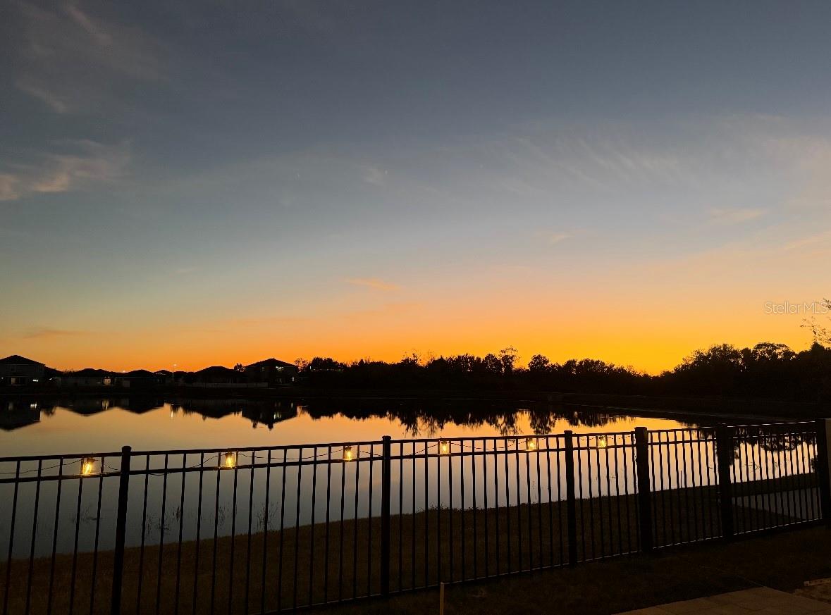 Tucked away on a quiet cul-de-sac for ultimate privacy and located on a prime lot in the Towne Park Estates community, this stunning 4- bedroom waterfront home is packed with upgrades that are sure to leave you feeling captivated. Imagine living where you are able to enjoy both the sunrise in the mornings and the sunset in the evenings that take place in the backyard, glistening above the water. The location and the views are unbeatable- peaceful, serene, and relaxing. With its beautiful landscaping and desirable curb appeal, you will be glad to call this place home as soon as you pull into the driveway. Immediately upon entry, you are greeted by a bright and inviting space with a long hallway, perfect for adding your own personal touch of decor. You'll also notice the freshly painted walls in a luxurious Emerald Satin finish, complemented by newly painted doors and matching modern hardware throughout. The open floorplan layout, natural lighting, and high ceilings with a vaulted ceiling provide a space where you will always feel comfortable and ensures your guests always feel welcomed. The heart of the home is the kitchen, which features granite countertops, cabinetry enhanced with trim and crown molding, a large kitchen island, decorative backsplash, and soft-close cabinets and drawers. You will also fall in love with the huge custom walk-in pantry. If you like organization and cooking, this pantry is a dream, and this area is perfect for every cooking enthusiast. You'll also appreciate the elegant dining room. The dining room makes a statement with custom wainscoting, which adds timeless character and charm. Enjoy meals here with friends, family, and guests while also appreciating the scenic views from the large window. The primary bedroom is very spacious and features a tray ceiling with a ceiling fan and also another wonderful opportunity to enjoy the water views from the bedroom windows. Step inside the primary bathroom to find a double sink vanity, private water closet, a walk-in closet and an additional closet for extra storage space. Three additional bedrooms feature already installed ceiling fans and built-in closets. One of these bedrooms has been thoughtfully designed by offering decorative chair rail and a custom Queen Murphy Bed with matching trim, providing both style and flexibility for hosting visitors or creating a multifunctional space. Step outside through the sliding glass doors to enjoy Florida living at its finest in the brand-new screened in lanai, complete with 2 oversized 60-inch fans, keeping you cool while you sit back and enjoy the views. The backyard is completely fenced and also offers backyard pavers and a firepit to enjoy with your family and guests while taking in peaceful waterfront views. There is also a gate to allow for easy access to the water- a convenient feature to allow you to go fishing right in your own backyard. Some other great features of this home include: blinds throughout, in-wall pest system, and irrigation system. The community is also incredible! Towne Park Estates Phase 2 features sidewalks for taking strolls, TWO community pools, playgrounds, benches along the lakes/ponds, a clubhouse, and even… a DOG park! Towne Park Estates is a highly desirable community in a great location! With its prime location, upscale finishes, and inviting indoor-outdoor spaces, this house offers the perfect blend of comfort, privacy, and scenic beauty- all for making this house feel like a home.