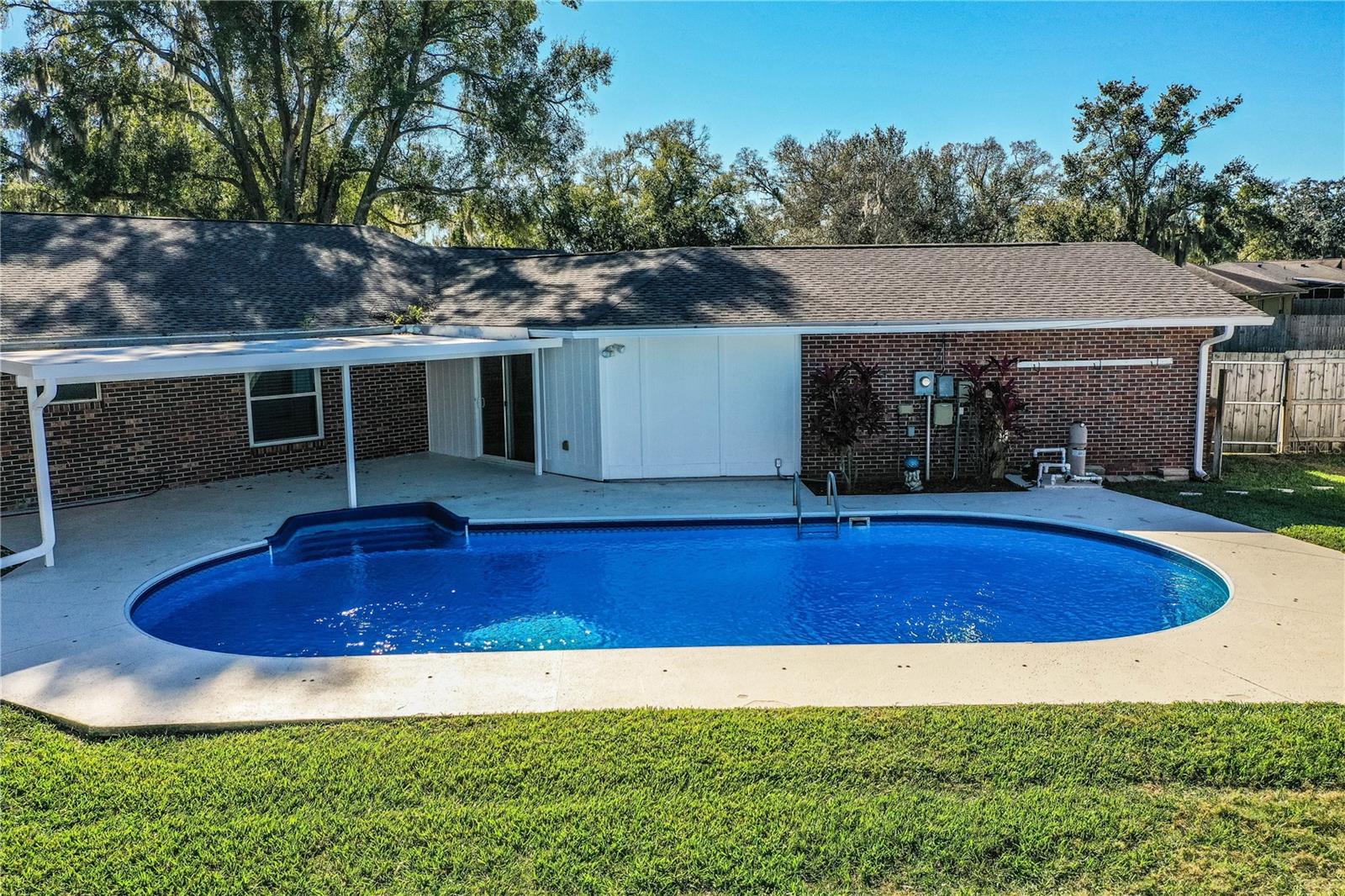 Welcome to this well-maintained 3-bedroom, 2-bath POOL home with an additional office, ideally situated on a desirable corner lot in one of South Lakeland’s most sought-after areas. NO HOA! Built in 1976, this home offers standout curb appeal and plenty of space for parking featuring a covered front porch with classic columns, a circular driveway, and a second traditional driveway leading to the garage. The fully fenced backyard is designed for Florida living, complete with an in-ground pool and a covered poolside lanai. Perfect for relaxing or entertaining year-round! Pool equipped with removable child safety fence. Inside, the home offers a functional layout with formal dining, spacious living areas, an inside laundry room, and an office ideal for remote work. The kitchen features granite countertops, a large center island, and a layout that flows seamlessly into the living room while being conveniently located adjacent to the formal dining room: ideal for both everyday living and entertaining. The primary bedroom offers a spacious walk-in closet and jacuzzi tub! Tile flooring runs through most of the home, with newer carpet in the bedrooms, and the interior was freshly repainted in 2025. Major updates include a new roof in 2023, brand new insulation, pool pump replaced in 2025, and newly updated irrigation. Conveniently located near top-rated schools, shopping, dining, and everyday amenities, this home offers an excellent combination of location, updates, and Florida lifestyle appeal.