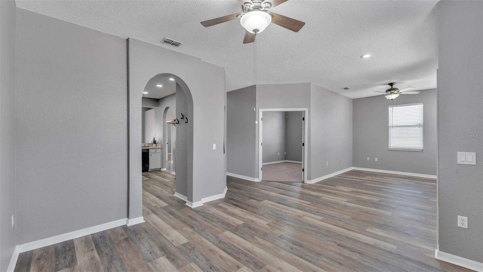 Welcome to this beautifully updated 4 bedroom, 2 bath South Lakeland home with over 2000 square feet of living area that perfectly blends comfort, style, and functionality. Recent improvements include fresh paint and brand new vinyl plank flooring, giving the home a modern, move-in ready feel. The desirable triple split-bedroom layout provides privacy for the bedrooms while maintaining an open, inviting flow ideal for daily living or entertaining. Soaring ceilings and a spacious living area lead into an open and well-appointed kitchen that is the heart of the home. The expansive kitchen features ample counter space, newer upgraded stainless appliances, new lighting, closet pantry, and bar seating. The primary suite is a true retreat with dual walk-in closets, separate vanities, and a large, luxurious shower. The 4th bedroom is just off the front living space with double doors. This flexible space could also be used as a home office, home gym, playroom, craft room, or man cave. Step outside to a screened-in patio with attractive pavers and an extended paver area perfect for a fire pit, grilling, outdoor dining, and enjoying the Florida sunshine. The extended fully fenced backyard offers plenty of room to entertain, play, or add a pool someday. You will appreciate having no direct rear neighbor. Recent updates and upgrades within the last few years include new paint, new flooring, extended paver patio, reverse osmosis water filtration system, fresh interior and exterior paint, new toilets, upgraded appliances, smart thermostats, privacy fence, roof replacement, and much more. With thoughtful upgrades, a fantastic price, and move-in ready condition, this home combines modern convenience with style and peace of mind—schedule your private showing today.