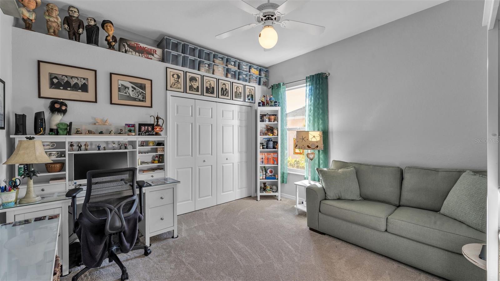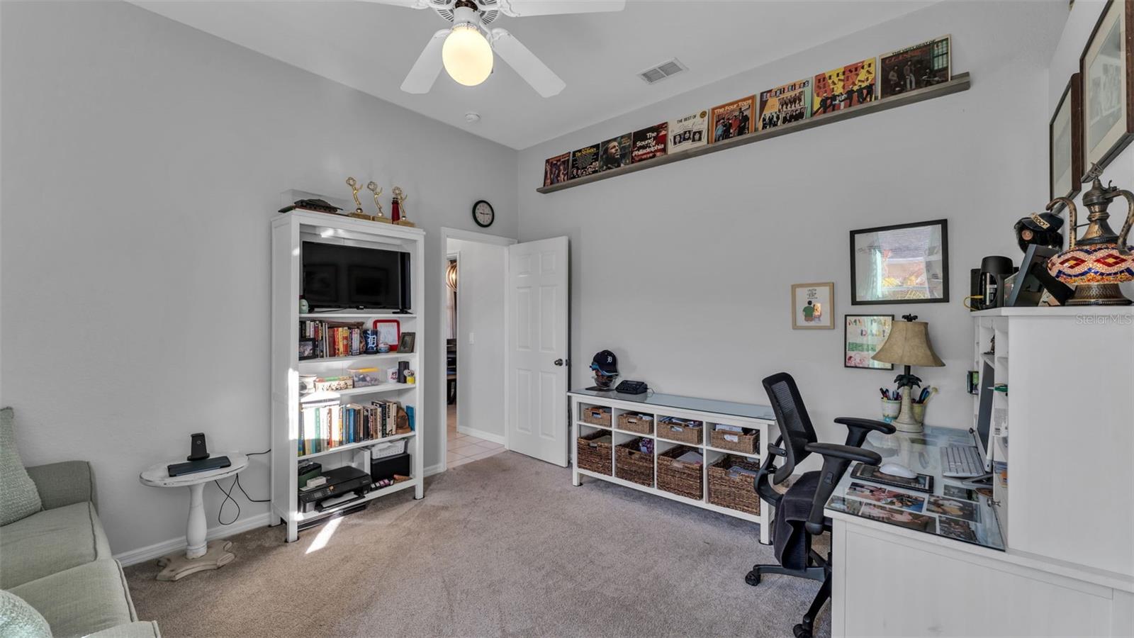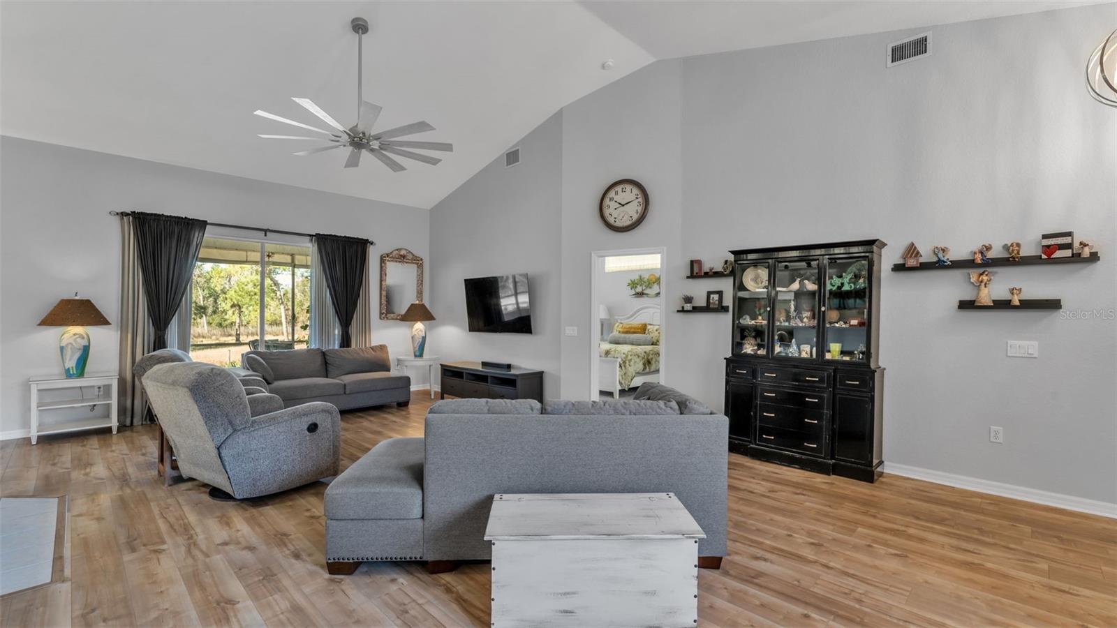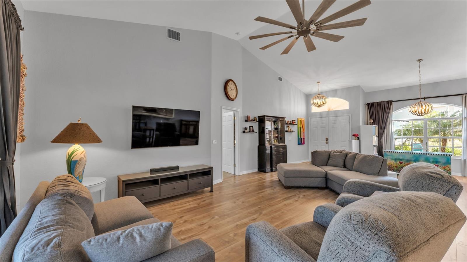Spend your days under swaying palm trees as you chip, putt and drive along the rolling greens of Huntington Hills Golf Course-a world class, 18-hole championship course with renovated TiffEagle greens and new bunkers. Sharpen your skills on a fully lighted driving range, pitching and chipping area and large putting green. When you aren't golfing, cast a line along the banks of Lake Lester which features a boat ramp and picnic area. This wonderful community also offers a cozy and welcoming clubhouse, on-site restaurant, Olympic style swimming pool, fitness center plus tennis and pickleball courts. The professionally landscaped yard sets a tone to enjoy Western sunsets in your private retreat nestled against a natural preserve. Once inside this gated community, be impressed by this truly move-in ready home. You will love the open concept and the recent touches that have been added. In 2022-New roof, AC, and exterior paint. In 2023-New carpet in all bedrooms and new LVP flooring in living and dining room. In 2024-professinal landscaping, new stainless appliances, and 72" ceiling fan added. The entire house has new lighting fixtures and fresh paint throughout. For those warm Florida days, tinker in your air-conditioned garage featuring resurfaced flooring and a dedicated golf cart garage door. In 2024 professional landscaping was added as well as new stainless kitchen appliances. The kitchen and bathroom cabinets were refinished and gorgeous Marble counter tops added. Also available for consideration is a 2023 golfcart with lithium batteries and Bluetooth radio, a riding lawn mower and some furnishings. Come experience the true Florida lifestyle in this beautifully maintained, competitively priced home!
