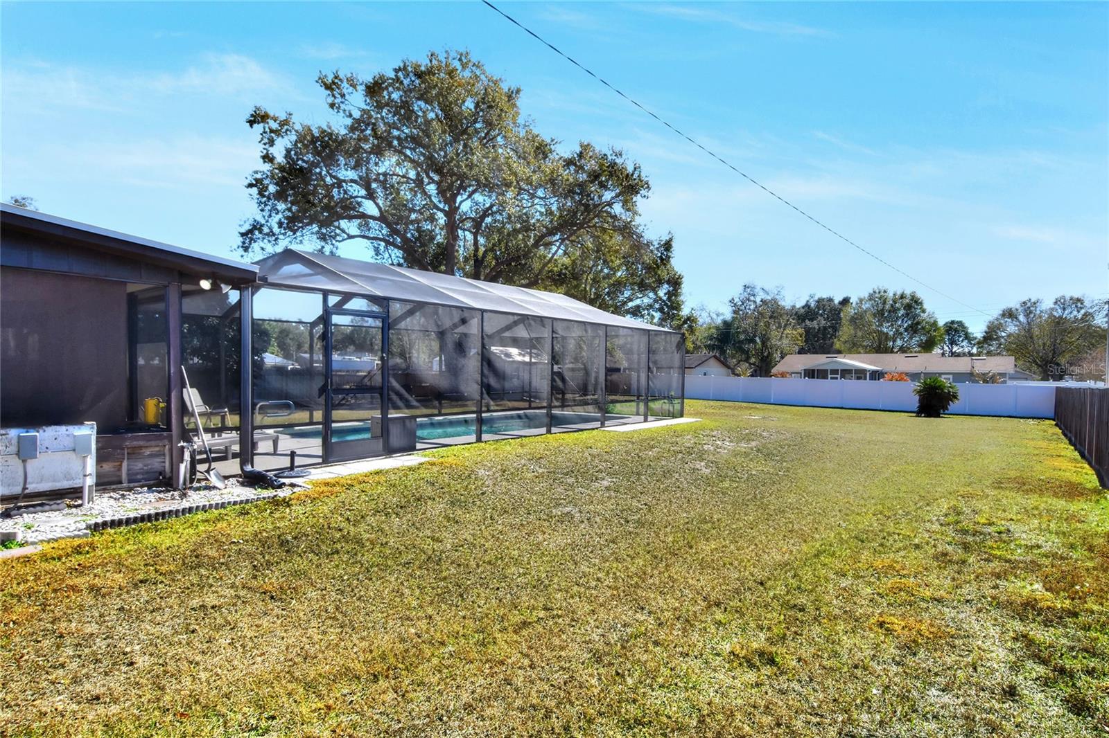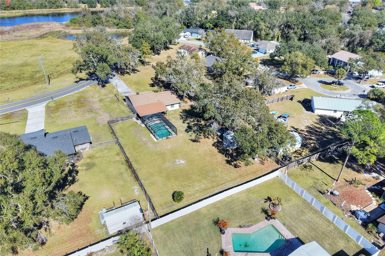 POOL HOME | MOVE-IN READY | ROOF 2022 | NO HOA | NO CDD Welcome home to the highly desirable and established Creekbend community of South Lakeland. This refreshed and well-maintained 3-bedroom, 2-bathroom, 2-car garage home sits on just under an acre in a non-deed-restricted community, offering ample space to park your boat, RV, or other recreational vehicles. The property features manicured landscaping, and the backyard includes a fruit tree, adding to the outdoor charm. Inside, the home offers a bright, open feel with a stone wood-burning fireplace and sliding glass doors that provide access to the outdoor living area. The kitchen features updated cabinetry, ample counter space, stainless steel appliances, and an eat-in breakfast area. The family room opens to a large, fully screened-in lanai overlooking the in-ground heated swimming pool and paver patio, creating an ideal space for everyday living and entertaining. The primary bedroom suite is privately located at the rear of the home and includes a walk-in closet and partially updated ensuite bathroom. Two secondary bedrooms are located toward the front of the home, along with a second full bathroom that has been partially updated. Additional highlights include a roof replaced in 2022 and a convenient location with close proximity to Polk Parkway, I-4, shopping, dining, entertainment, schools, colleges, hospitals, and Lakeland’s airport. Schedule your private showing today this South Lakeland pool home offers space, flexibility, and location.