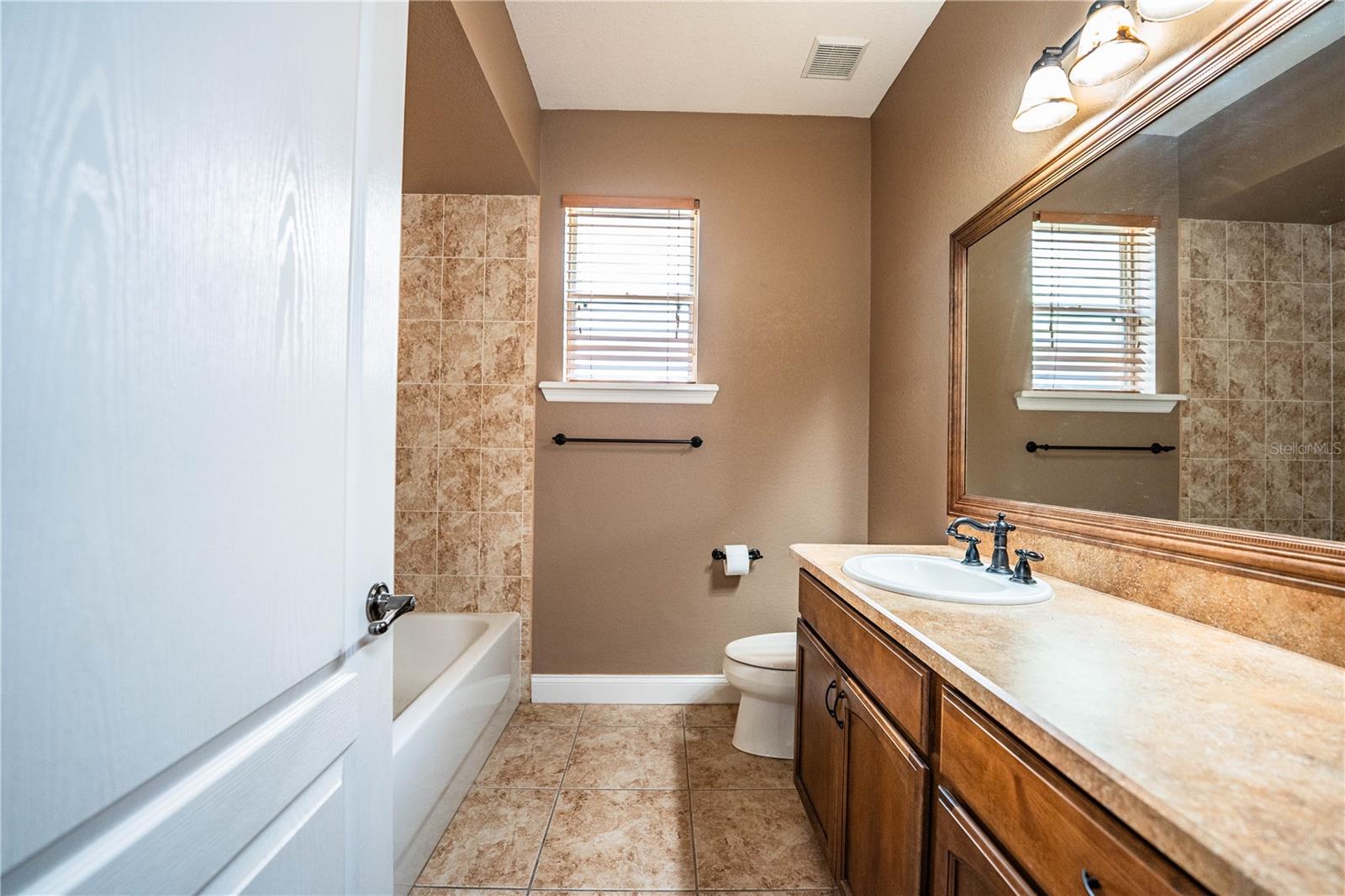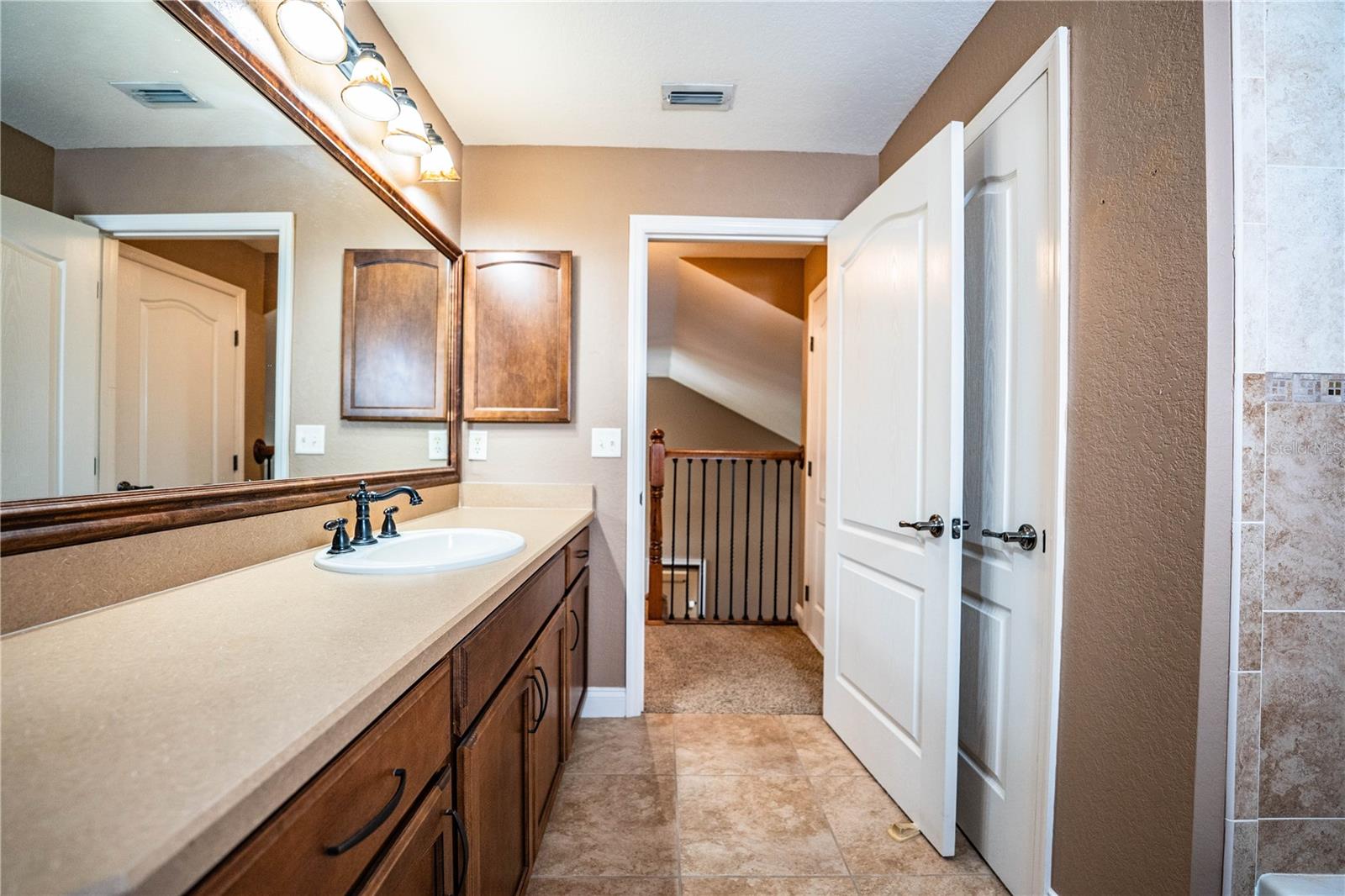 Please discover this meticulously maintained pool home, designed to instill confidence in your investment. This 4-bedroom 3-bath spilt plan home includes an upstairs loft and a 4th bedroom. The great room features vaulted ceilings and a stone fireplace. The spacious kitchen boasts 42-inch Kraft Maid wood cabinets, granite countertops, an island with a beverage refrigerator and additional storage. You will love the spacious closet pantry! The formal dining room has French doors and is currently being used as an office, but can be easily converted back to a formal dining room. From the kitchen area and the primary bedroom, French doors open out to the 30' x 29' pool area. which is caged and has pavers. The well-designed fiberglass pool, recently upgraded, features solar panels, a waterfall, and unique in-pool seating. There is an extra outside paver patio on the north side of the pool cage. Inside the home, there is tile in the wet areas, wood floors, and the two downstairs guest bedrooms and upstairs loft have newer carpeting (2021-2022). Crown molding adds to the beauty of this lovely home. The surround sound music system with individual room controls is a nice feature. Double front door greet you with charm and elegance. The 24' x 7' front porch has recently been retiled and features a paver walkway in front of the home leading to the paver driveway on the south side of the home. The home is equipped with newer air conditioner units, replaced in August 2022, ensuring your comfort year-round. All of this nestled within a beautiful gated community that offers a sense of security and tranquility, appealing to your desire of peace of mind. With convenient access to I-4, this location also supports your lifestyle needs. Don't miss the opportunity to make this enchanting residence your own!