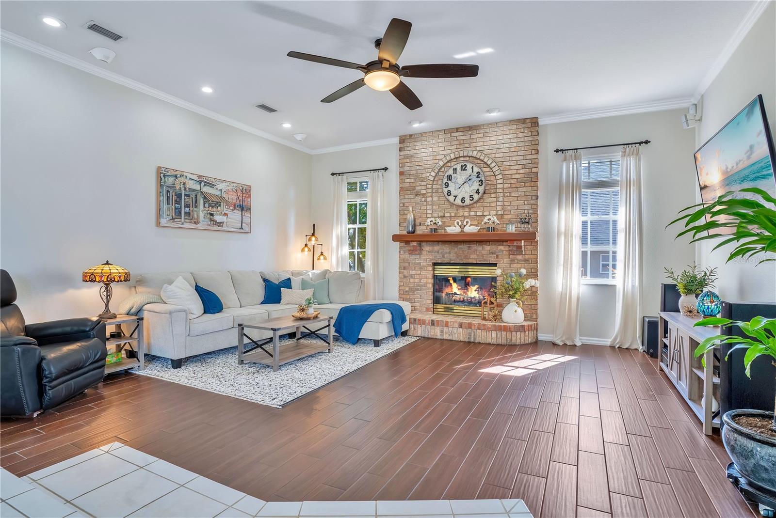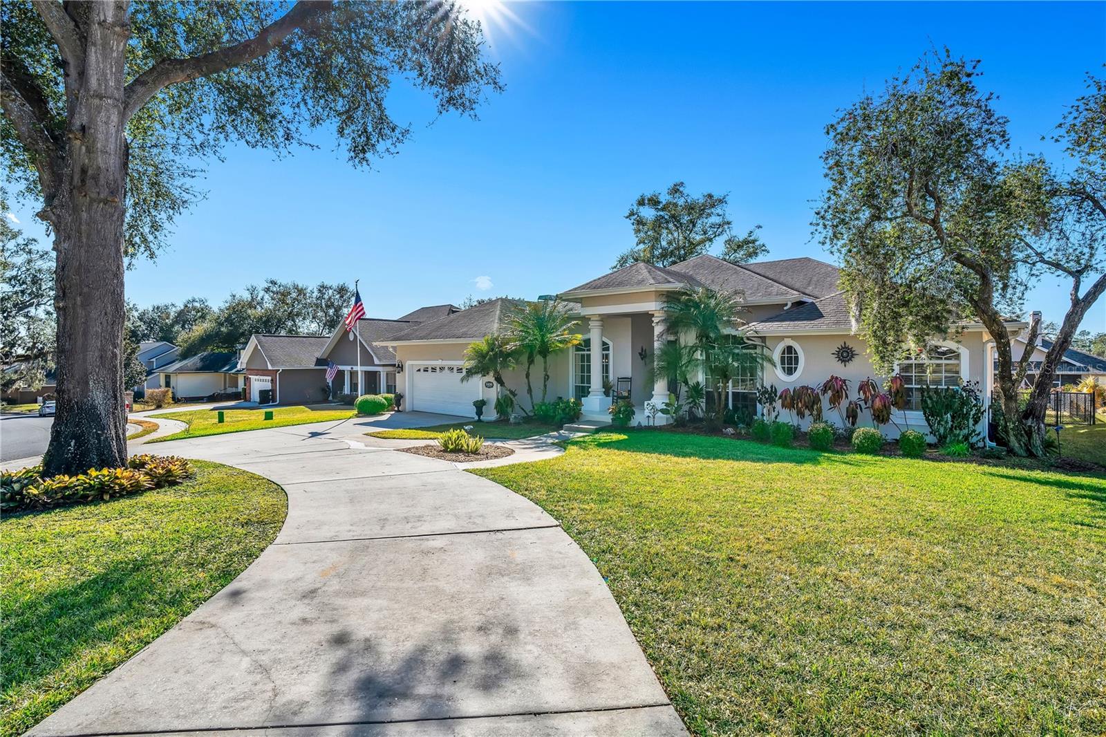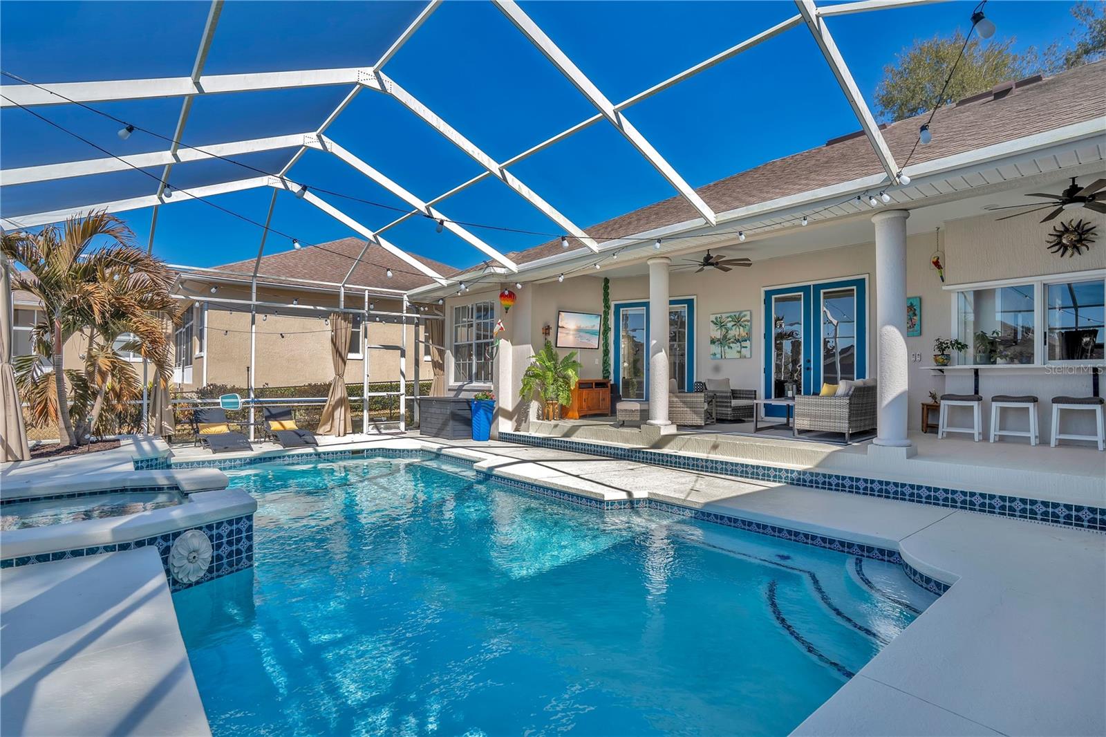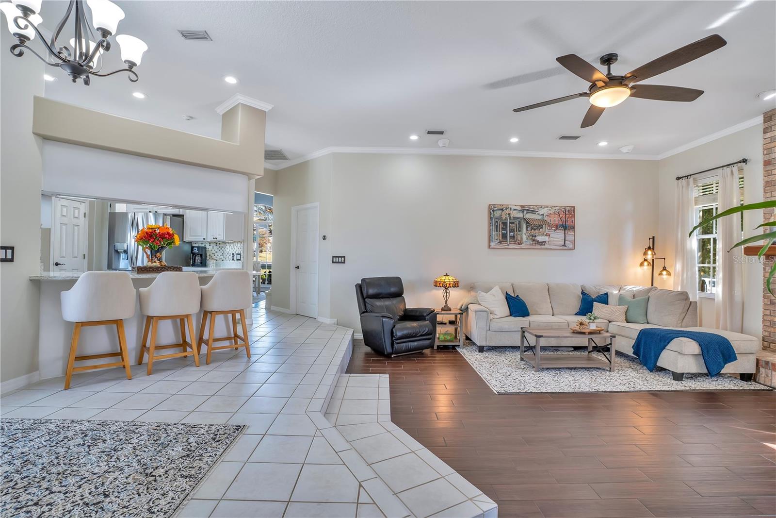 Located in one of Lakeland’s most desirable neighborhoods, Bloomfield Hills, this exceptional home reflects true pride of ownership at every turn. Surrounded by custom-built homes, mature trees, and a friendly community where every property is beautifully maintained, this residence stands out for its meticulous care and thoughtful updates. Offering 3 bedrooms, 2 baths, a dedicated office, and 2,780 square feet of living space, the split-bedroom floor plan provides both elegance and functionality. Step inside to a stunning Formal Dining Room highlighted by elegant columns, a tray ceiling, and a dramatic mirrored wall, with a Formal Living Room ready for hosting special gatherings. The spacious Family Room features a cozy gas fireplace and flows seamlessly into the dinette area, complete with built-in cabinetry and a bar refrigerator. The Primary Suite is a true retreat with a private sitting area, while the luxurious bath offers a garden tub, separate shower, dual sinks, and a dedicated vanity space. An interior utility room adds convenience with cabinetry, drying rods, and a sink. No detail has been overlooked: a 2019 roof, 2019 HVAC system (two units), new gutters and downspouts (2025), all new light fixtures and ceiling fans in 2024, a 2024 kitchen renovation with quartz countertops throughout the kitchen, baths, and lanai, tile backsplash, under-cabinet lighting plus a 2025 dishwasher. The garage features epoxy flooring and hanging storage. Outdoors, enjoy a tropical-themed screened lanai with party lights, an outdoor shower, and a heated saltwater pool and spa with waterfall (resurfaced in 2019) — perfect for entertaining. The expertly manicured lawn, lush tropical foliage, and a June 2025 Beautification Award from the community further showcase the meticulous maintenance. Convenient to shopping, schools, churches, entertainment, I-4, and just 45 minutes to Disney, this Bloomfield Hills beauty is a rare opportunity to own a truly move-in-ready home in a neighborhood known for excellence.