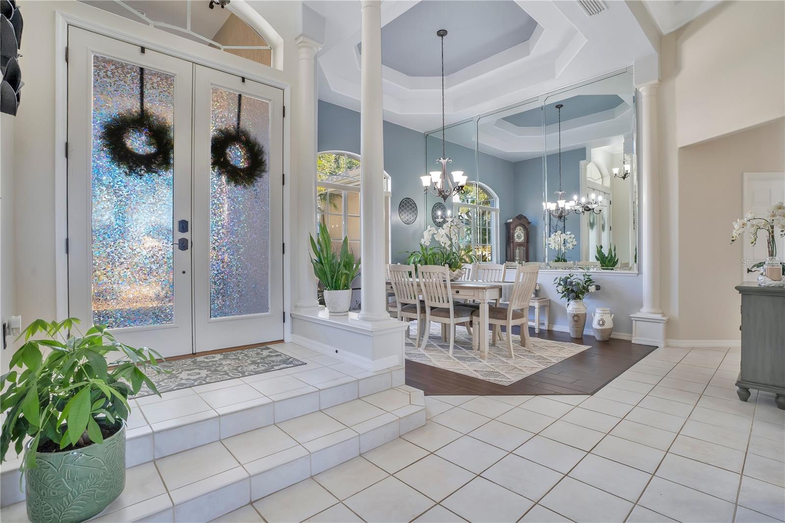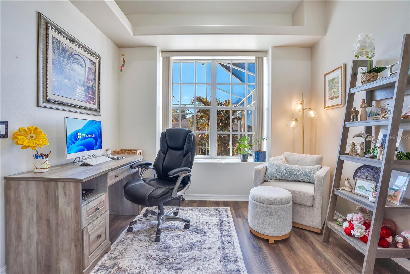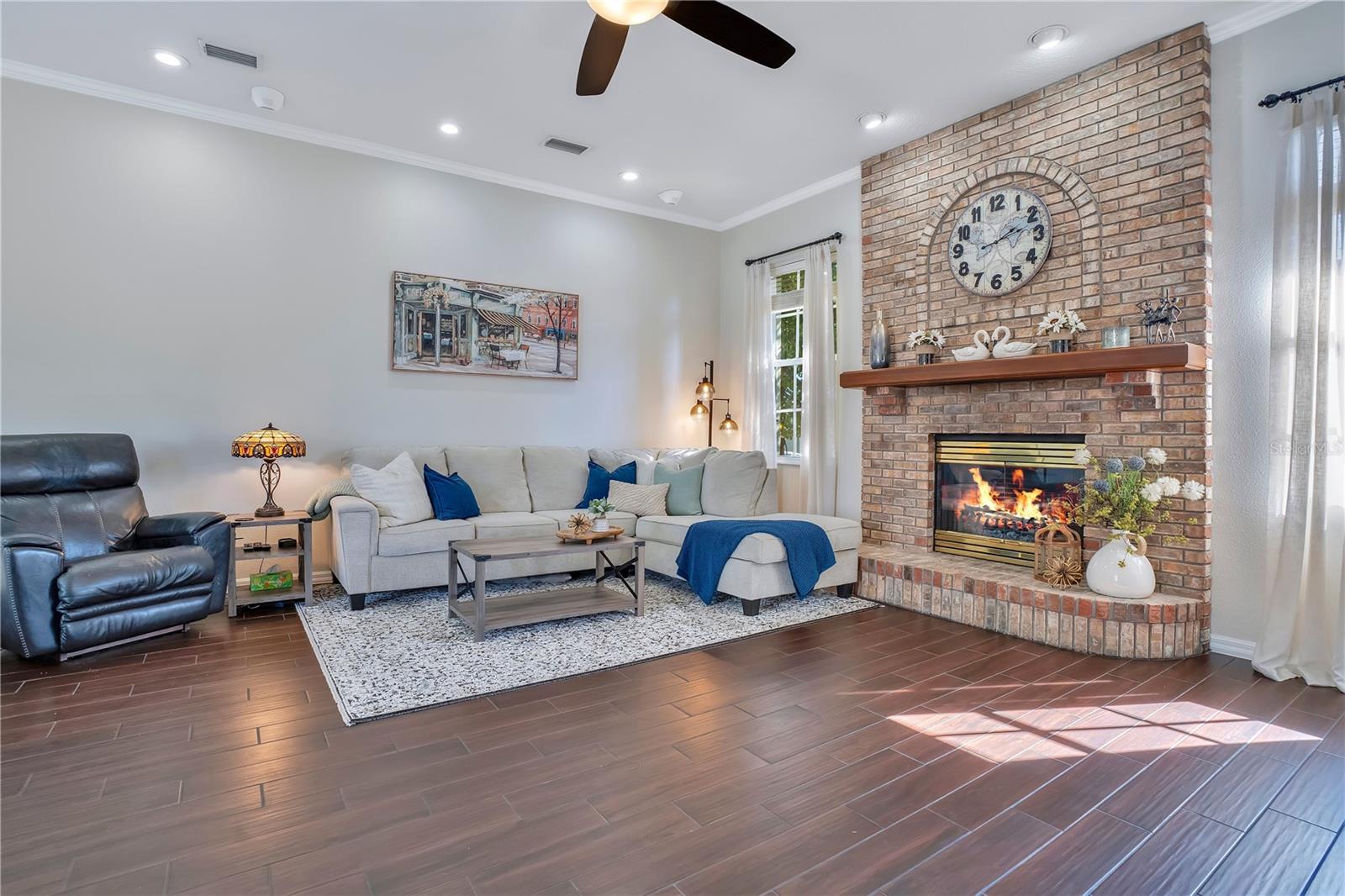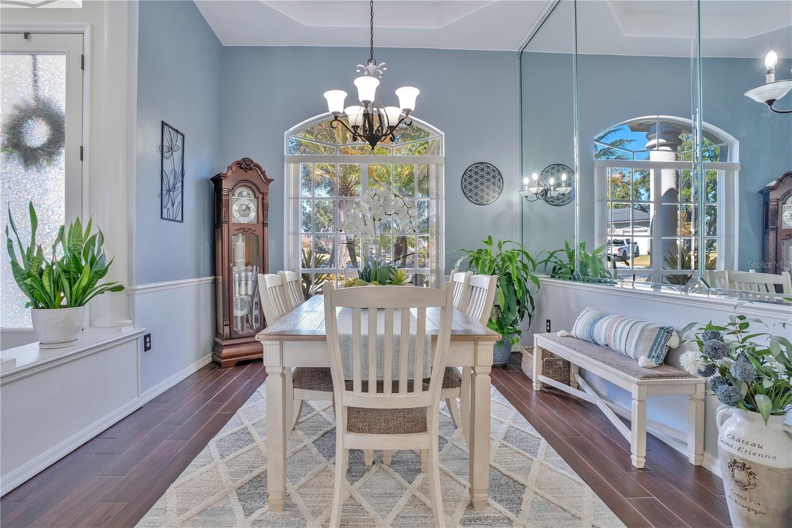 Located in one of Lakeland’s most desirable neighborhoods, Bloomfield Hills, this exceptional home reflects true pride of ownership at every turn. Surrounded by custom-built homes, mature trees, and a friendly community where every property is beautifully maintained, this residence stands out for its meticulous care and thoughtful updates. Offering 3 bedrooms, 2 baths, a dedicated office, and 2,780 square feet of living space, the split-bedroom floor plan provides both elegance and functionality. Step inside to a stunning Formal Dining Room highlighted by elegant columns, a tray ceiling, and a dramatic mirrored wall, with a Formal Living Room ready for hosting special gatherings. The spacious Family Room features a cozy gas fireplace and flows seamlessly into the dinette area, complete with built-in cabinetry and a bar refrigerator. The Primary Suite is a true retreat with a private sitting area, while the luxurious bath offers a garden tub, separate shower, dual sinks, and a dedicated vanity space. An interior utility room adds convenience with cabinetry, drying rods, and a sink. No detail has been overlooked: a 2019 roof, 2019 HVAC system (two units), new gutters and downspouts (2025), all new light fixtures and ceiling fans in 2024, a 2024 kitchen renovation with quartz countertops throughout the kitchen, baths, and lanai, tile backsplash, under-cabinet lighting plus a 2025 dishwasher. The garage features epoxy flooring and hanging storage. Outdoors, enjoy a tropical-themed screened lanai with party lights, an outdoor shower, and a heated saltwater pool and spa with waterfall (resurfaced in 2019) — perfect for entertaining. The expertly manicured lawn, lush tropical foliage, and a June 2025 Beautification Award from the community further showcase the meticulous maintenance. Convenient to shopping, schools, churches, entertainment, I-4, and just 45 minutes to Disney, this Bloomfield Hills beauty is a rare opportunity to own a truly move-in-ready home in a neighborhood known for excellence.