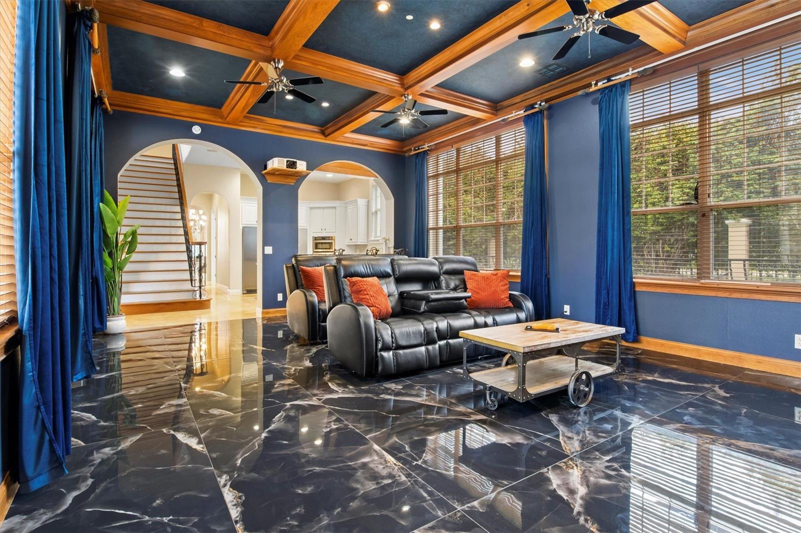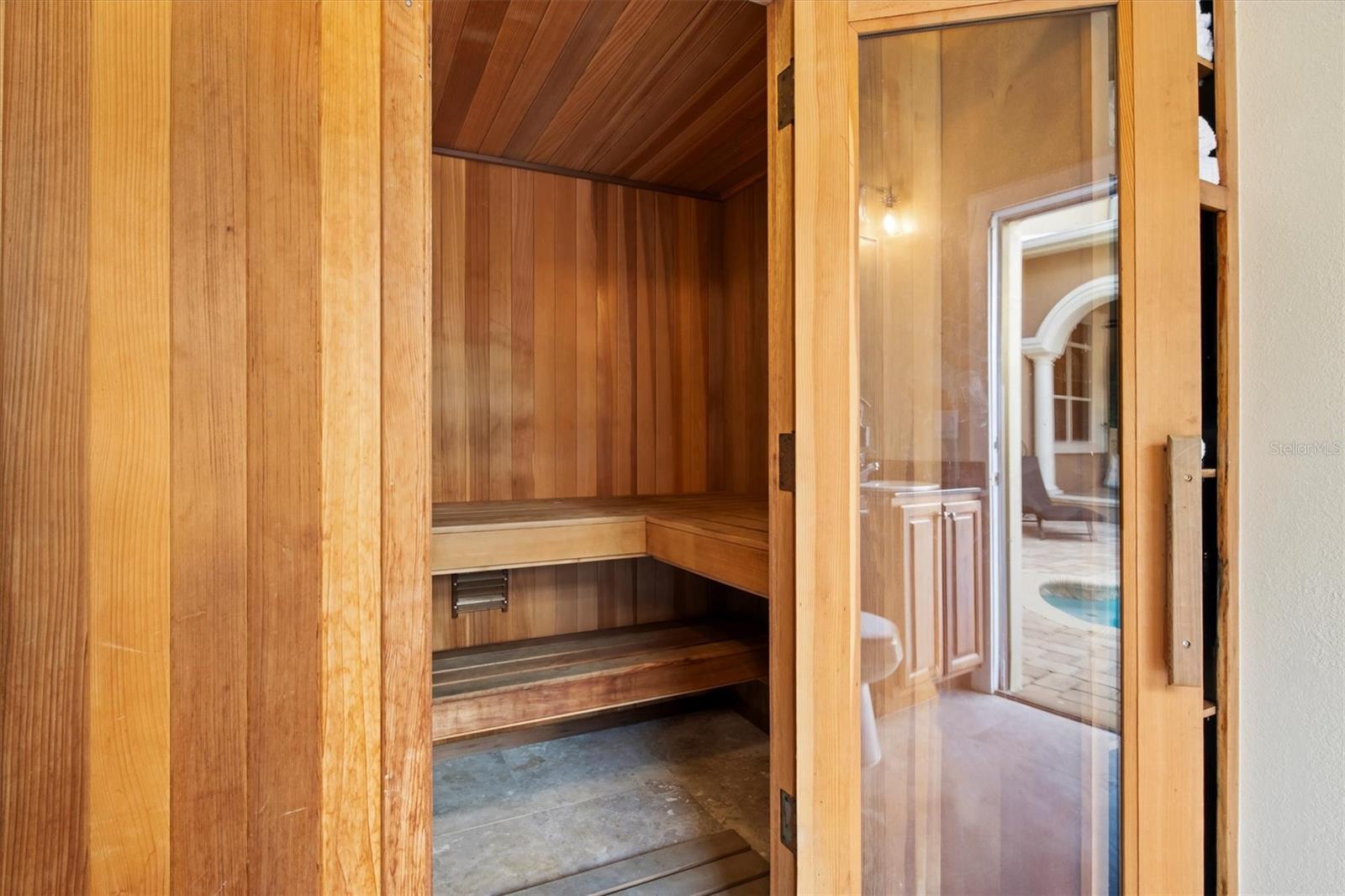 Welcome to this stunning South Lakeland luxury estate, perfectly set on a private half-acre with nearly 7,500 square feet of beautifully updated living space designed for comfort, entertaining, and upscale Florida living. This expansive two-story home offers 6 bedrooms, 7 fully updated bathrooms, formal dining, private office, gym/flex space, game room, great room, and a private theater, delivering a true luxury lifestyle with room for everyone. Arrive through the grand circular paver driveway framed by stately columns and French doors, then step inside to travertine floors, soaring 10-foot ceilings, and a cozy wood-burning fireplace. The oversized reimagined primary suite features new porcelain tile, French doors to the pool and spa, a spa-style bath with granite countertops, expanded tiled shower, jacuzzi tub, and custom walk-in closet with plush new carpet. The updated chef’s kitchen shines with granite countertops, large center island, stainless appliances, and updated cooktop, flowing seamlessly into the theater room with upgraded entertainment system and elegant porcelain tile. Upstairs offers a second family room, four spacious bedrooms with walk-in closets, and French doors leading to a private balcony. A private 1-bedroom apartment with separate entrance includes a full kitchen with new granite, living room with updated solid wood flooring, and fully renovated bath—perfect for guests or multigenerational living. Outside, enjoy your resort-style backyard with covered lanai, resurfaced saltwater pool and spa, amazing gazebo style outdoor kitchen with charcoal smoker, propane flat-top, sink and granite counters, plus a pool bath and personal sauna. Additional highlights include gated private rear entrance leading to the garage, custom metal fencing with stone pillars, extended paver parking ideal for RV or boat storage, brand-new metal roof (2024), refreshed exterior paint (2024), updated landscaping, A/C systems, water heaters, security cameras, and more. Located in an exclusive South Lakeland neighborhood with NO HOA, this exceptional property blends privacy, convenience, and high-end upgrades throughout—schedule your private tour today and experience luxury living in Lakeland, Florida at its finest.