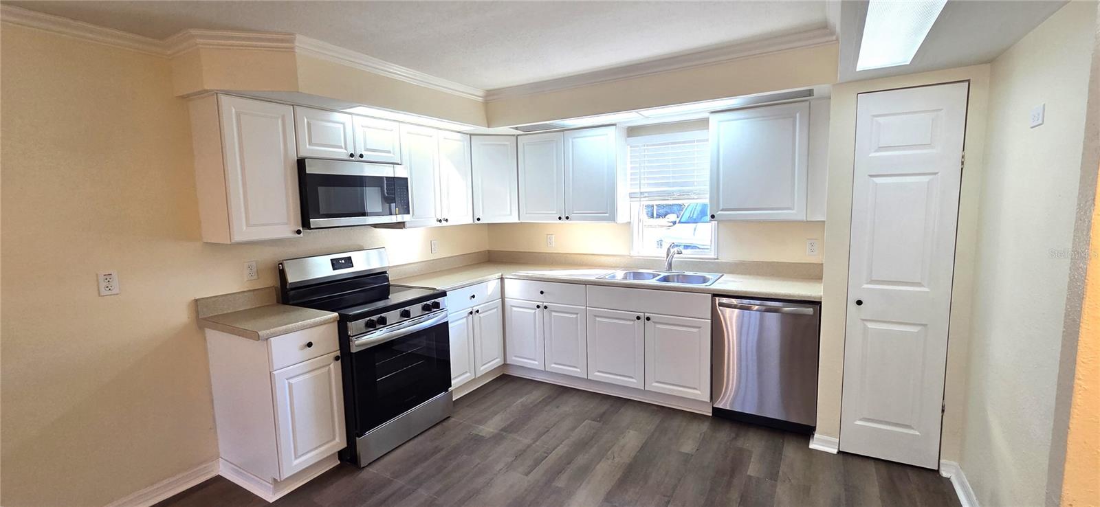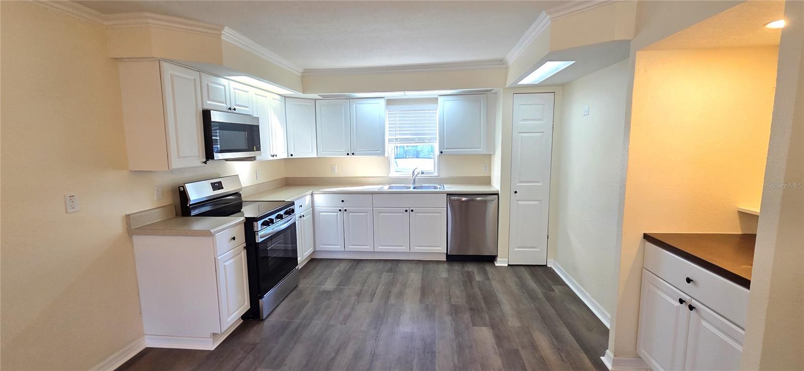 One or more photo(s) has been virtually staged. RENOVATED GEM with Major Recent Upgrades! This 3-bedroom, 1 bath home offers modern luxury and total peace of mind at an affordable price point. Don't be fooled by the square footage...this home has LOTS OF LIVING SPACE with the additional ENCLOSED SCREENED PATIO on the side and FLORIDA ROOM on the back of the house! Enjoy worry-free living with a NEW ROOF INSTALLED IN 2022, a NEW HOT WATER HEATER (2022), and an AC system that has been routinely maintained for peak efficiency since its 2015 installation. Step inside to find a light-filled interior featuring BRAND-NEW LUXURY PLANK FLOORING, CROWN MOLDING in the Living Room and Kitchen, NEW LIGHT FIXTURES and CEILING FANS, and FRESH PAINT inside and out. The refreshed eat-in kitchen is a chef’s delight, boasting NEW STAINLESS STEEL APPLIANCES and a dedicated COFFEE BAR. Relax in the FULLY RENOVATED, ALL NEW BATHROOM or retreat to the spacious, SCREENED BACK PORCH—perfect for entertaining. Car enthusiasts will love the unique 17x23 SCREENED CARPORT with a sliding screen door, plus a large STORAGE SHED in the FENCED backyard. With all-new fixtures and a turnkey finish, this is the perfect maintenance-free retreat! All dimensions are approximate and should be independently verifed by interested parties.