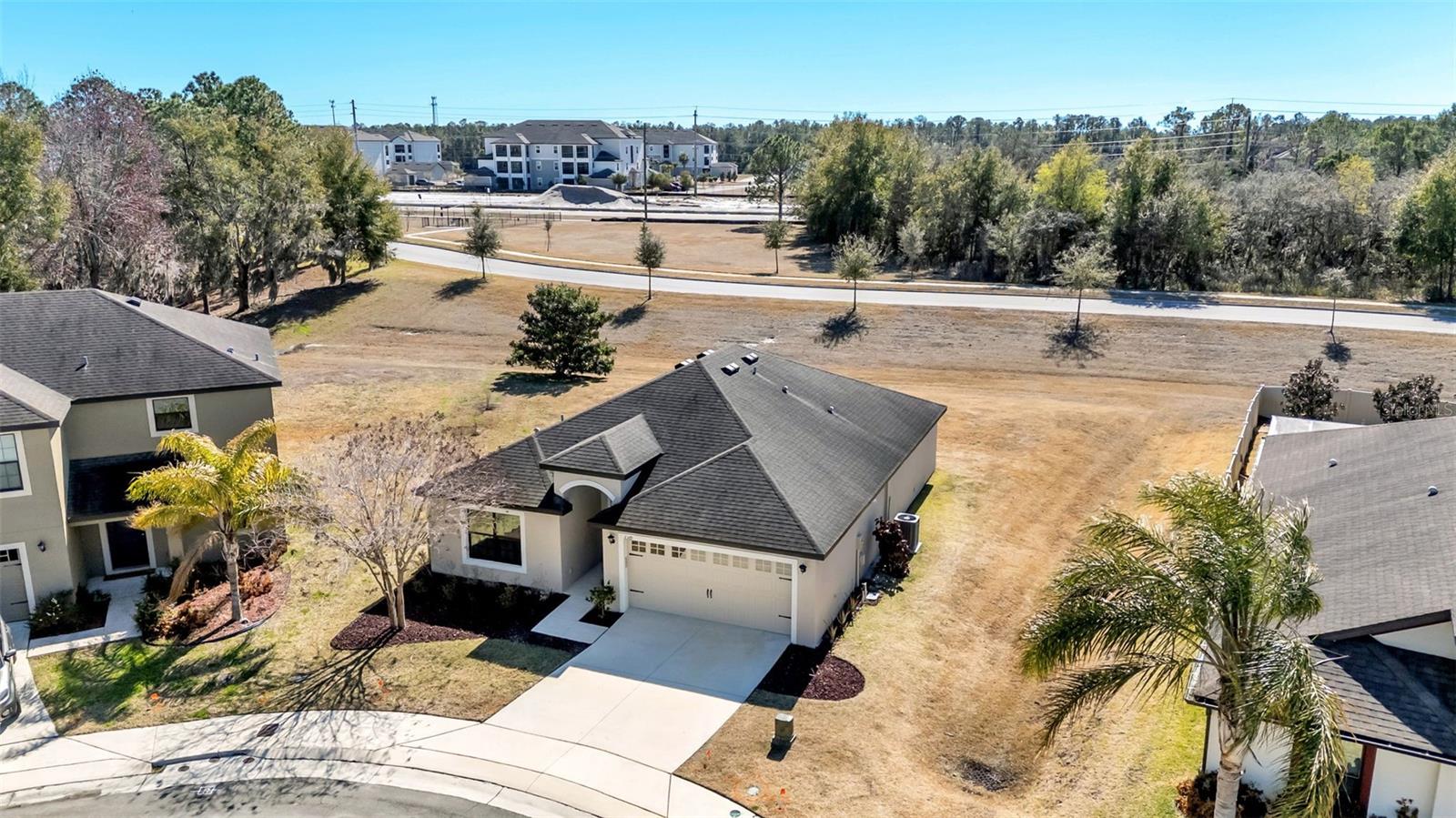 Welcome to this beautiful, turn-key home nestled on a quiet cul-de-sac in desirable Northeast Lakeland. Move-in ready and meticulously maintained, this 2017-built property offers the perfect blend of comfort, privacy, and convenience, just minutes from I-4, shopping, dining, and Florida Poly Tech University — ideally located between Tampa and Orlando. From the moment you arrive, you’ll notice the exceptional curb appeal with mature landscaping, manicured grounds, and striking volcanic rock accents that create a warm and welcoming first impression. With no rear neighbors and a dog park just steps away, this home provides peaceful surroundings while still being close to everything you need. Inside, a spacious foyer leads to two front bedrooms with custom closets and a private guest bathroom, along with a generously sized indoor laundry room. The open-concept layout is perfect for entertaining, featuring a bright and airy living space that seamlessly connects the living room, dining area, and kitchen. Large sliding glass doors fill the home with natural light and open to a covered patio — ideal for relaxing evenings or weekend barbecues. The kitchen is both stylish and functional, offering stainless steel appliances, granite countertops, and a window overlooking the backyard with serene, unobstructed views. Designed with comfort and privacy in mind, the split floor plan places the primary suite at the back of the home, creating a quiet retreat. The spacious owner’s suite features an ensuite bath complete with a soaking tub, separate shower, and plenty of space to unwind. Beautiful luxury vinyl plank flooring runs throughout, delivering the warmth of wood with durability perfect for families and pets. Step outside to enjoy the large backyard with lake access — perfect for fishing, playing, or simply soaking in the Florida lifestyle. Community amenities add even more value, including basketball courts, a newly equipped fitness center, clubhouse, playground, and green spaces. This truly turn-key home has it all. Schedule your private showing today and come experience everything this wonderful home and community have to provide.