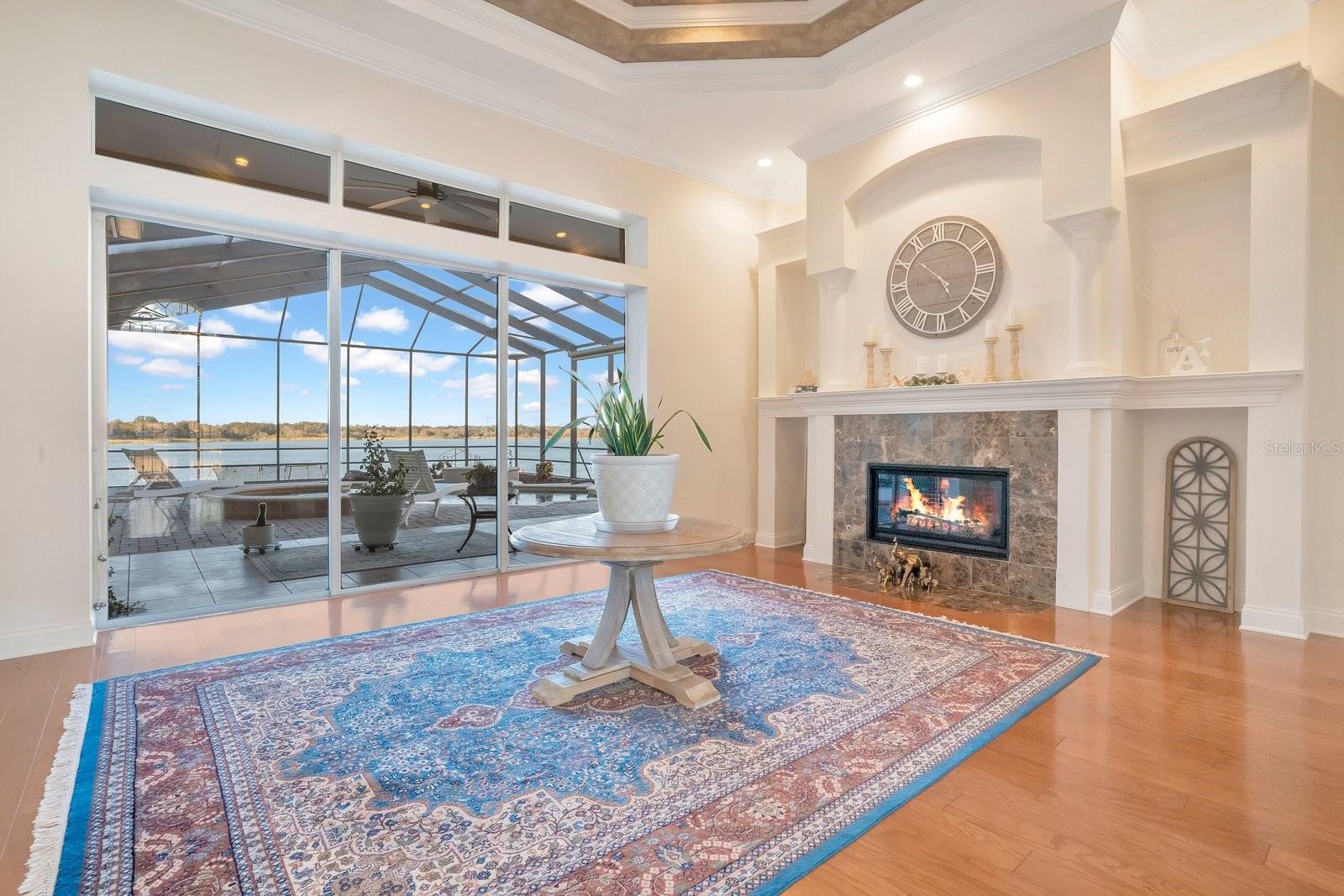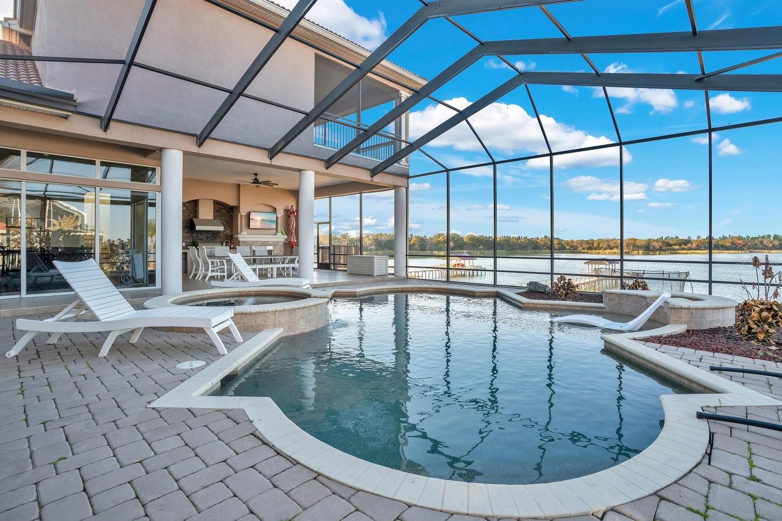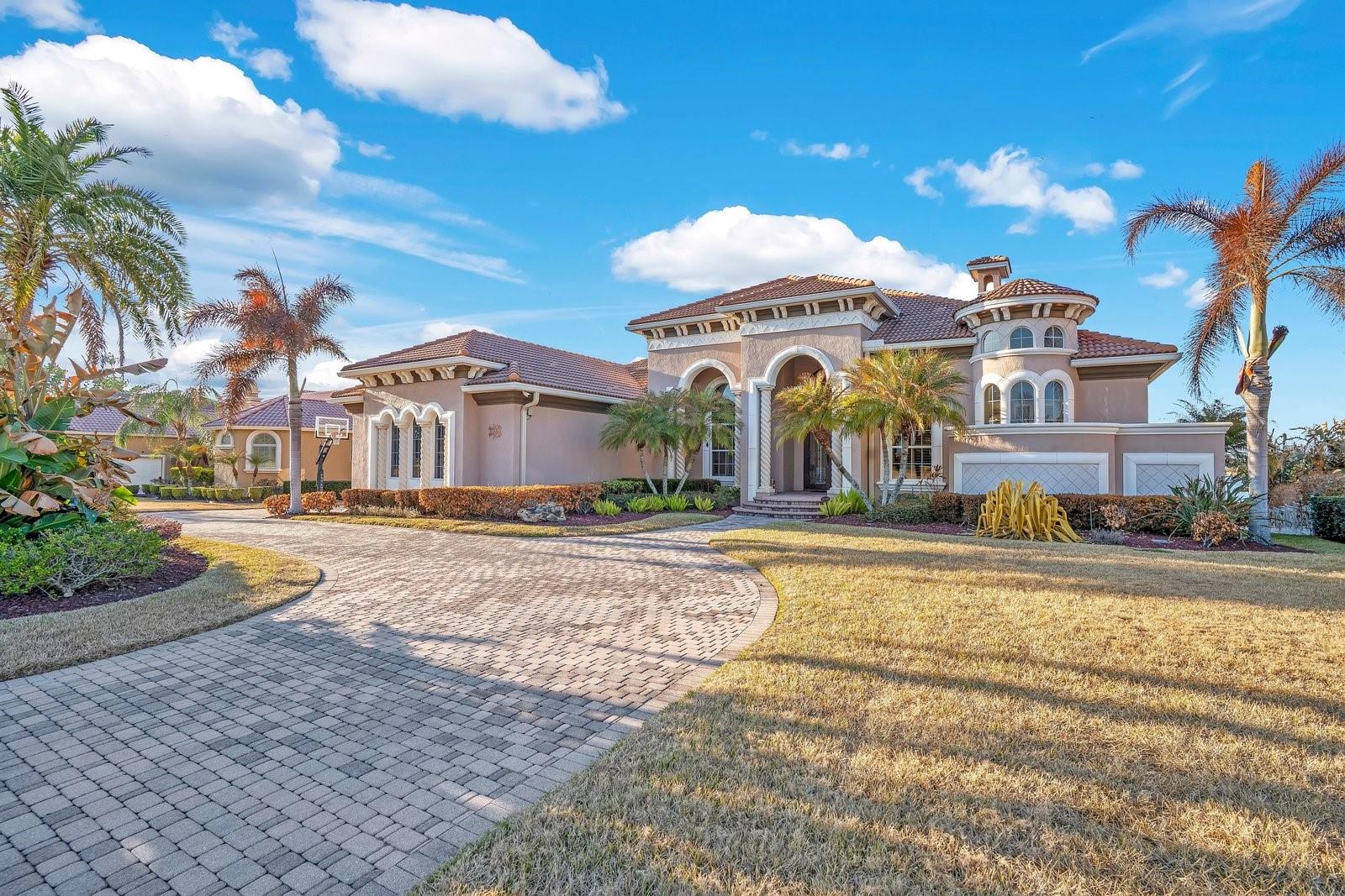 The epitome of Florida lakefront living, this six-bedroom, five-and-a-half-bathroom estate in the gated Highlands by the Lake community offers a rare synthesis of architectural grandeur and meticulous modern stewardship. Situated on nearly an acre with direct frontage on Banana Lake, the residence is introduced by an arrival sequence featuring iron Cantera doors that open to soaring 13-to-16-foot ceilings and a magnificent domed dining room. The interior is defined by a sophistication, where pocketing sliding doors and tinted rear windows dissolve the boundaries between the refined living spaces and the verdent lakeside setting. The home’s infrastructure has been rigorously modernized, featuring a 5-HP Trane HVAC system (2025), a secondary upstairs unit with a dedicated dehumidifier (2026), and two new tankless water heaters (2025). New, high-efficiency Pella windows constitute all but 6 windows throughout the home, complemented by whole-home surge protection, whole home Mulligan water filtration system, and an ADT security array consisting of 14 perimeter cameras. The culinary center is a testament to functional luxury, equipped with a gas cooktop, custom all-wood cabinetry, a new garbage disposal (2024), and a stainless-steel utility suite. While the kitchen’s digital hub and the home’s televisions do not convey, the residence is a technological fortress, wired for 7G connectivity with an integrated Sonos surround-sound system and a theater room featuring SONY cinema equipment. The primary wing has been thoughtfully updated with 2023 luxury vinyl flooring, electric privacy curtains, and a primary bath featuring a bidet and "Closets by Design" cabinetry. Additional interior highlights include a Jack-and-Jill suite completely renovated in 2024, new light fixtures throughout, and three distinct garage bays featuring insulated doors, epoxy flooring, a Tesla charger, and significant integrated storage. Outdoor living is elevated by a saltwater Pentair pool—equipped with a 2024 pump and auto-refill system—housed within a cage featuring 2024 lighting and a 2025 screen replacement. The grounds are illuminated by architectural lighting and protected by a "Bug Slayer" system and a transferable septic maintenance subscription. A Trex elevated party deck leads to the water's edge, where a recently improved dock and electric lift provide seamless access to Banana Lake. Residents of this exclusive enclave enjoy not only profound privacy but also a suite of community amenities, including a clubhouse, pool, pickleball, and tennis courts, all positioned strategically within the I-4 corridor between Tampa and Orlando.