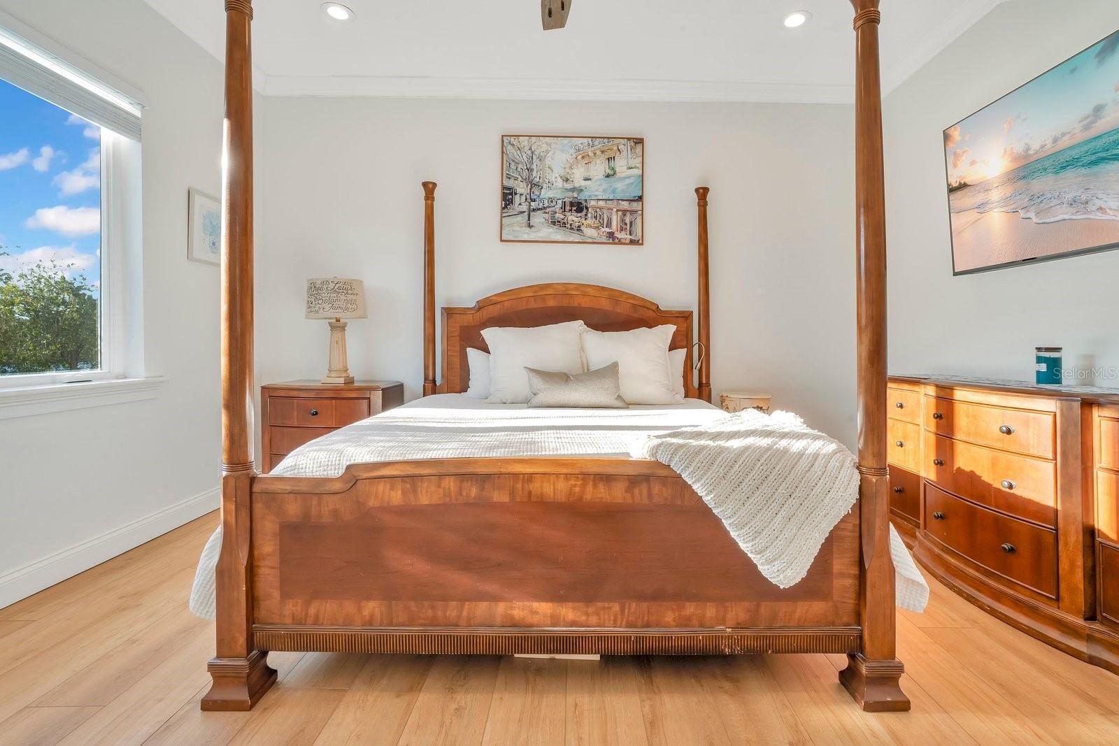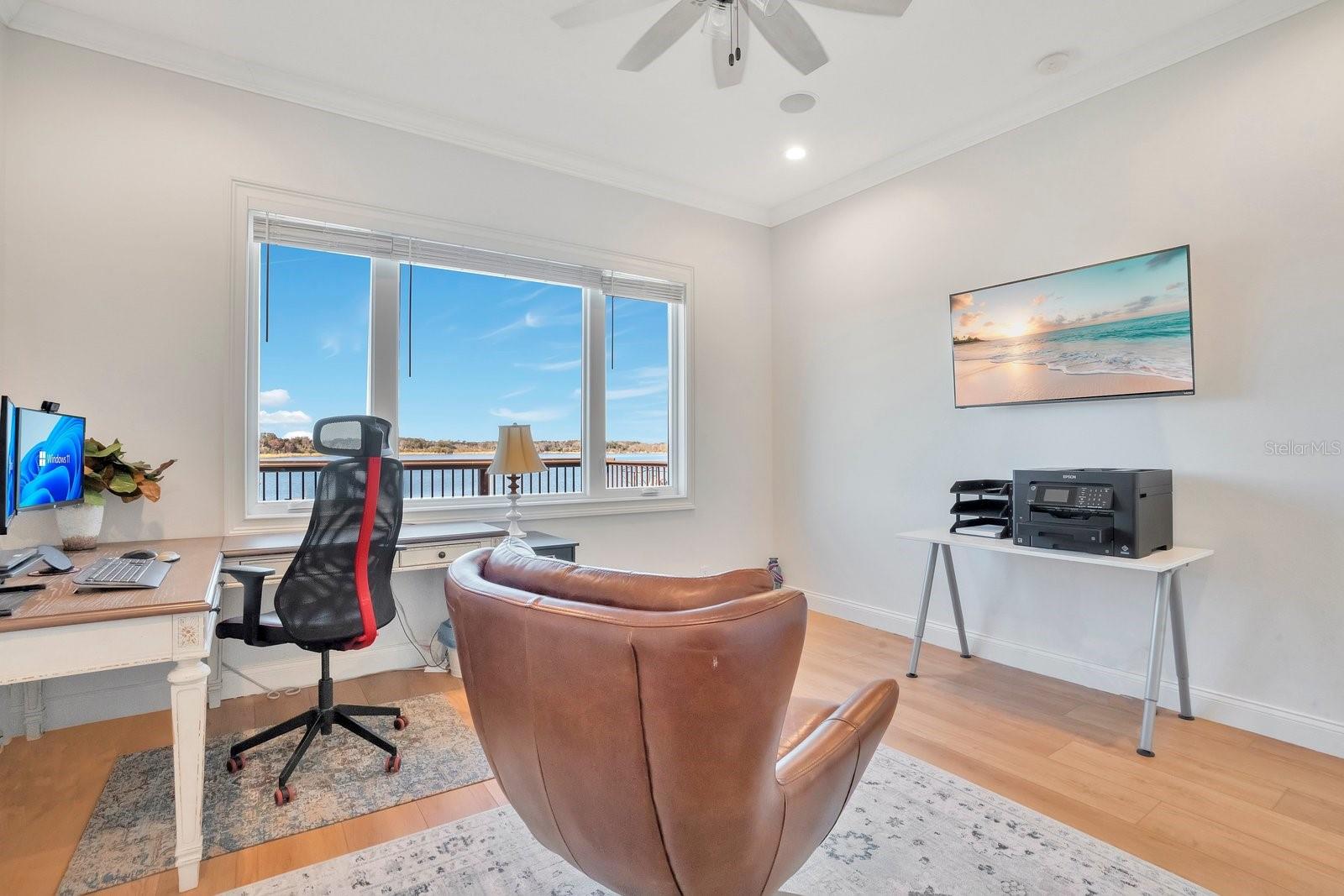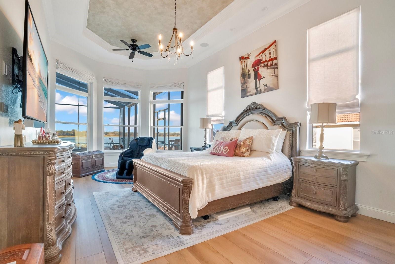 The epitome of Florida lakefront living, this six-bedroom, five-and-a-half-bathroom estate in the gated Highlands by the Lake community offers a rare synthesis of architectural grandeur and meticulous modern stewardship. Situated on nearly an acre with direct frontage on Banana Lake, the residence is introduced by an arrival sequence featuring iron Cantera doors that open to soaring 13-to-16-foot ceilings and a magnificent domed dining room. The interior is defined by a sophistication, where pocketing sliding doors and tinted rear windows dissolve the boundaries between the refined living spaces and the verdent lakeside setting. The home’s infrastructure has been rigorously modernized, featuring a 5-HP Trane HVAC system (2025), a secondary upstairs unit with a dedicated dehumidifier (2026), and two new tankless water heaters (2025). New, high-efficiency Pella windows constitute all but 6 windows throughout the home, complemented by whole-home surge protection, whole home Mulligan water filtration system, and an ADT security array consisting of 14 perimeter cameras. The culinary center is a testament to functional luxury, equipped with a gas cooktop, custom all-wood cabinetry, a new garbage disposal (2024), and a stainless-steel utility suite. While the kitchen’s digital hub and the home’s televisions do not convey, the residence is a technological fortress, wired for 7G connectivity with an integrated Sonos surround-sound system and a theater room featuring SONY cinema equipment. The primary wing has been thoughtfully updated with 2023 luxury vinyl flooring, electric privacy curtains, and a primary bath featuring a bidet and "Closets by Design" cabinetry. Additional interior highlights include a Jack-and-Jill suite completely renovated in 2024, new light fixtures throughout, and three distinct garage bays featuring insulated doors, epoxy flooring, a Tesla charger, and significant integrated storage. Outdoor living is elevated by a saltwater Pentair pool—equipped with a 2024 pump and auto-refill system—housed within a cage featuring 2024 lighting and a 2025 screen replacement. The grounds are illuminated by architectural lighting and protected by a "Bug Slayer" system and a transferable septic maintenance subscription. A Trex elevated party deck leads to the water's edge, where a recently improved dock and electric lift provide seamless access to Banana Lake. Residents of this exclusive enclave enjoy not only profound privacy but also a suite of community amenities, including a clubhouse, pool, pickleball, and tennis courts, all positioned strategically within the I-4 corridor between Tampa and Orlando.
