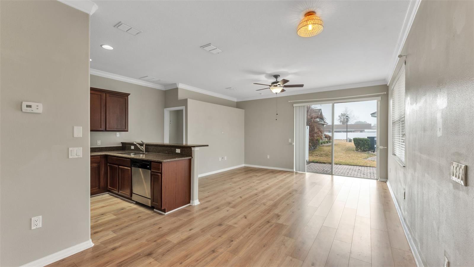 Welcome to this beautifully maintained 2 bedroom, 2 bathroom townhome located in the gated community of Chelsea Oaks. This move-in ready home offers an inviting open floor plan and luxury vinyl plank flooring throughout, with the exception of the guest bedroom. The kitchen features granite countertops, stainless steel appliances, and ample cabinetry, making it both functional and stylish. The primary bedroom provides a comfortable retreat with an ensuite bathroom complete with dual sinks, a garden tub, a tiled walk-in shower, and a spacious walk-in closet. The second bedroom is thoughtfully positioned on the opposite side of the home near the laundry room and second full bathroom, offering privacy and convenience for guests or family members. Residents of Chelsea Oaks enjoy access to a community pool and fitness center, adding to the appeal of this low-maintenance lifestyle. Ideally located near major retailers, restaurants, and offering easy access to I-4, this home provides both comfort and convenience. Call today to schedule your private tour