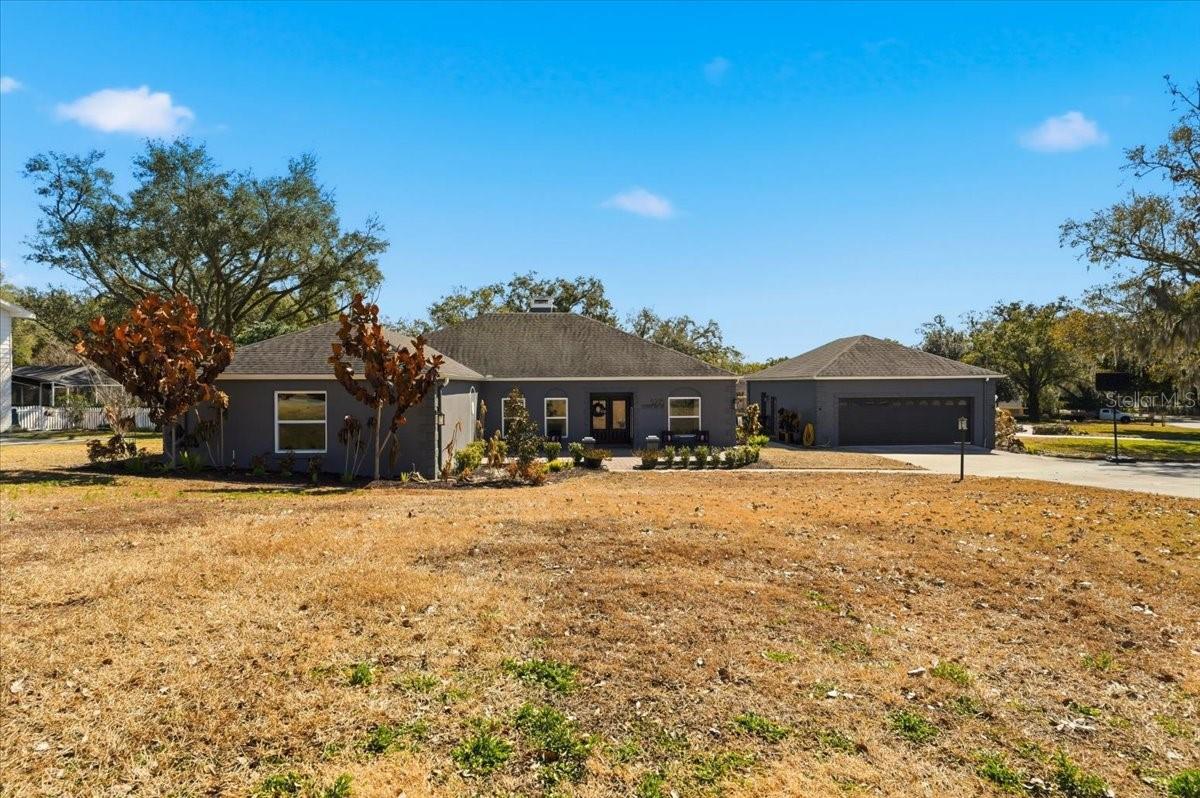 Here's your chance to live in the beautiful, gated community of GLENMORE where you will have full access to SCOTT LAKE and a community BOAT RAMP/tennis courts and common grounds. This charming, fully remodeled 3-bedroom, 4 bath home offers 2,988 sq ft of thoughtfully designed living space, blending modern upgrades with everyday functionality. And wait until you see the kitchen! Custom granite, large island and plenty of custom cabinetry. The open and bright living room features a wood burning fireplace with plenty of room for family or entertaining guests. New luxury vinyl flooring, new windows, new doors, practically new everything. The home features a three-zone AC system, ensuring comfort and efficiency throughout. Every inch has been updated, delivering a fresh, move-in-ready feel with cohesive finishes and timeless appeal. You may even enjoy doing laundry in the ample sized laundry room that also features a half bath. The second bedroom (which could also be a 2nd primary bedroom), features a full bath also. Situated on a large corner lot, the property makes a grand first impression with a circular driveway and a detached two-car garage that goes well beyond storage. Inside the detached garage, you'll find a dedicated 12x10 workshop, which is vented for air, and a big office that measures 14x12, that is also vented for A/C, ideal for remote work, a man-cave, 4th bedroom or a hobby room. The space to spread out and the possibilities are endless. The roof is approximately 7 years old, there are two hot water heaters and a newer septic tank and drain field. This beautiful corner lot is over 1/2 acre with numerous fruit and flowering trees and a large circular driveway. Out back, enjoy Florida living at its best with a new, inground pool and ample space for entertaining or relaxing in private. You'll enjoy the gated security, access to Scott Lake with a community boat ramp, tennis courts, gazebo and beautifully maintained common grounds, creating a lifestyle that feels both peaceful and connected. This is a rare opportunity to own a fully updated home with lake access and all in one of the area's most desirable gated communities. Conveniently located near shopping, dining, medical and easy access to the Polk Parkway and I-4. Call for your private showing today!