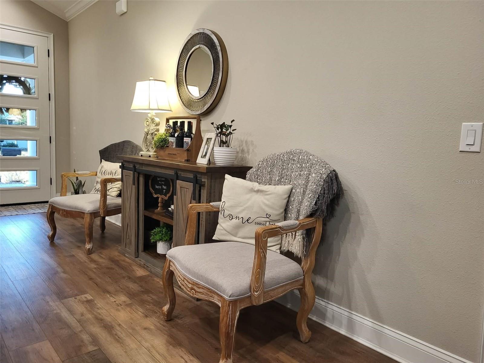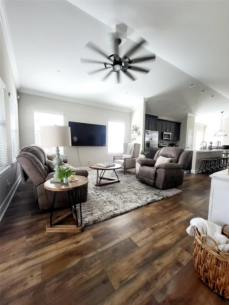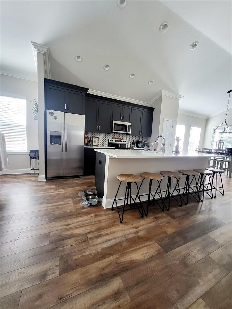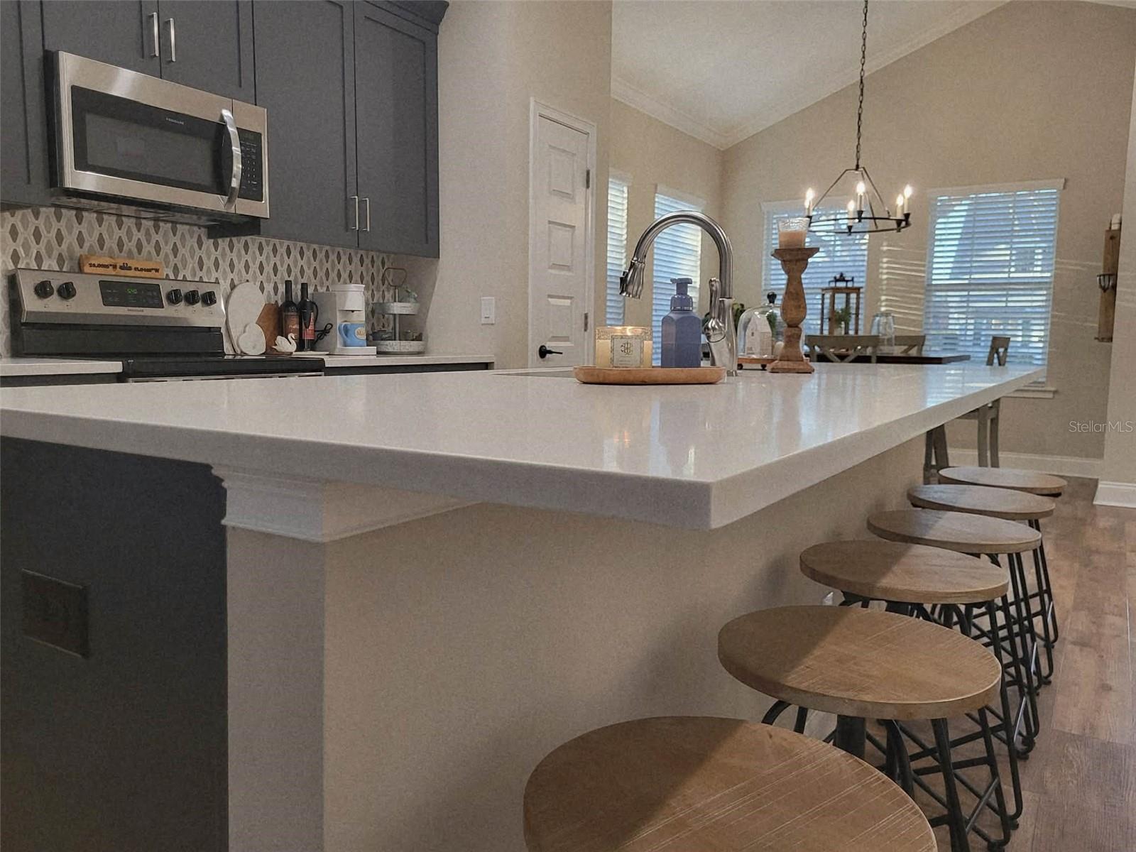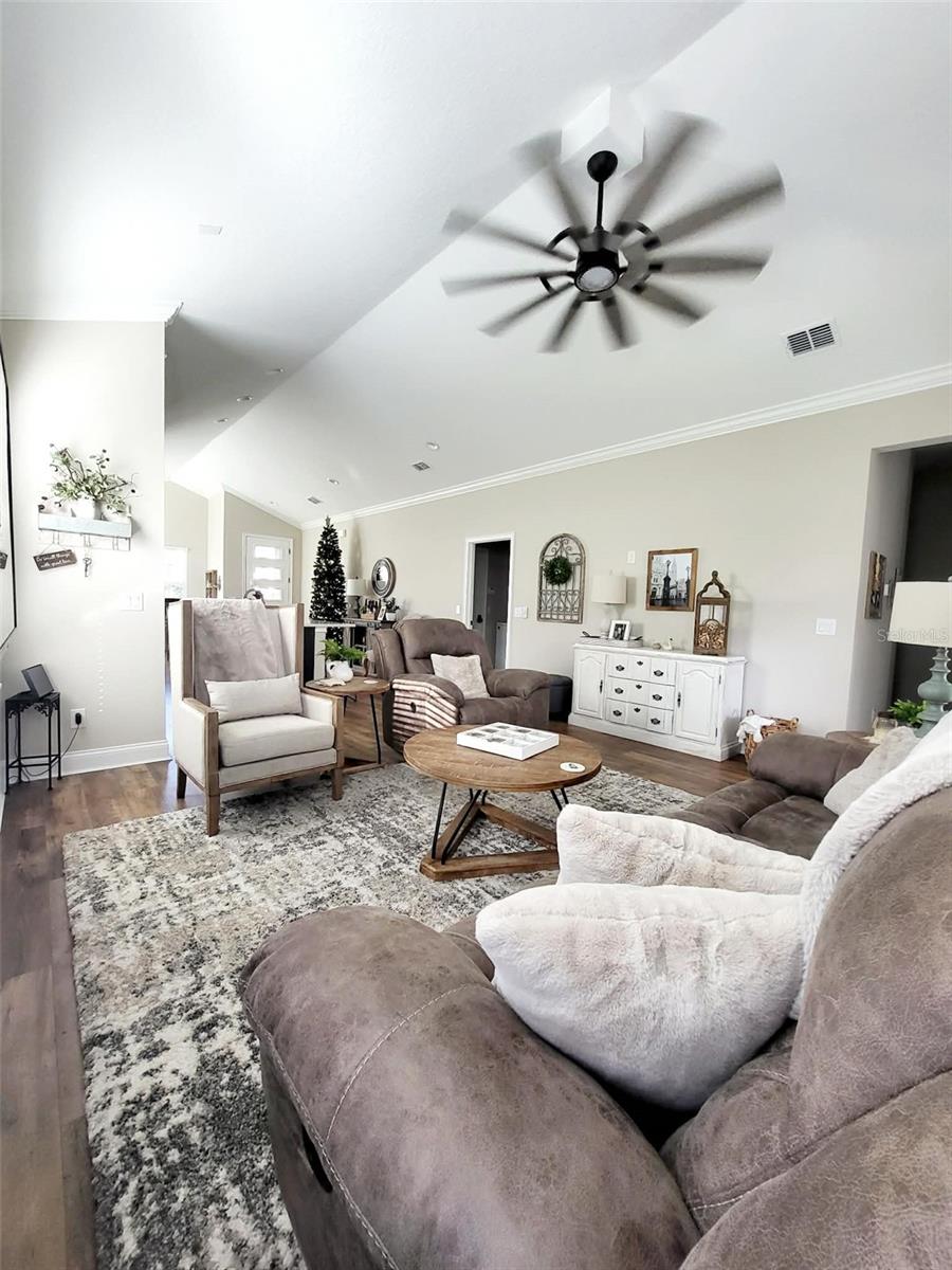 Hilltop Oasis in the Heart of Lakeland. Welcome to this beautiful hilltop retreat where luxury design meets everyday comfort. From the moment you step inside, you’ll be impressed by the open-concept layout, high ceilings, and custom features throughout. This 3-bedroom, 2-bath home features luxury vinyl plank flooring throughout and a spacious bright living area with crown molding and high ceilings ideal for both relaxing and entertaining. The gourmet kitchen is the heart of the home, showcasing an impressively large island with custom quartz countertops, soft close cabinets, stainless steel appliances, a stylish tile backsplash, and a pantry for ample storage. The private primary suite with extra high ceilings, is tucked away at the rear of the home and offers a custom ensuite bath with dual sinks, quartz vanity, a spacious walk-in shower, and a generous walk-in closet. Step outside to a paver rear lanai overlooking a fenced backyard—perfect for relaxing and unwinding at the end of the day. Or enjoy peaceful mornings and evenings from the inviting front porch. Additional highlights include: no HOA, 2-car garage with epoxy-finished flooring, interior laundry room with custom built-ins for added storage and functionality. Built in 2023 by Hulbert Homes and meticulously maintained. Move-in ready with nothing to do but enjoy worry-free living. This exceptional home combines modern style, quality craftsmanship, and convenience in one of Lakeland’s most desirable locations. Schedule your private showing today!