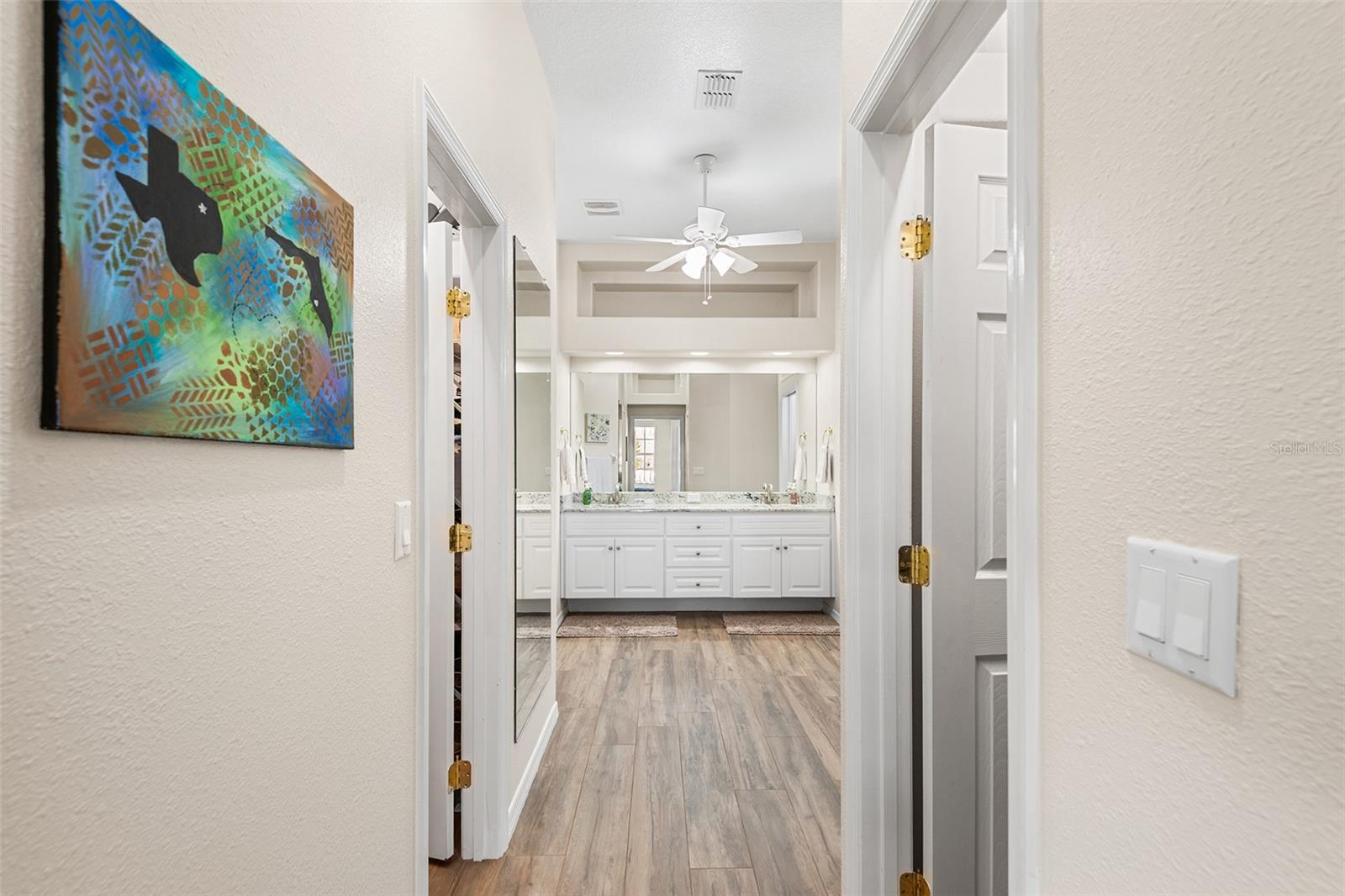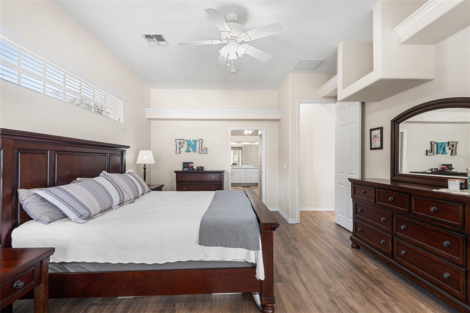 Welcome to 5440 Bloomfield Blvd in Lakeland, a well-maintained Ernie White–built home known for quality construction and thoughtful design. This single-story residence offers a desirable split floor plan with spacious living areas, abundant natural light, and durable wood-look tile flooring throughout. The kitchen features granite countertops, stainless steel appliances, ample cabinetry, and a breakfast nook that connects seamlessly to the main living and dining areas. The open layout provides flexible space for everyday living and entertaining while maintaining defined living areas. The primary suite offers generous space with dual walk-in closets and an en-suite bathroom featuring double vanities, a makeup vanity area, and additional storage. Secondary bedrooms are located on the opposite side of the home and include walk-in closets for added functionality. Additional interior features include crown molding, large windows, and a dedicated laundry room. The three-car garage provides substantial storage space and parking capacity. Recent major updates include a new roof installed in October 2024 and a new HVAC system installed in April 2025, offering added value and peace of mind. The property also includes a screened lanai providing outdoor living space with room for seating or dining. Located in Lakeland with convenient access to shopping, dining, major roadways, and area amenities, this home combines quality construction, functional layout, and important recent upgrades.