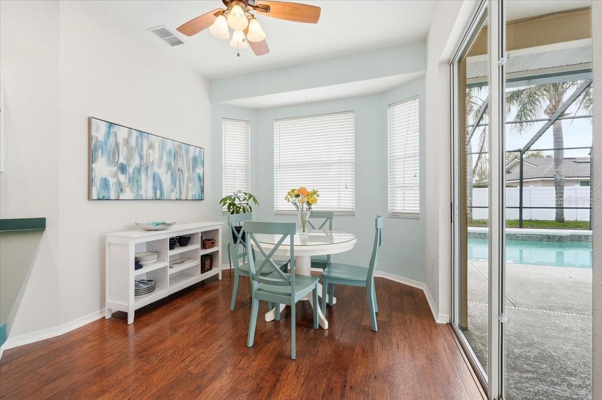 Welcome to this beautifully maintained 3-bedroom, 2-bath pool home filled with natural light and exceptional care throughout. From the moment you arrive, the spacious front porch creates a warm and inviting first impression. Step inside to the foyer where you are immediately greeted with stunning views of the sparkling screened saltwater pool, setting the tone for the relaxed Florida lifestyle this home offers. The large family room features a charming wood-burning fireplace and opens seamlessly to the pool area, creating the perfect space for both everyday living and entertaining. The spacious kitchen is thoughtfully designed with new upgraded appliances and a delightful breakfast nook overlooking the pool, making mornings feel peaceful and bright. The primary suite is the star of the home. It is generously sized and designed as a private retreat. It includes a walk-in closet, a spa-inspired bathroom with a separate soaking tub and walk-in shower, and direct access to the pool area. An attached flex room adds incredible versatility and would be ideal for a home office, nursery, exercise room, or cozy reading nook. Two additional well-appointed bedrooms share a nicely designed guest hall bathroom, while a separate bonus room or office at the front of the home features a large picture window overlooking the beautifully landscaped front yard. Step outside to your fully fenced backyard oasis, where a screened saltwater pool and lush landscaping create a peaceful setting for relaxing or hosting friends and family. Major updates provide peace of mind, including New HVAC (2024), New Fence (2022), and Roof Replacement (2018). This immaculately clean and lovingly maintained home offers comfort, flexibility, and the perfect blend of indoor and outdoor Florida living. Come experience the charm and tranquility for yourself. Welcome Home!