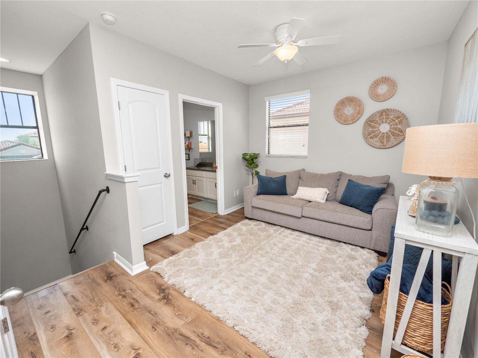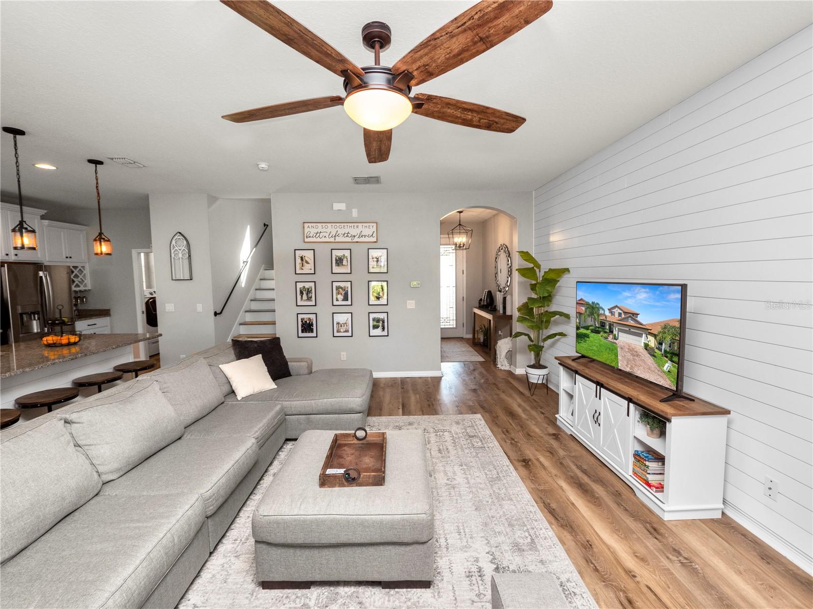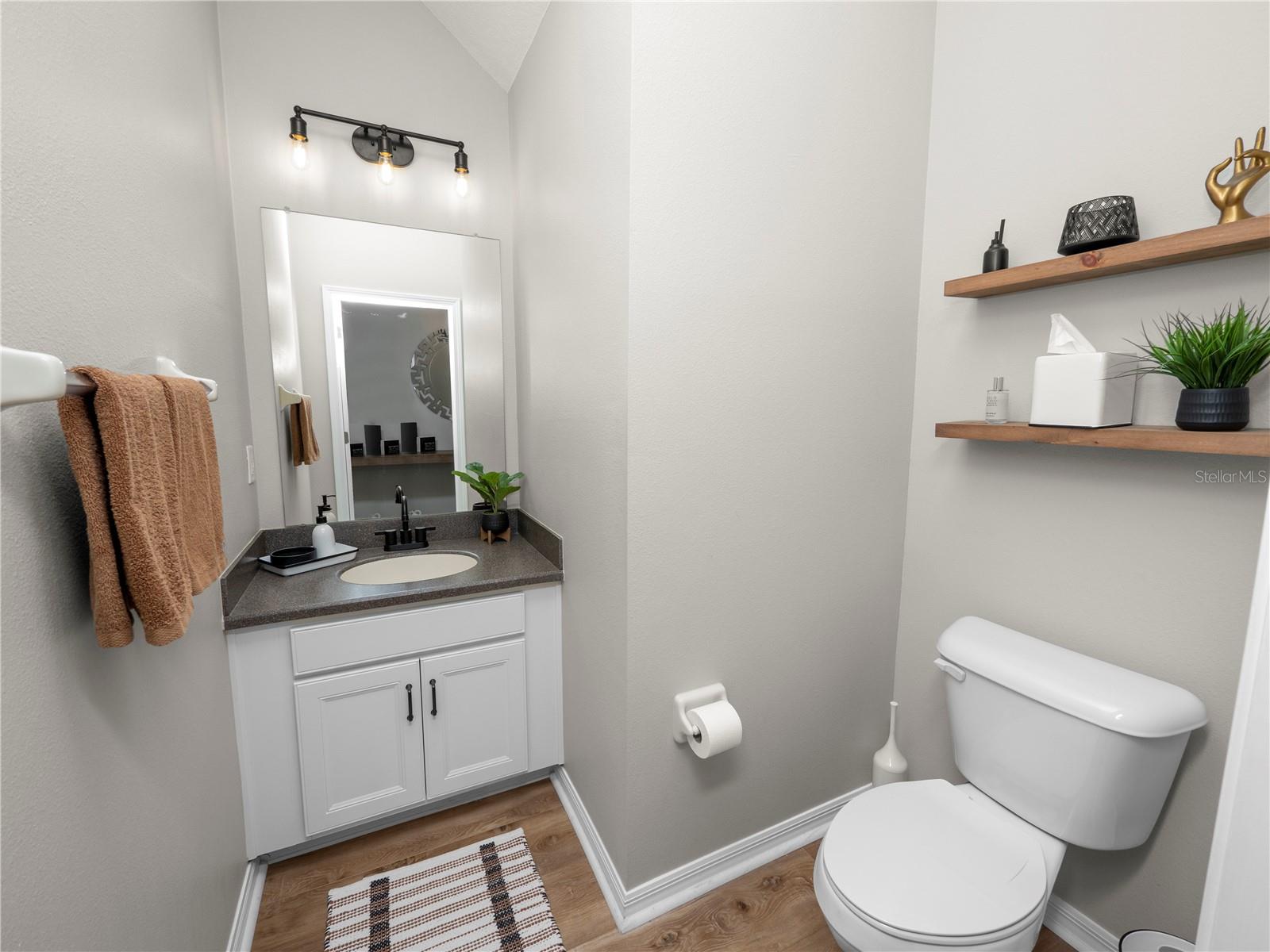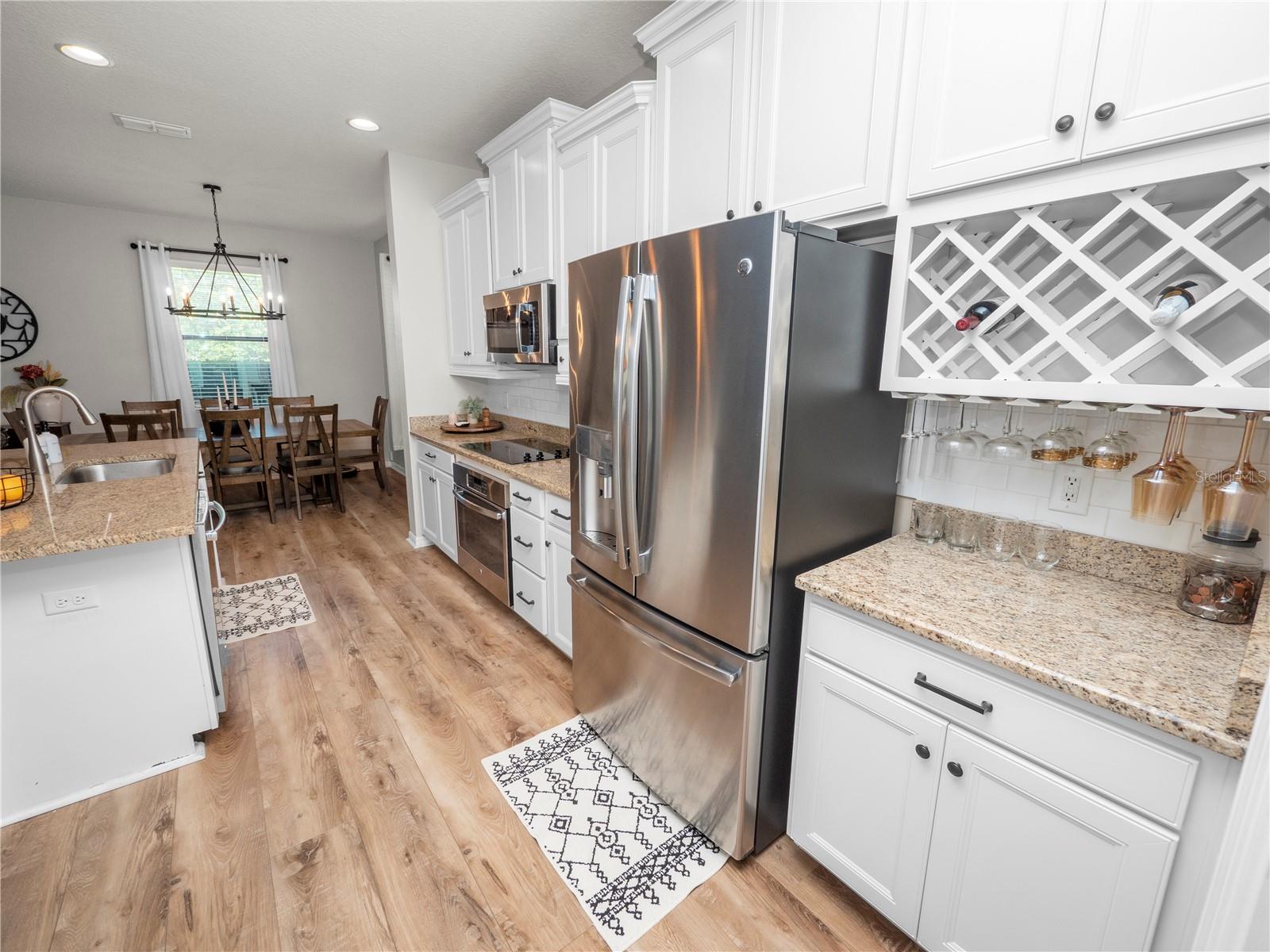 Welcome to this 4 bedroom 2.5 bathroom home located in a gated community with easy access to dining, shopping and major roadways. Arriving at the home, you’ll appreciate the neatly manicured lawn and cozy front porch, the perfect spot for your morning coffee. Entering the home you’ll find wood flooring throughout and an open floor plan. The bright and open living room blends seamlessly into the kitchen that features a large island, granite countertops, stainless steel appliances, tile backsplash, a closet pantry, and custom lighting. There is a dining area adjacent to the kitchen for additional seating. The primary bedroom is located on the first floor and offers plenty of space with an en-suite bathroom featuring a large soaking tub, a dual sink vanity, stand up shower, private water closet, and a spacious walk in closet. The first floor also features the indoor laundry room and a half bathroom for guests. Upstairs, you’ll find a seating area at the top of the stairs, along with the remaining 3 bedrooms. The bedrooms are spacious and share the main hall bathroom with a large vanity and a tub/shower combo with tile surround. Stepping out of your sliding glass doors in the living room you’ll find a screened in porch with a stone feature wall and paver flooring. This home also features a fenced yard. This home checks all the boxes! Schedule your private showing today!
