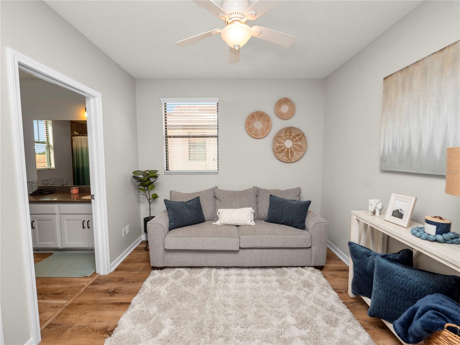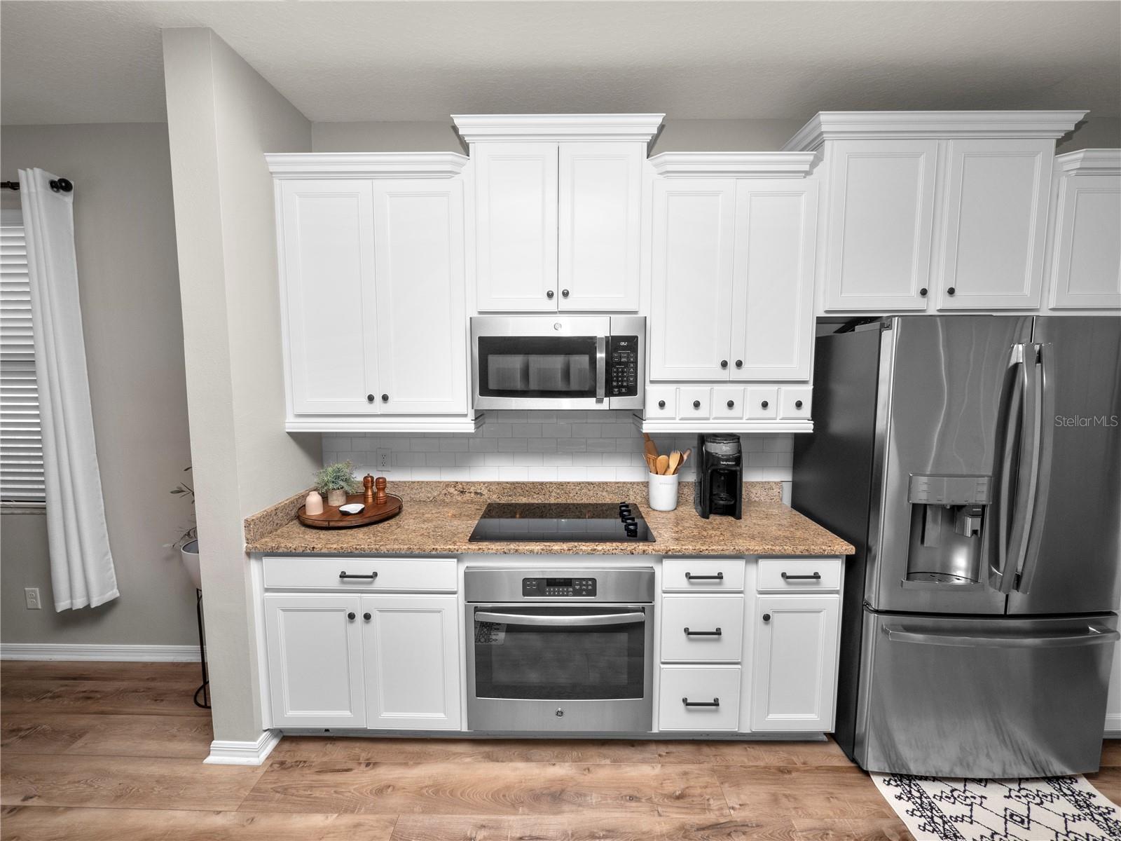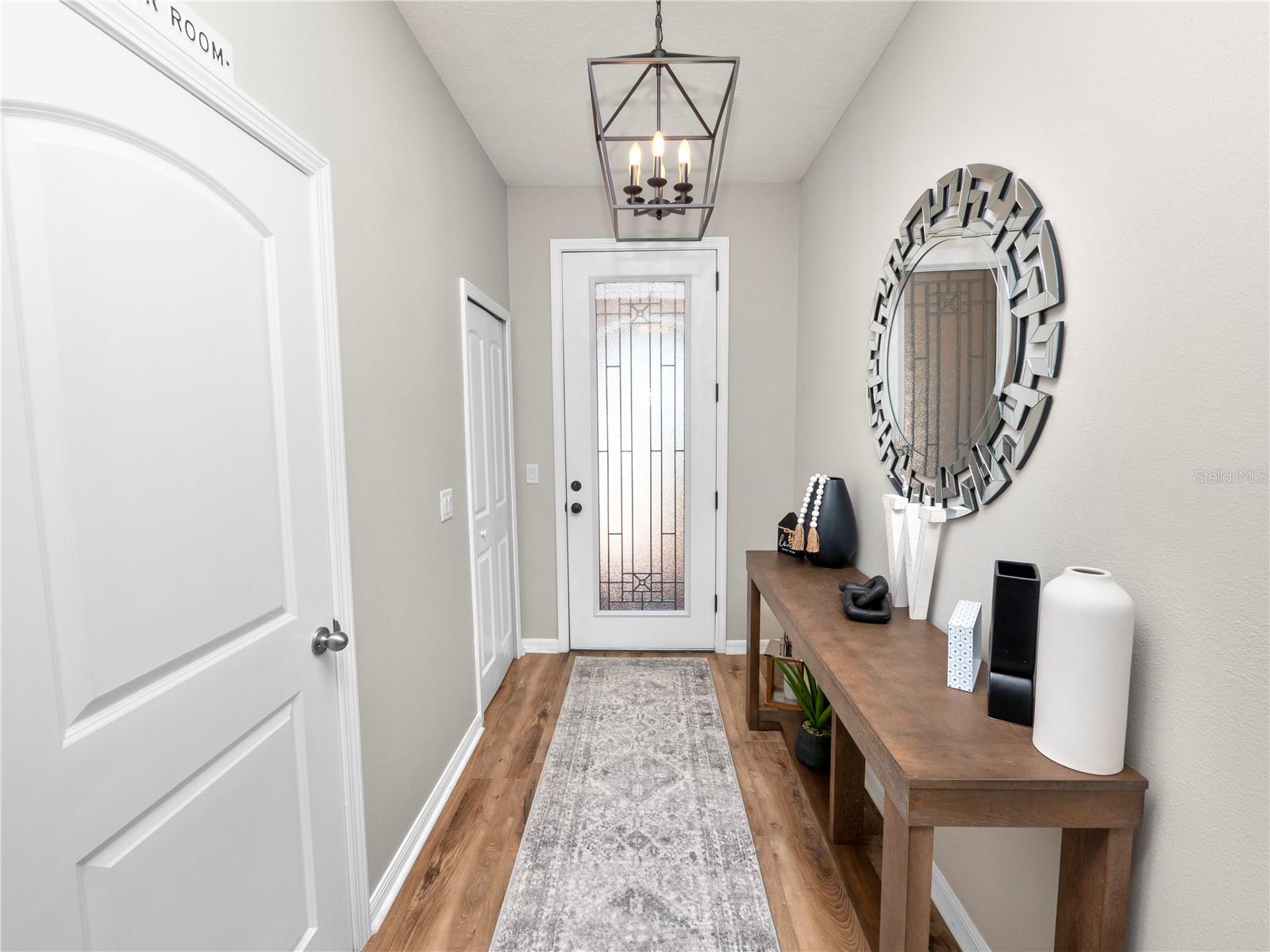 Welcome to this 4 bedroom 2.5 bathroom home located in a gated community with easy access to dining, shopping and major roadways. Arriving at the home, you’ll appreciate the neatly manicured lawn and cozy front porch, the perfect spot for your morning coffee. Entering the home you’ll find wood flooring throughout and an open floor plan. The bright and open living room blends seamlessly into the kitchen that features a large island, granite countertops, stainless steel appliances, tile backsplash, a closet pantry, and custom lighting. There is a dining area adjacent to the kitchen for additional seating. The primary bedroom is located on the first floor and offers plenty of space with an en-suite bathroom featuring a large soaking tub, a dual sink vanity, stand up shower, private water closet, and a spacious walk in closet. The first floor also features the indoor laundry room and a half bathroom for guests. Upstairs, you’ll find a seating area at the top of the stairs, along with the remaining 3 bedrooms. The bedrooms are spacious and share the main hall bathroom with a large vanity and a tub/shower combo with tile surround. Stepping out of your sliding glass doors in the living room you’ll find a screened in porch with a stone feature wall and paver flooring. This home also features a fenced yard. This home checks all the boxes! Schedule your private showing today!