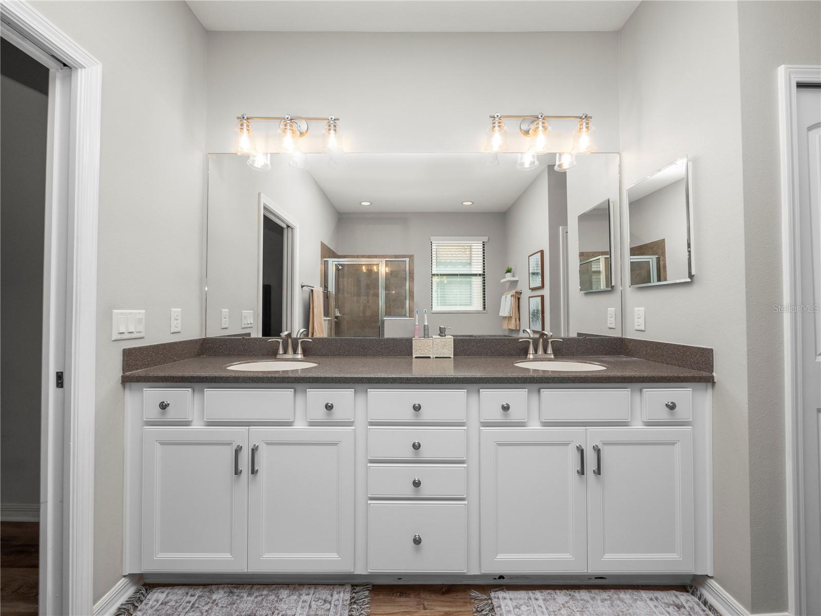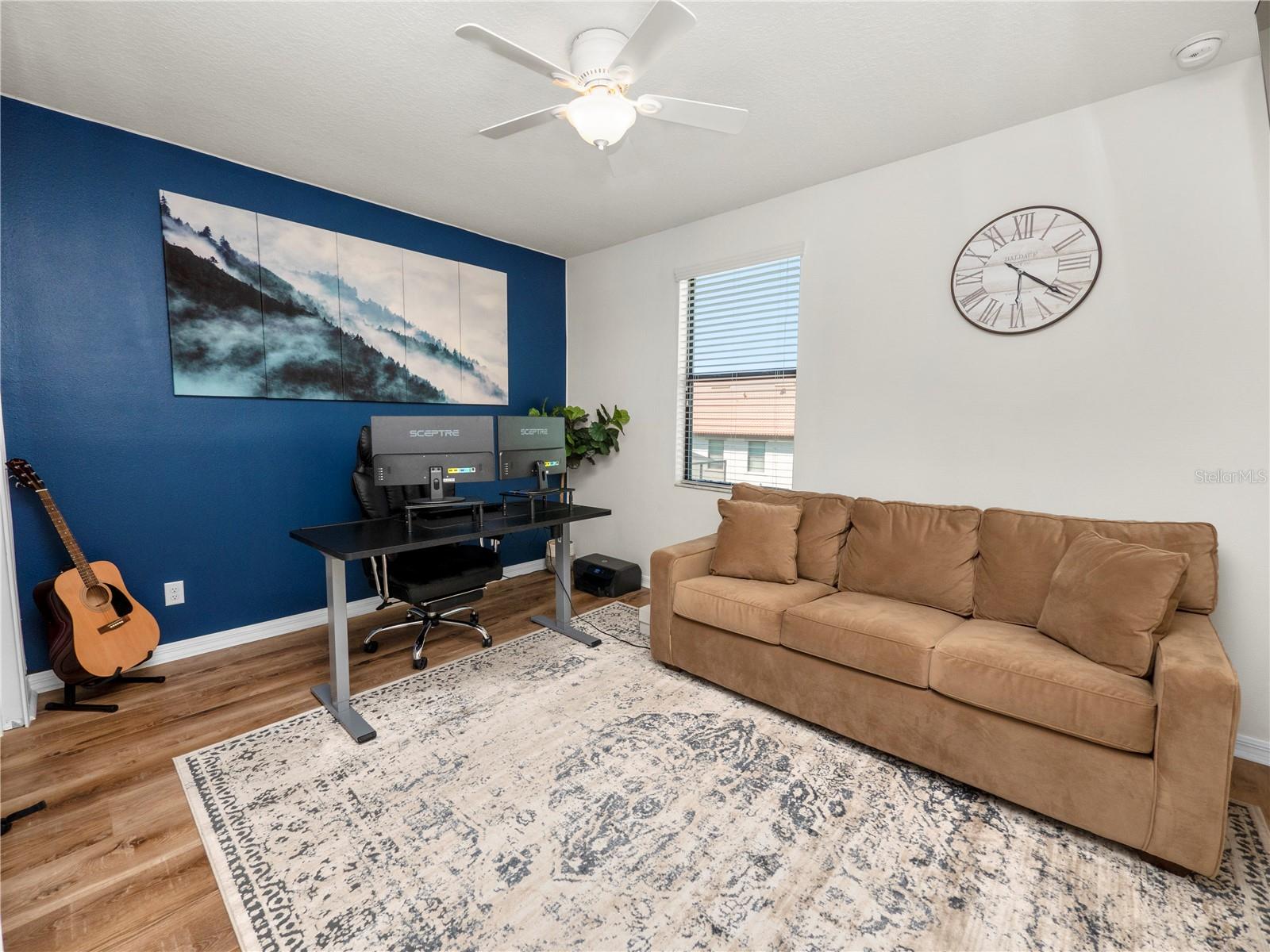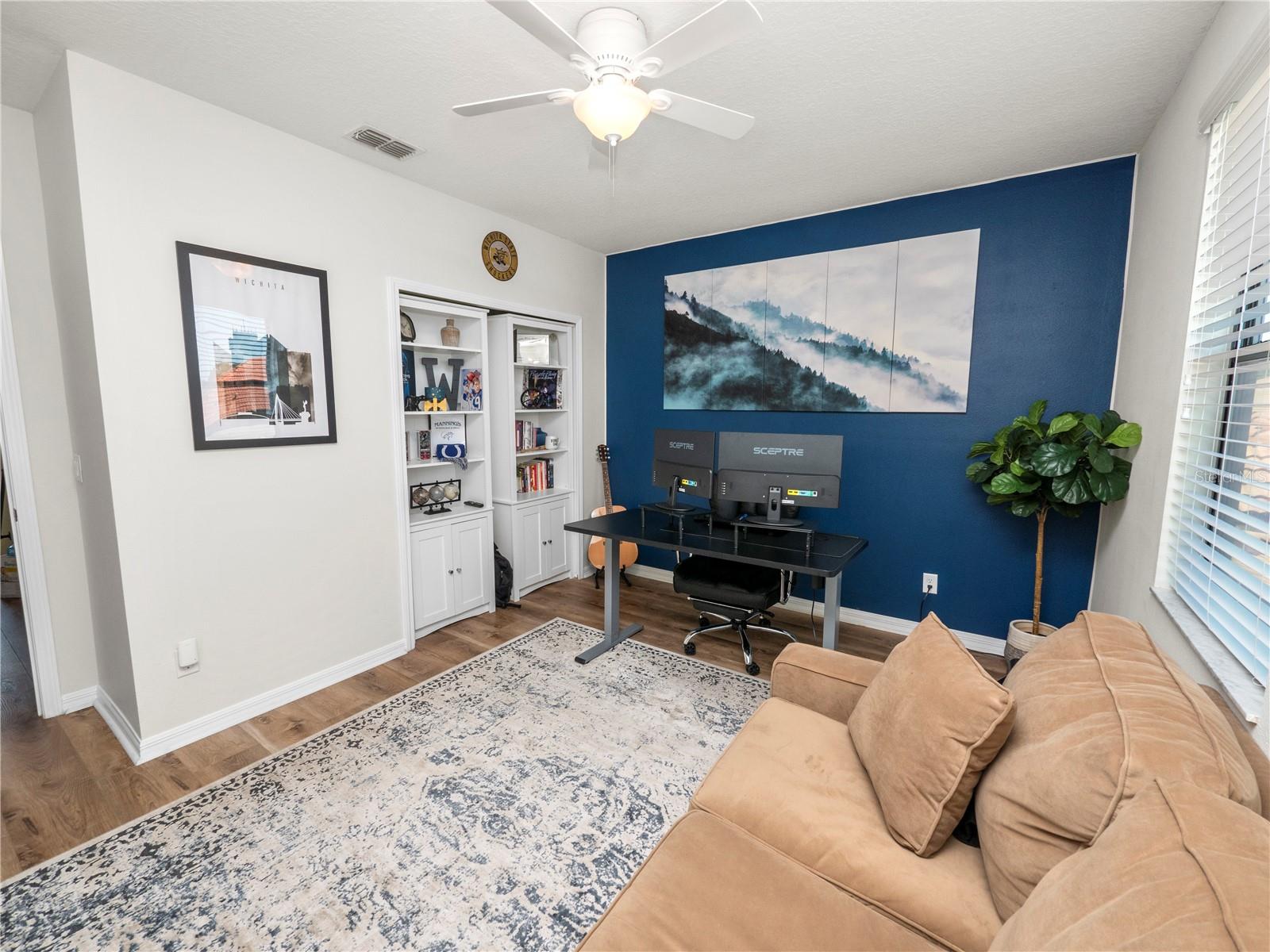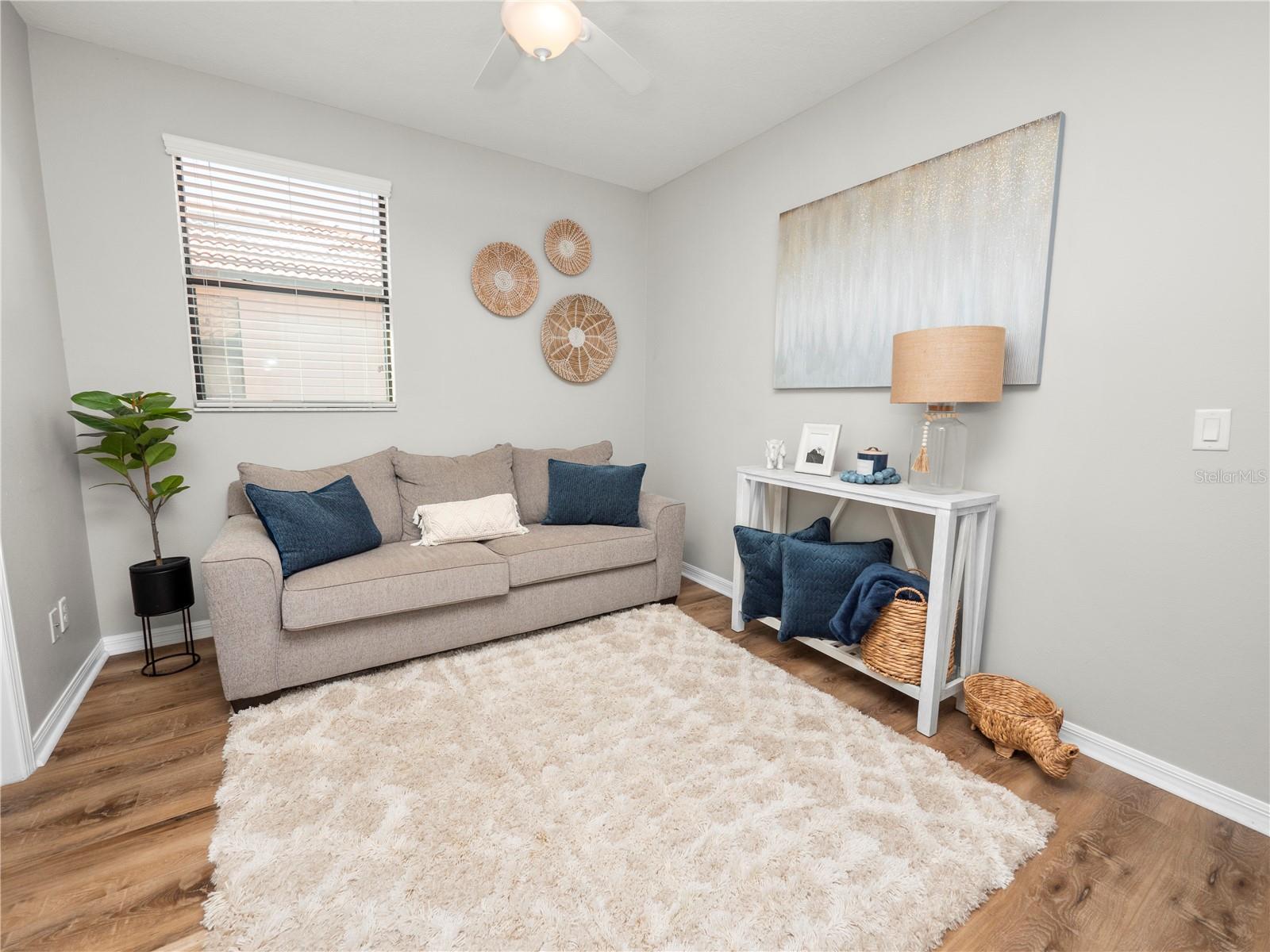 Welcome to this 4 bedroom 2.5 bathroom home located in a gated community with easy access to dining, shopping and major roadways. Arriving at the home, you’ll appreciate the neatly manicured lawn and cozy front porch, the perfect spot for your morning coffee. Entering the home you’ll find wood flooring throughout and an open floor plan. The bright and open living room blends seamlessly into the kitchen that features a large island, granite countertops, stainless steel appliances, tile backsplash, a closet pantry, and custom lighting. There is a dining area adjacent to the kitchen for additional seating. The primary bedroom is located on the first floor and offers plenty of space with an en-suite bathroom featuring a large soaking tub, a dual sink vanity, stand up shower, private water closet, and a spacious walk in closet. The first floor also features the indoor laundry room and a half bathroom for guests. Upstairs, you’ll find a seating area at the top of the stairs, along with the remaining 3 bedrooms. The bedrooms are spacious and share the main hall bathroom with a large vanity and a tub/shower combo with tile surround. Stepping out of your sliding glass doors in the living room you’ll find a screened in porch with a stone feature wall and paver flooring. This home also features a fenced yard. This home checks all the boxes! Schedule your private showing today!