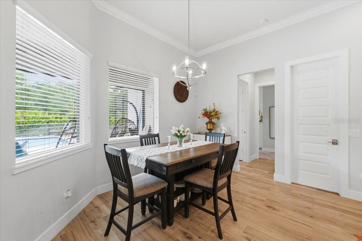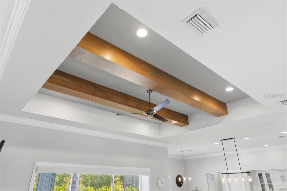 Welcome to this stunning 4-bedroom, 3-bath, 3 car garage custom-built home offering over 3,000 sf of beautifully designed living space, perfectly situated on an oversized, landscaped homesite. Tapia Construction. From the moment you arrive, you’ll be captivated by the home’s striking curb appeal, featuring a paver driveway, lush landscaping, and elegant architectural details. Inside, the thoughtfully designed floor plan showcases a spacious living room highlighted by gorgeous wood beam accents, and soaring ceilings creating warmth and character, along with triple sliding glass doors that open seamlessly to the lanai—perfect for true indoor-outdoor living. The dining room is spacious along with the eating space in the kitchen for quick meals or morning coffee. The indoor laundry is quite large with added storage space and a sink for convenience. The chef-inspired kitchen is the heart of the home complete with a built in oven and microwave and tons of cabinet space plus a large walk in pantry, the layout flows effortlessly into the outdoor space, where you’ll find a private backyard oasis complete with a sparkling pool, retractable shades for added comfort, and an expansive patio ideal for entertaining or relaxing. The primary suite is a true retreat, featuring a luxurious spa-like bathroom designed for relaxation, while the guest bathroom offers the added convenience of a double vanity and a tiled shower. Additional highlights include Enphase solar panels on the roof, helping to reduce energy costs and enhance efficiency. Pro-Aqua whole house filtration system, added storage in the garage and security system. Located in a desirable gated community with generous lot sizes and scenic surroundings, this home offers a rare opportunity to enjoy peaceful living while remaining conveniently close to everything.