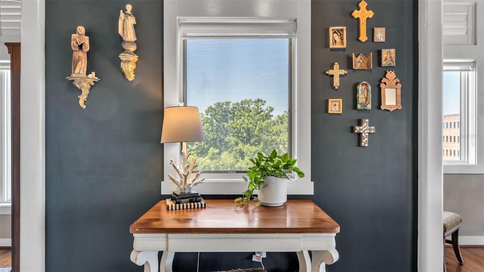 Searching for a truly rare opportunity in the heart of Lakeland? This is the only downtown penthouse of its kind. Originally designed by combining two top-floor units, including a coveted corner unit, during construction, this one-of-one residence offers approximately 2,000 square feet of sophisticated urban living with breathtaking panoramic views. Perched above Historic Downtown Lakeland, you’ll enjoy walkable access to dining, shopping, and entertainment, all while living in a space that feels completely elevated and private. From the moment you step inside, the custom details set this penthouse apart—featuring soaring 12-foot exposed ceilings, polished concrete floors, rich cypress millwork, and thoughtfully curated finishes throughout. Unit 501 serves as the main living space, showcasing a gourmet kitchen, expansive living and dining areas, and a second bedroom—all positioned to capture stunning top-floor, corner-unit views overlooking Munn Park and downtown. Unit 503 is dedicated to the luxurious primary suite, complete with a spa-like en-suite bathroom, walk-in closet, and serene north-facing views of the city skyline. This is more than a residence—it’s a statement. Opportunities like this simply do not come along often. Schedule your private showing today.
